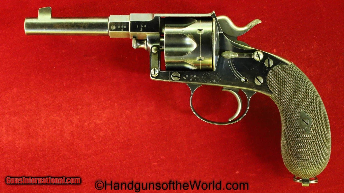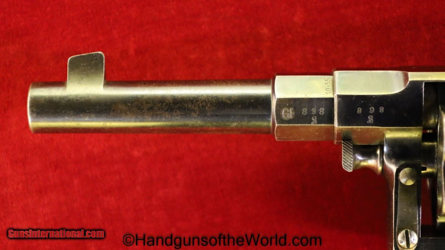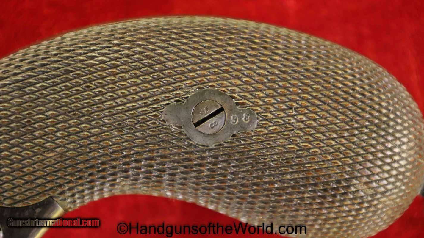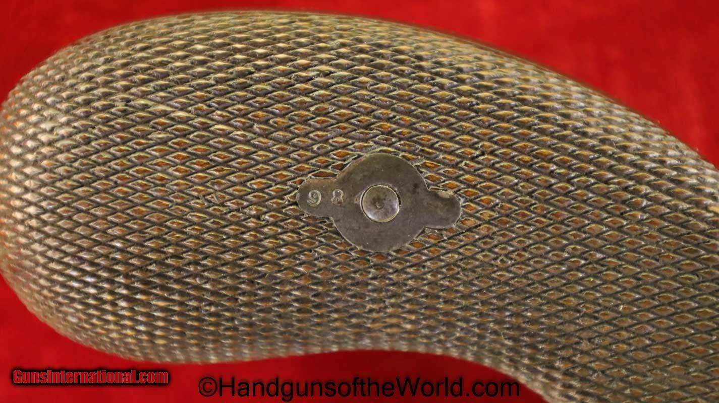 Description: Reich Revolver 1883 Officers Model, 10.6mm. This single trigger, single action revolver has the correct checkered walnut grips. This was built by the consortium V.C.S & C.G.H-Suhl. There are German Military acceptance proofs on the butt. This has all matching numbers, about 70% high polish blue and an excellent bore. Antique. Antique: Yes Handgun Caliber: 10.6×25mmR German Ordnance Manufacturer: V.C.S & C.G.H-Suhl Model: 1883 Price: $2,150.00 Shipping: $35.00 Contact Seller |