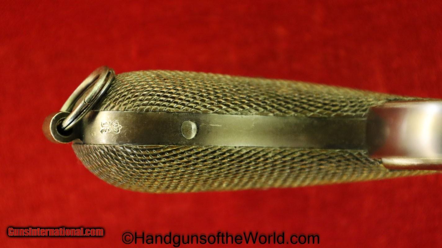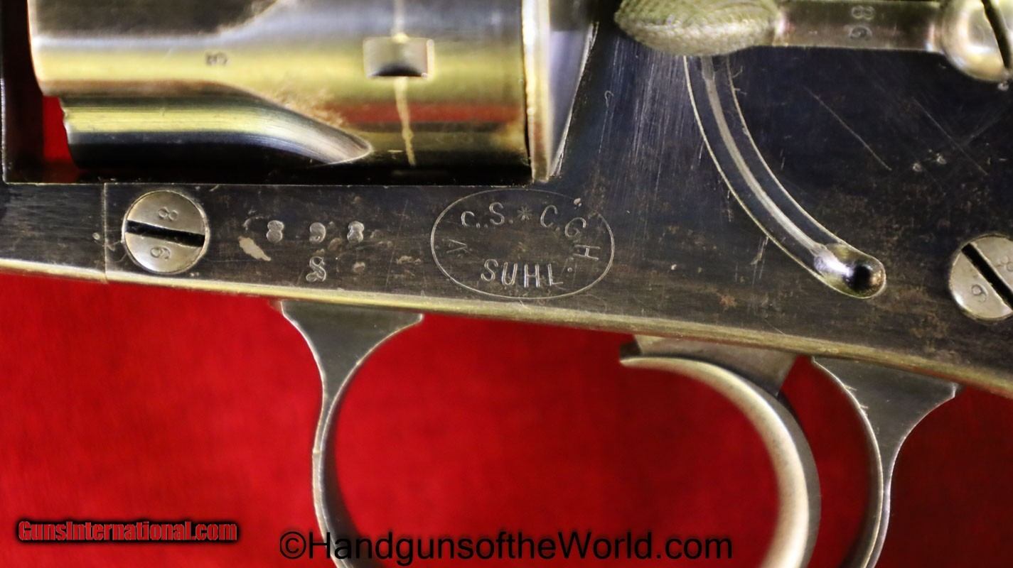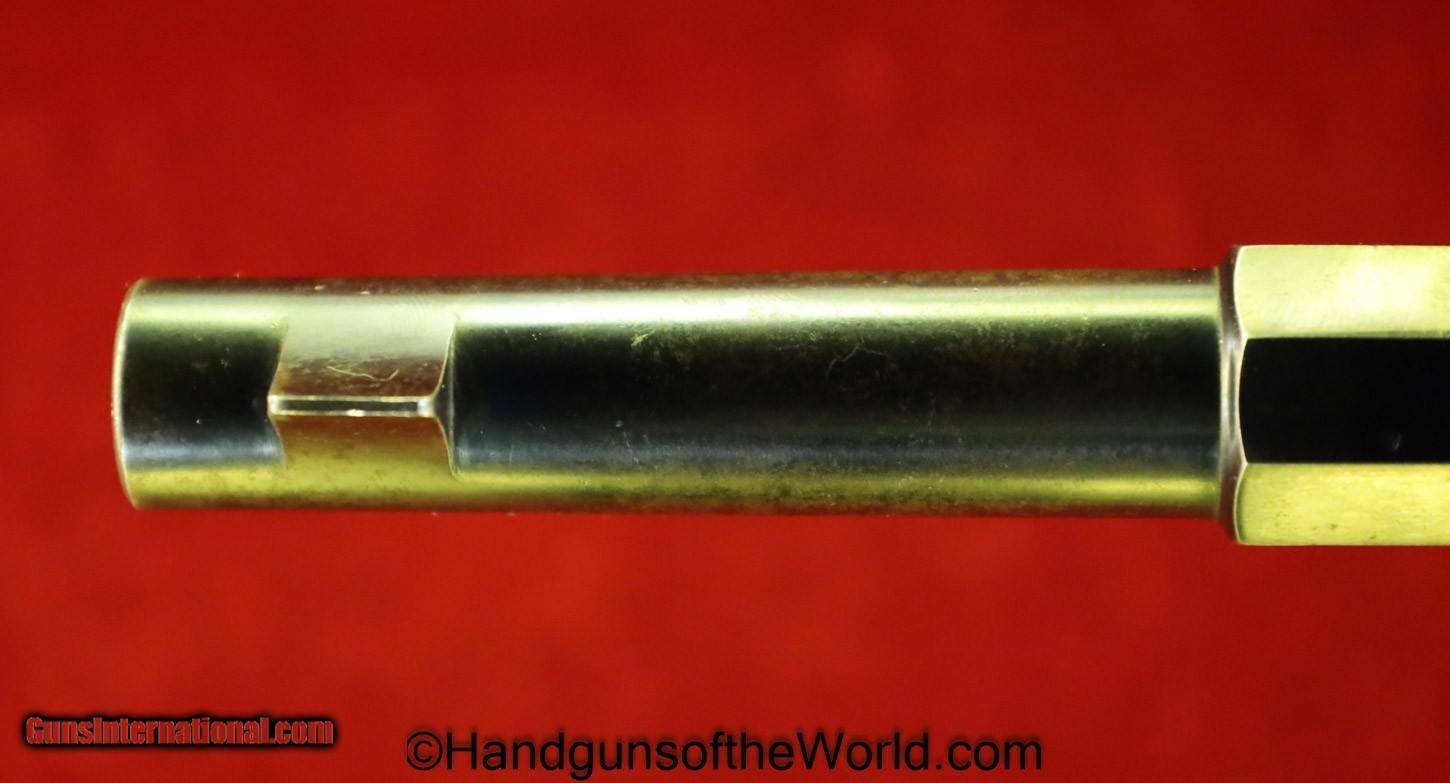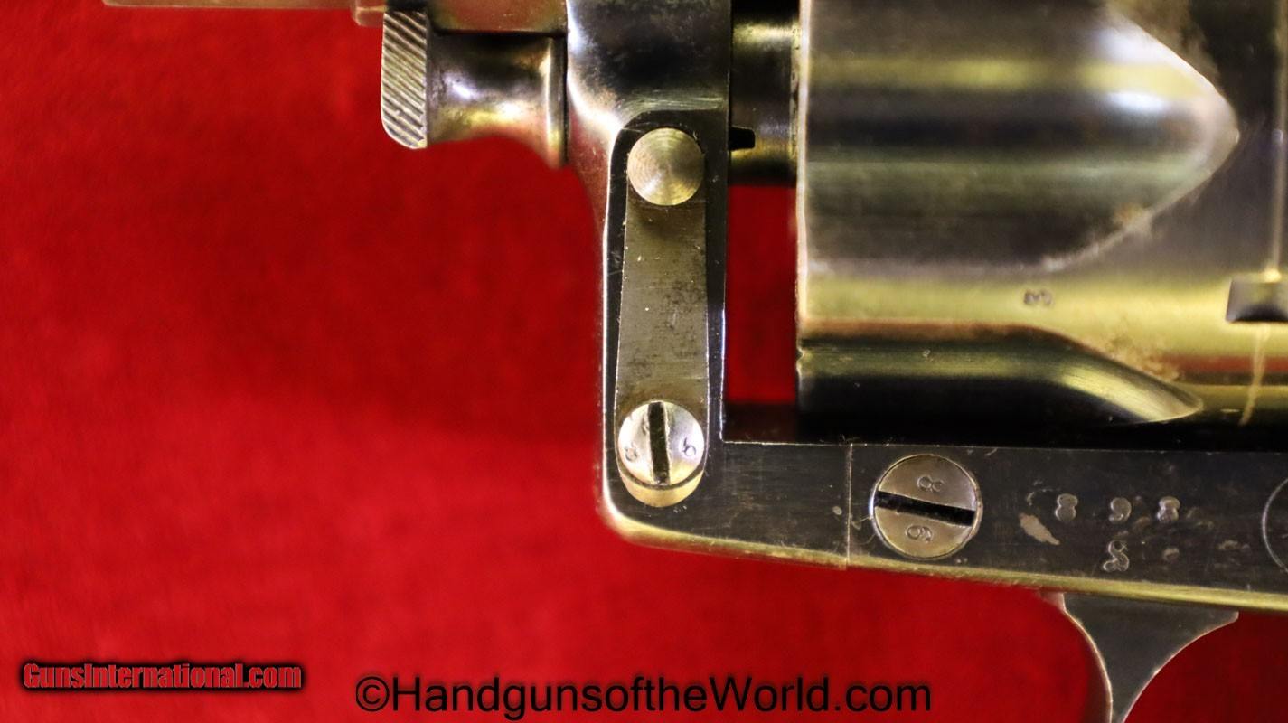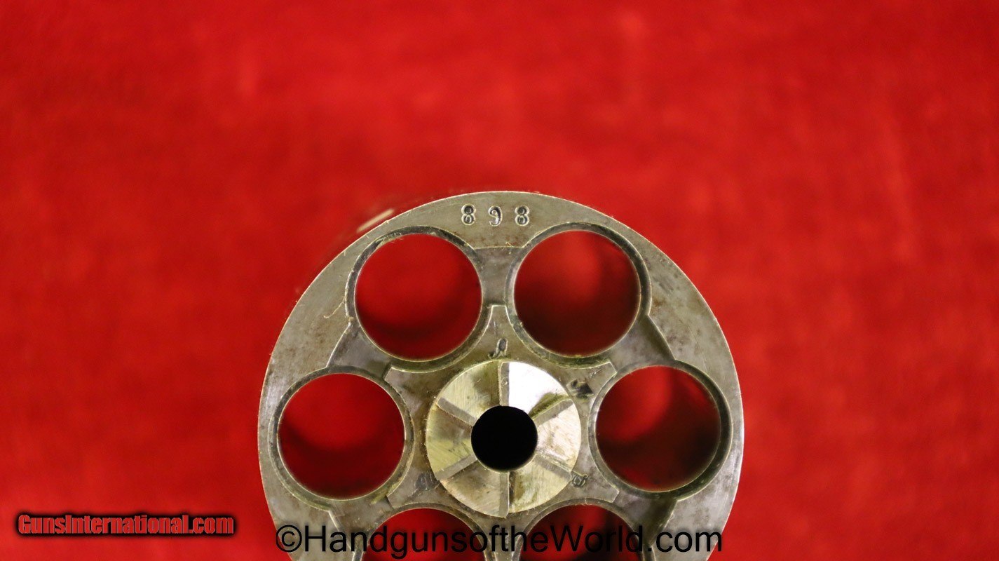 Description: Reich Revolver 1883 Officers Model, 10.6mm. This single trigger, single action revolver has the correct checkered walnut grips. This was built by the consortium V.C.S & C.G.H-Suhl. There are German Military acceptance proofs on the butt. This has all matching numbers, about 70% high polish blue and an excellent bore. Antique. Antique: Yes Handgun Caliber: 10.6×25mmR German Ordnance Manufacturer: V.C.S & C.G.H-Suhl Model: 1883 Price: $2,150.00 Shipping: $35.00 Contact Seller |
