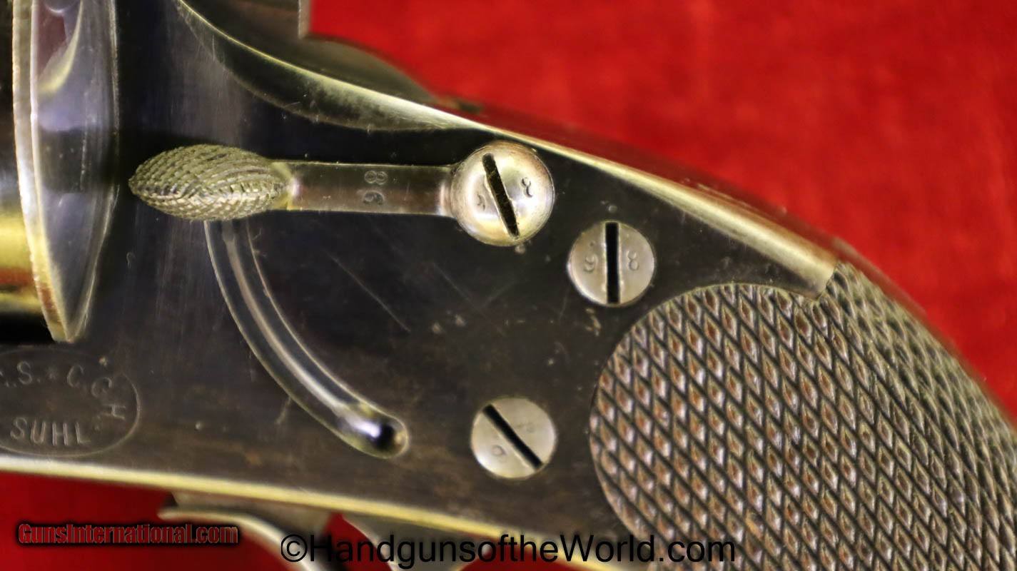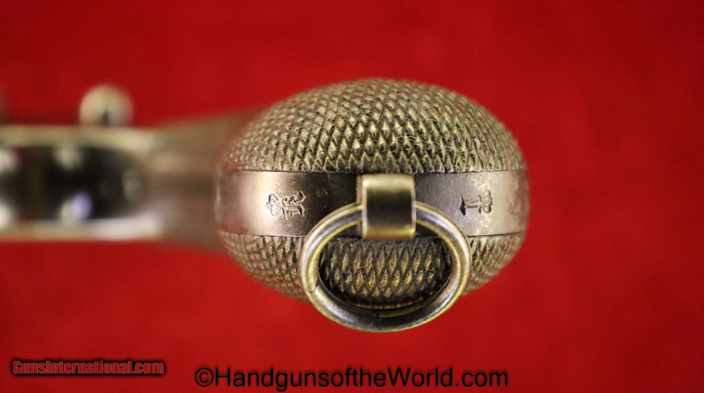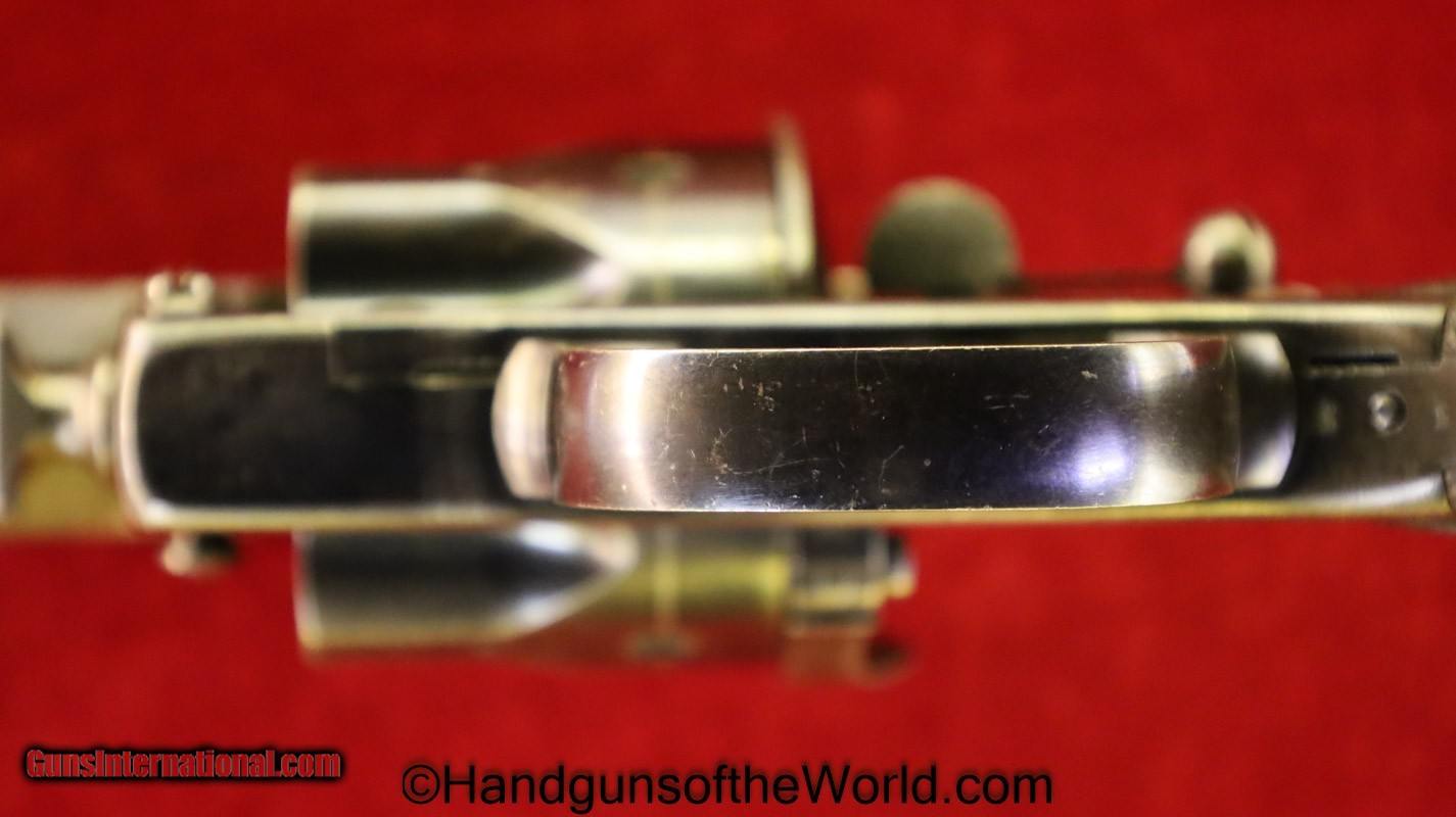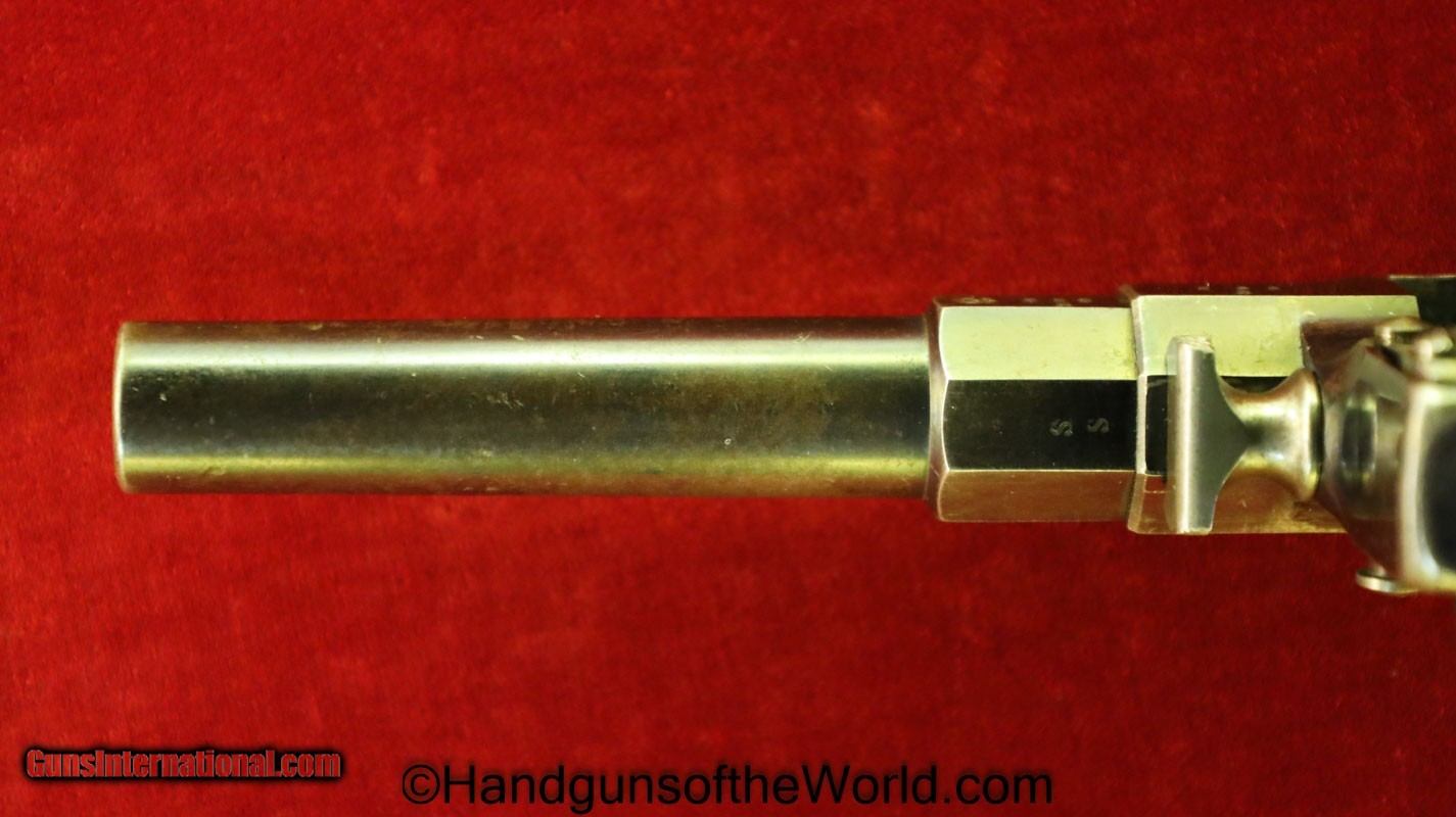Description: Reich Revolver 1883 Officers Model, 10.6mm. This single trigger, single action revolver has the correct checkered walnut grips. This was built by the consortium V.C.S & C.G.H-Suhl. There are German Military acceptance proofs on the butt. This has all matching numbers, about 70% high polish blue and an excellent bore. Antique. Antique: Yes Handgun Caliber: 10.6×25mmR German Ordnance Manufacturer: V.C.S & C.G.H-Suhl Model: 1883 Price: $2,150.00 Shipping: $35.00 Contact Seller |