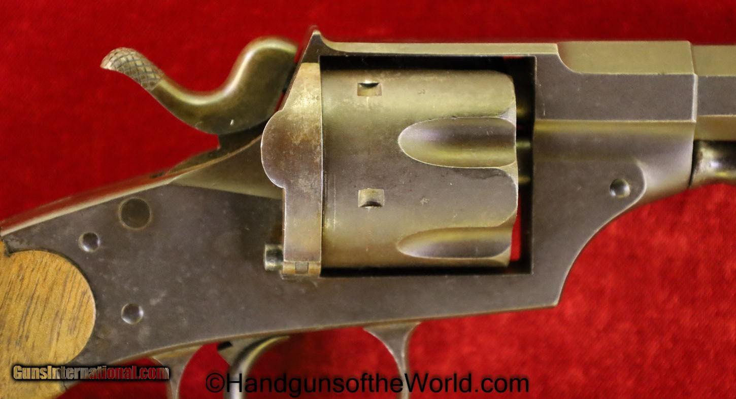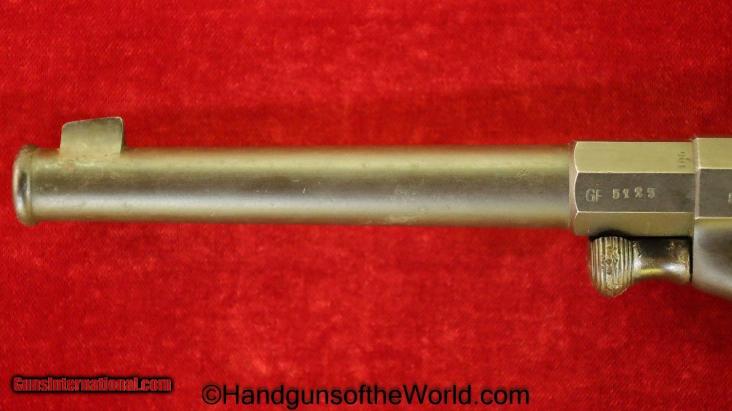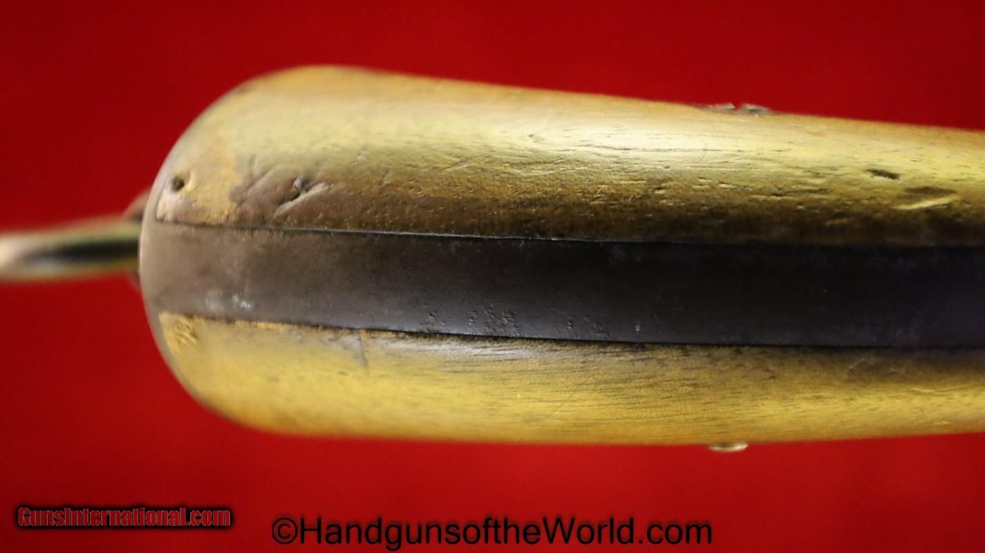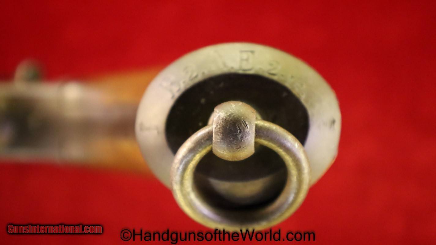 Description: Reich revolver, 10.6mm. Built by Dreyse and dated 1882 under the broke cylinder pin retainer. This has the proper smooth walnut grips, and is Division marked B.2.A.E.214 on the butt. The cylinder pin is from a different gun. This has a pleasing patina overall and a VG+ Bore. Antique. Antique: Yes Handgun Caliber: 10.6×25mmR German Ordnance Manufacturer: Dreyse Model: Reich Price: $1,250.00 Shipping: $35.00 Contact Seller |