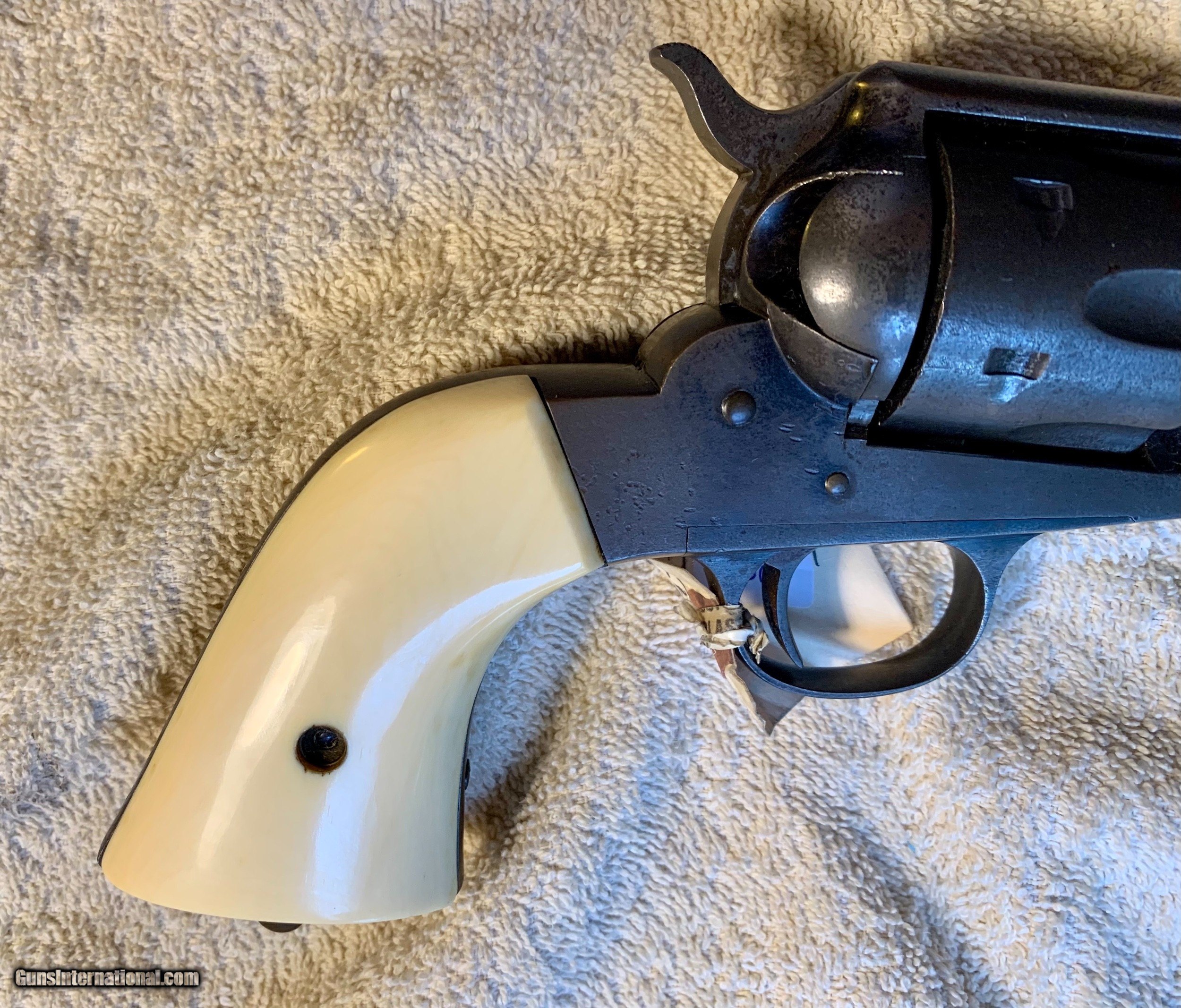 Description: VF condition rare model 1890 revolver w/ factory ivory grips very low serial "# 667 of 2000 made .44-40 caliber, grips are excellent as is the bore. action, cylinder and trigger all operate as it should, tight. half cock, fire perfectly all markings nice, very nice cylinder as well SOLD SOLD Antique: Yes |