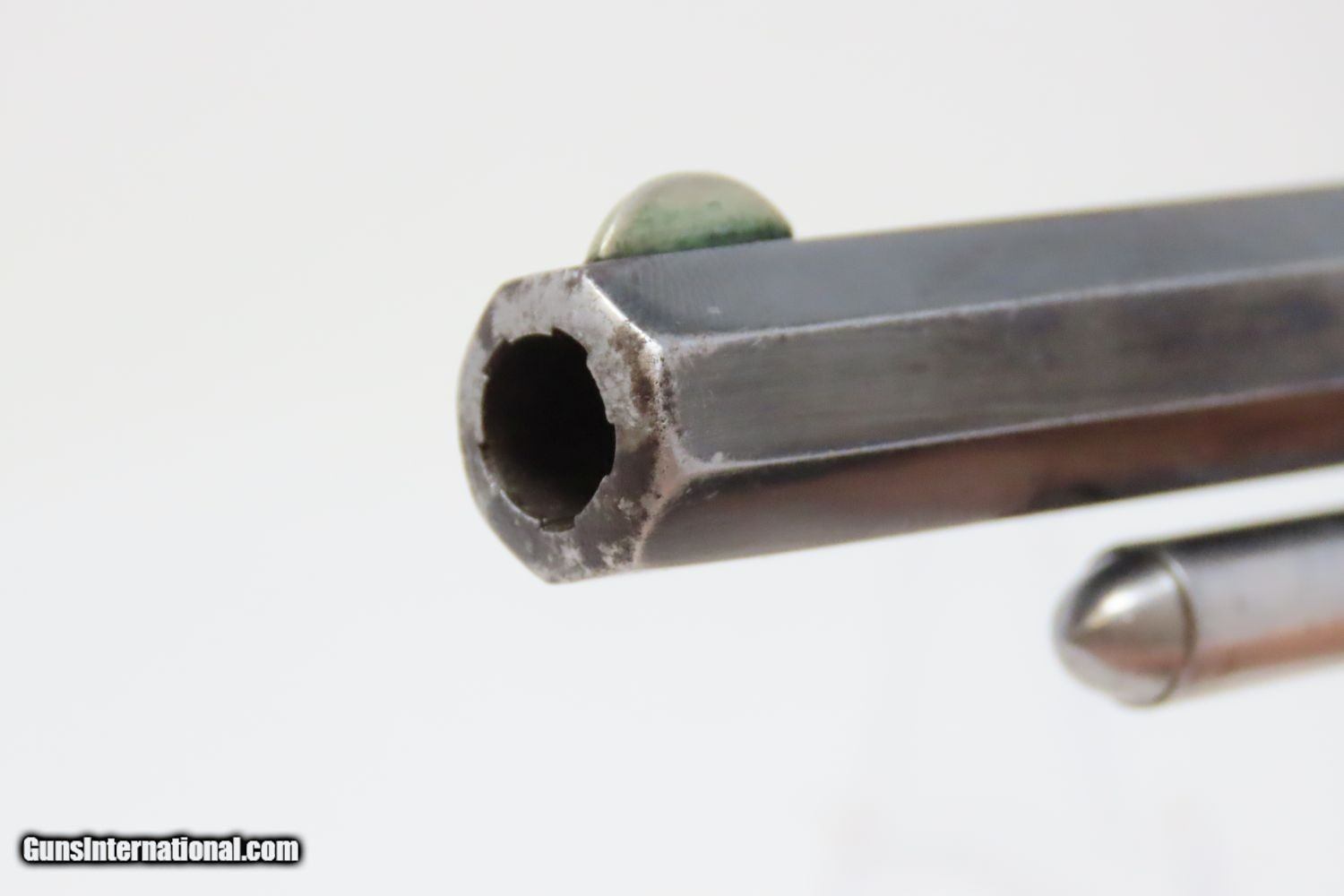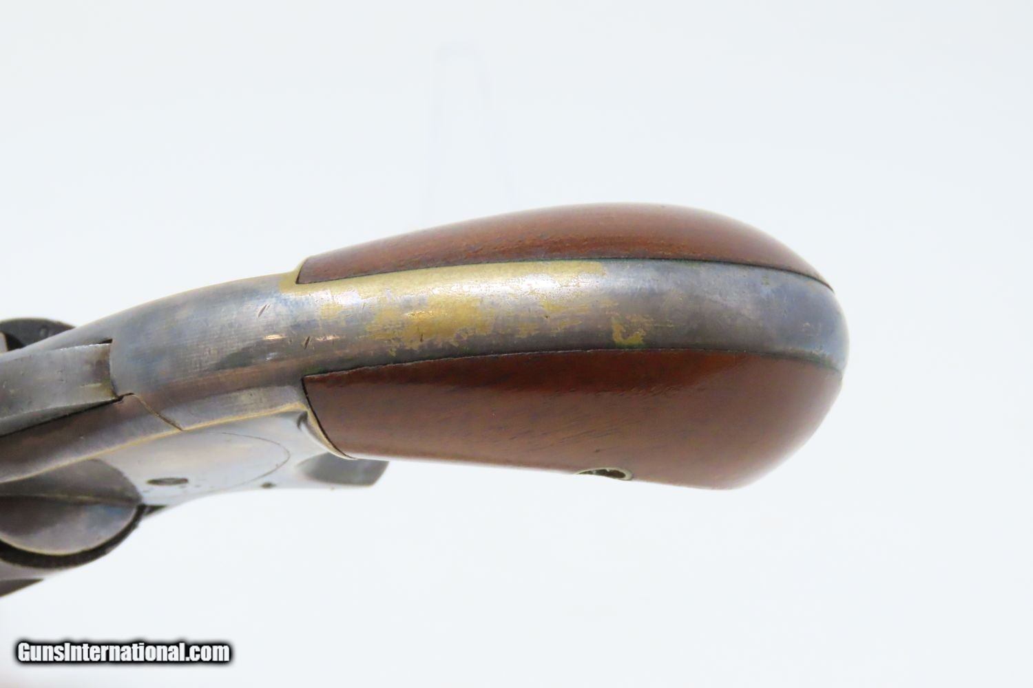 Description: REVOLVER & HOLSTER RIG Antique WHITNEYVILLE ARMORY No. 1 ½ in .32 Rimfire Including ORIGINAL LEATHER HOLSTER! Here we present an antique Whitney Model No. 1-1/2 Revolver & Holster, made circa the 1870s in New Haven, Connecticut. Around 14,000 of these 5-shot revolvers are estimated to have been manufactured by Eli Whitney Jr.’s Whitneyville Armory in the 1870s. Eli Whitney Sr. established his Whitneyville Armory in 1798 and produced firearms (among other things) by contract for the young U.S. government. Just prior to this, in 1793, Whitney invented the mechanical cotton gin, which dramatically changed the economic landscape in the U.S., namely in the South. While his invention was a labor-saving device, making the processing of harvested cotton extremely efficient and requiring fewer laborers, his machine caused the market for cotton to explode and more laborers were needed to plant, grow and harvest the crop. This resulted in a corresponding boom in the Southern slave trade. Great fortunes were created, and the population of the South became such that one in three Southerners were slaves. All this provided the fuel that would become the raze that was the American Civil War. Eli Whitney died in 1825, and his son, Eli Whitney Jr., began running the family business in 1841. Whitney Jr. seized the opportunity in 1847 to manufacture 1,000 of Samuel Colt’s latest revolver the Colt Walker revolver. Production of this revolver helped both parties immensely as it kept Colt in business, and it allowed Whitney Jr. to tool up and gain experience making revolvers. With the expiration of Colt’s patents in 1857, Whitney began production of percussion revolvers based on Colt’s patents, some of them very closely copied. The overall condition is fine. Gorgeous silver plate and blued finish. The action (hammer/trigger) is functional though the cylinder’s index is off. The bore is in good shape. The grips are in great shape with mild wear. The holster is very good and is extremely well-preserved as is the revolver. A fantastic little rig! Own the original! This is a legitimate antique and not a reproduction. Barrel is 3-1/2 inches. Caliber: .32 Rimfire Overall condition as seen in photos. Very Fast. Very Safe. FREE SHIPPING WORLDWIDE. Delivered directly to your door by express mail! Guaranteed AUTHENTIC & Includes CERTIFICATE OF AUTHENTICITY. ancestryguns $1385 #200882 SOLD Antique: Yes Handgun Caliber: .32 Rimfire |