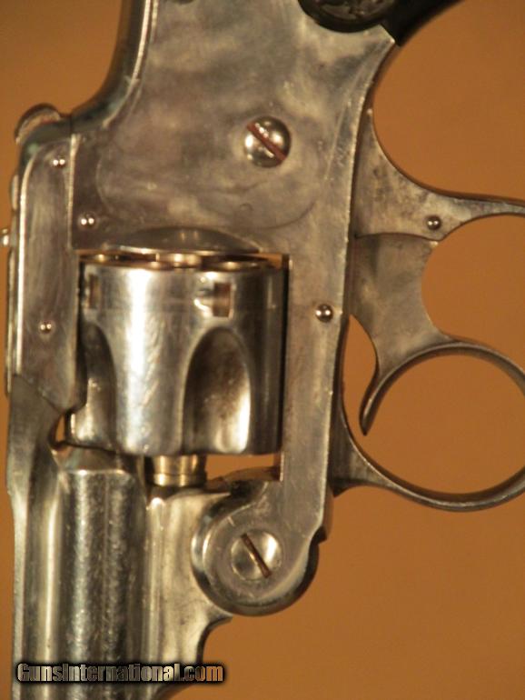 Description: S&W 32 SAFETY HAMMERLESS 1ST MODEL REVOLVER, SN 101XX, 3" bbl., VG original S&W hard rubber grips, 90% nickel, some spotting, very tight, works well. SOLD Antique: Yes |