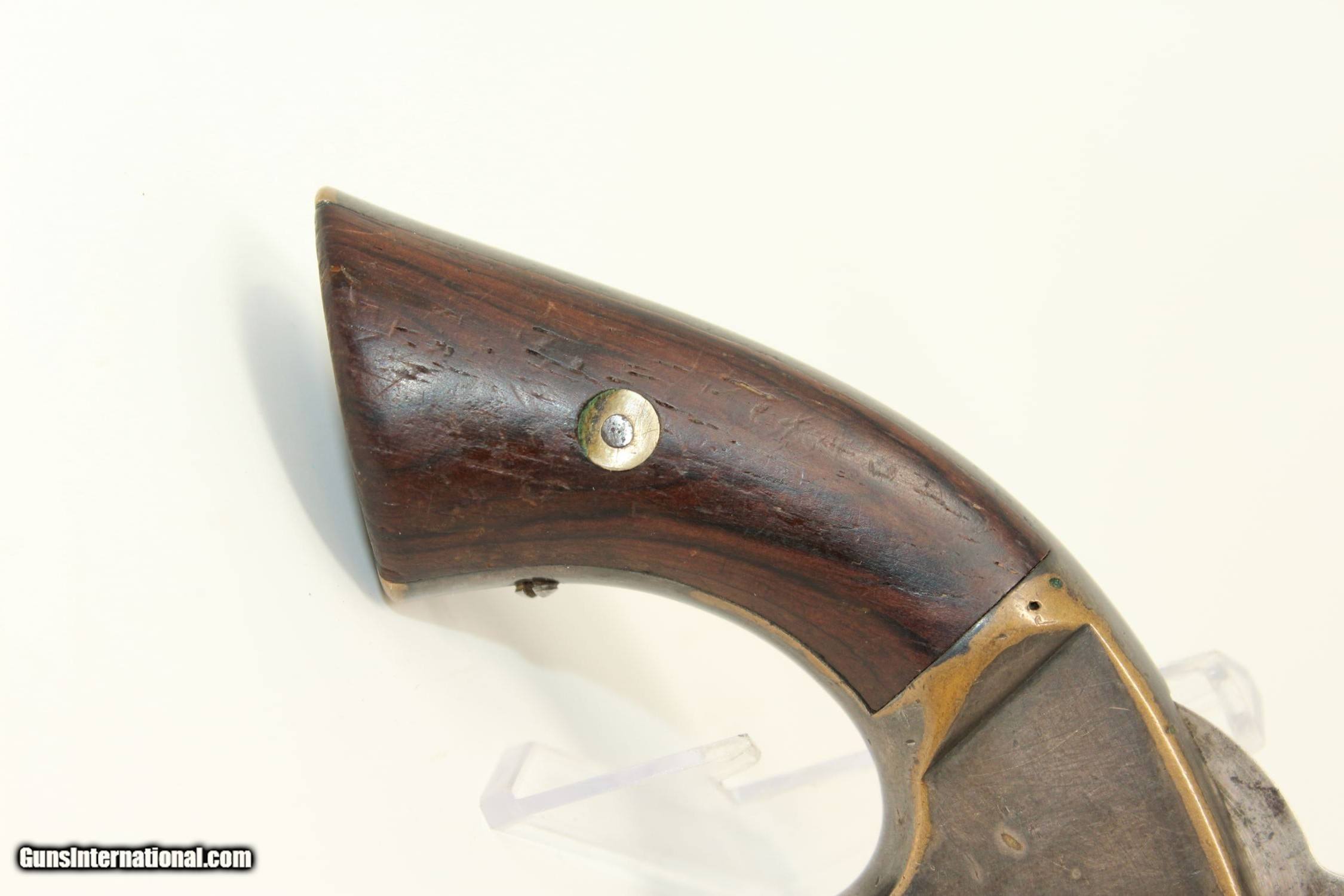 Description: Scarce “2D QUAL’TY” SMITH & WESSON No. 1 Revolver Circa 1867 1 of 4,042 with “2D QUAL’TY” Marking Here we present an antique Smith & Wesson Model No. 1. Second Issue Revolver, manufactured circa 1867 in Springfield, Massachusetts, that has the rare “2D QUAL’TY” marking. The No. 1 was Smith & Wesson’s first metallic cartridge firearm. It utilized the idea of the “bored through cylinder”, which was patented by Rollin White and subsequently exclusively licensed by Smith & Wesson. This concept has forever changed revolving firearms design, and is the same idea used in revolvers today. S&W, via Rollin White himself, aggressively sued any patent infringers and were able to hold their monopoly on the American market for cartridge revolvers from about 1857 to 1870, whereupon their patent expired. The results were a very profitable business, a broke Rollin White, and a grudging U.S. Chief of Ordnance Alexander Dyer, who was still angry in 1870 about not being able to use the technology during the Civil War. The U.S. government ended up giving Colt their contracts since they valued the larger .44 caliber in the Colt 1860 Armies over the .32 caliber full sized No. 2 Armies. This small revolver is a 7-shot .22 rimfire. It was specifically designed to be a pocket gun, being very small and light. The No. 1 was the precursor to larger firearms that were simply scaled up to be more suitable for use as martial weapons. This one appears to have been marked for its “second quality” due to the casting flaw in the brass frame, visible on the right side of the gun. Only about 4,000 were marked so. The overall condition is good. About 60% of the silver plate finish remains. The markings are clear. The rosewood grips are in good shape. The bore is in good condition with strong rifling. The action is strong. Here is an interesting little Smith & Wesson that was sold blemished from the factory. It may not have been up to S&W’s aesthetic expectations but it worked! Own the original! This is a legitimate antique and not a reproduction. Barrel is 3-3/16 inches. Caliber: .22 Rimfire Overall condition as seen in photos. Very Fast. Very Safe. FREE SHIPPING WORLDWIDE. Delivered directly to your door by express mail! Guaranteed AUTHENTIC & Includes CERTIFICATE OF AUTHENTICITY. ancestryguns $1500 #190556 SOLD Antique: Yes |