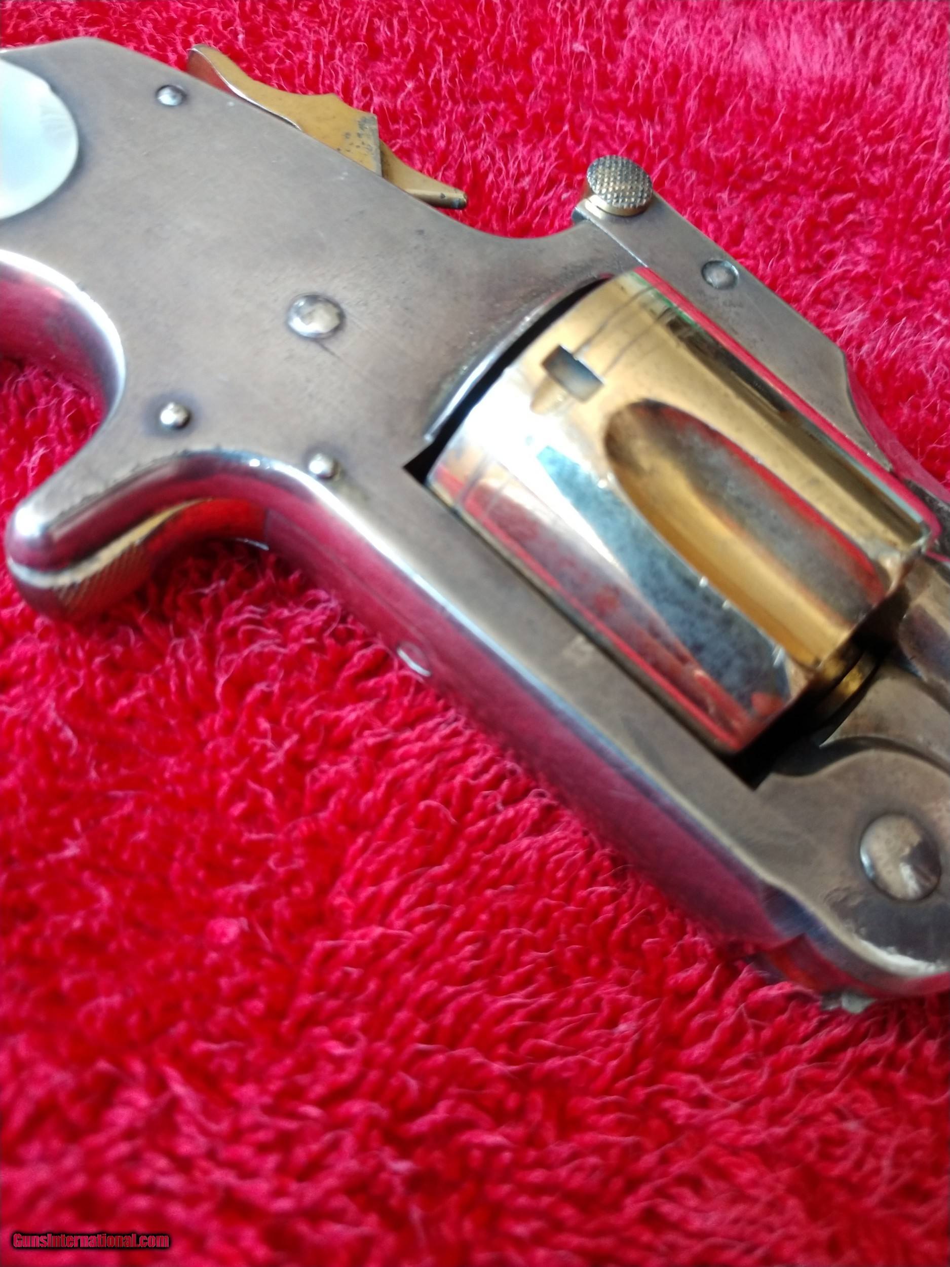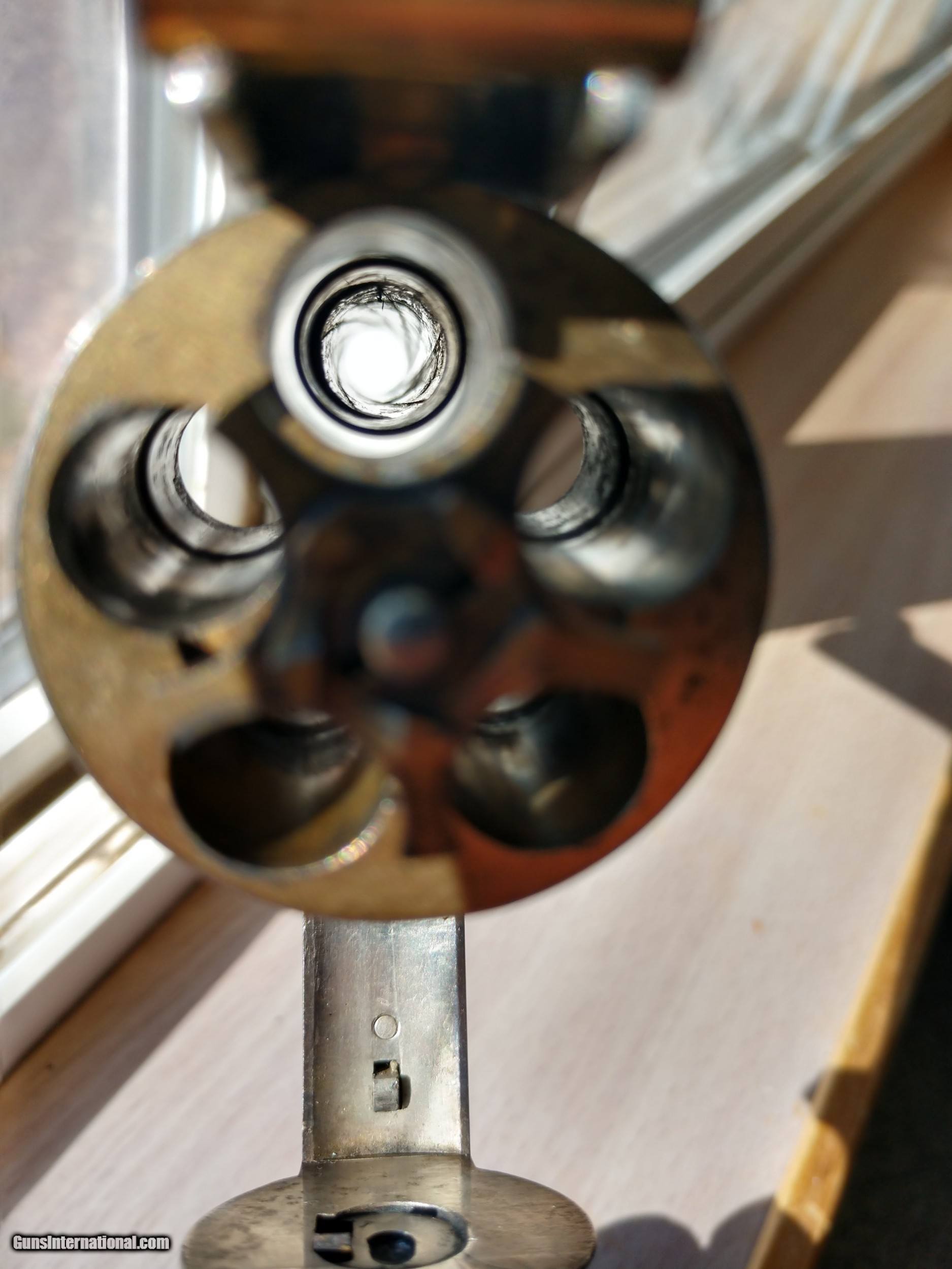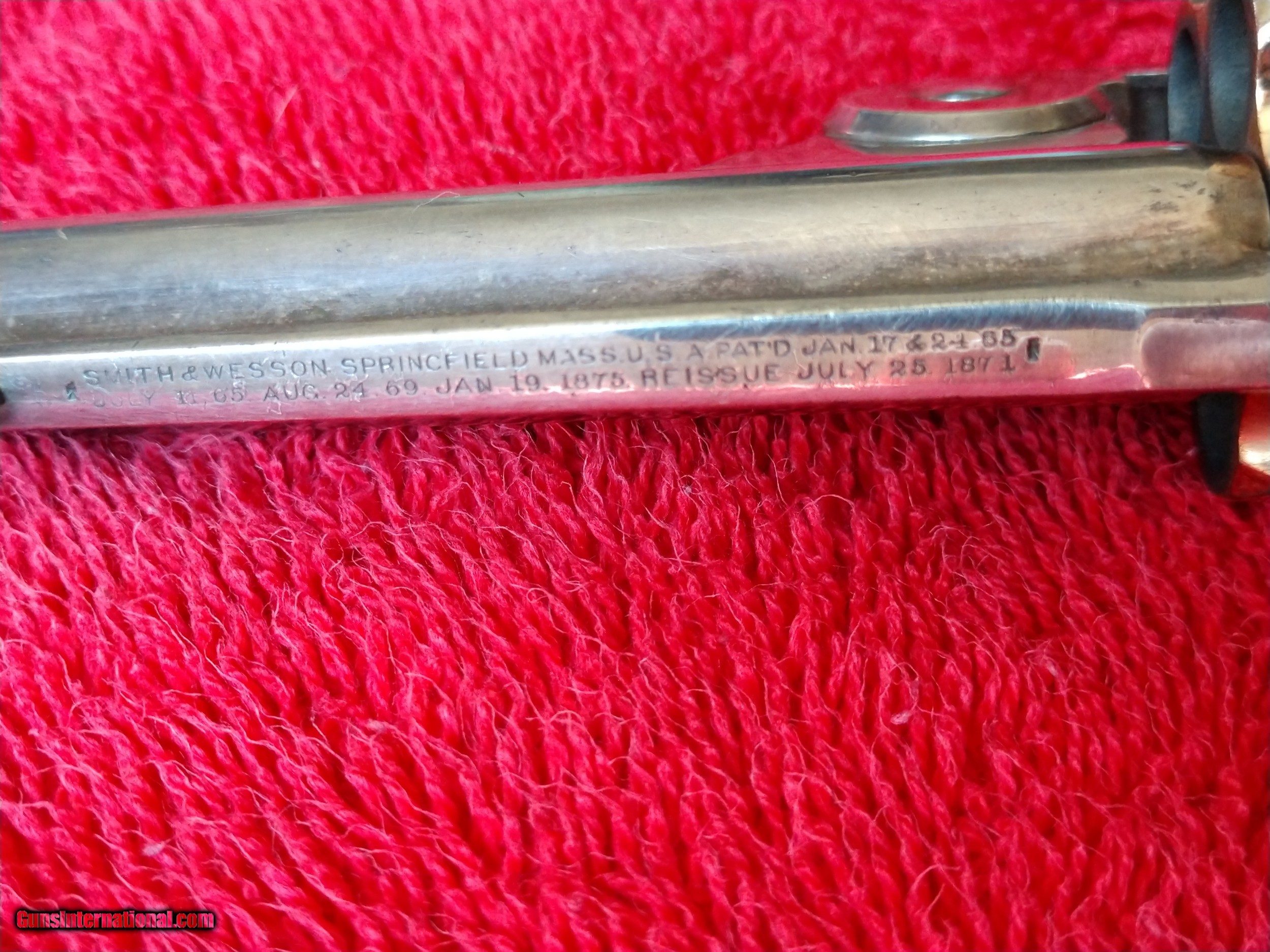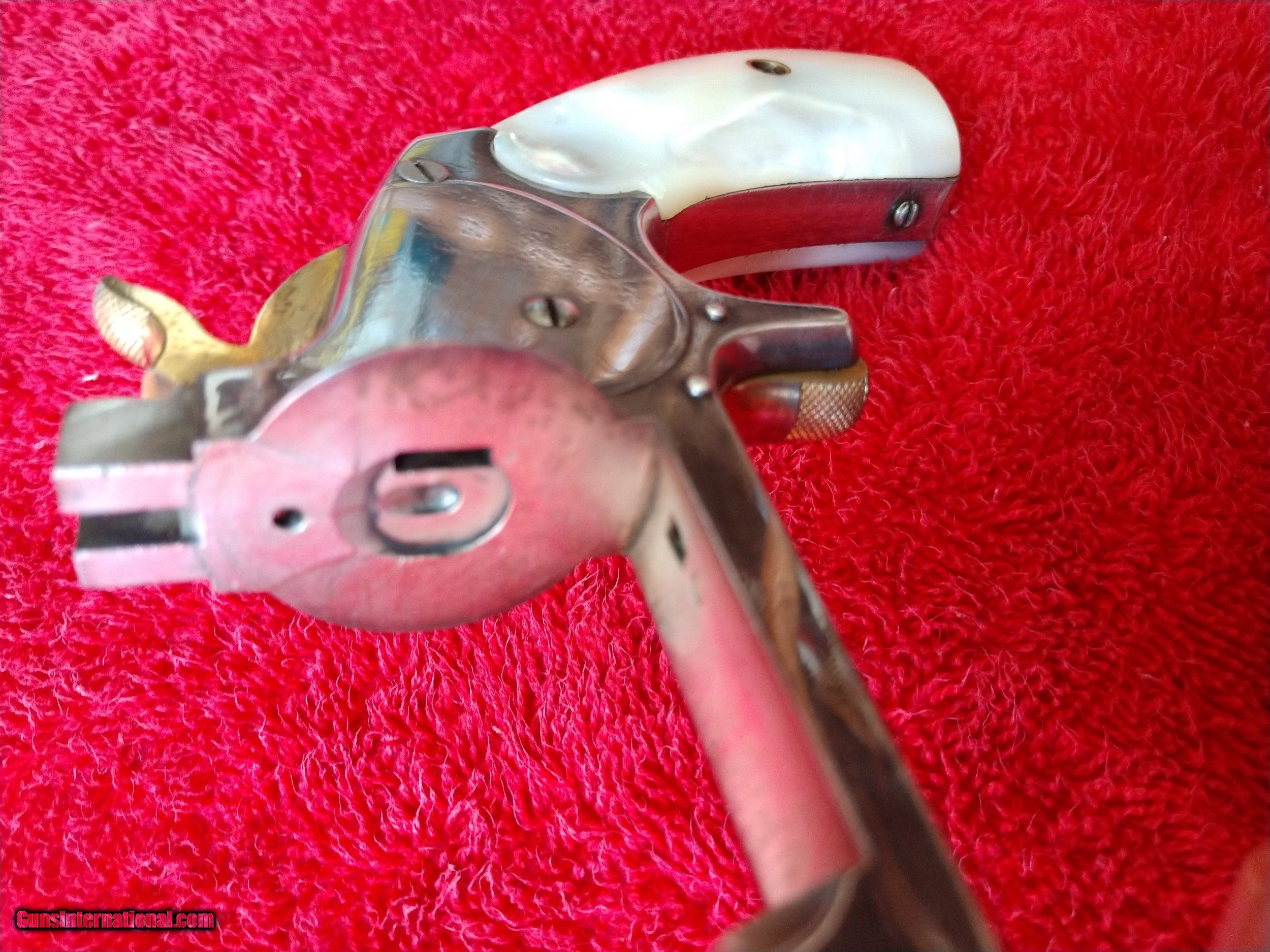 Description: 30 years of experience and this is the nicest model 2 Smith and Wesson to move through here. Action is original and like new. The barrel to frame lock is tight. The cylinder locks up tight and the timing is perfect. I have had this S&W in my personal collection for years and fired it accurately with delight. The face of the cylinder shows powder from that. It can be cleaned. The grips are very nice pearl. All matching serial numbers. Being an antique this beautiful break top revolver will ship directly to you and make a FANTASTIC addition to your collection that you will enjoy for years. SOLD Antique: Yes Handgun Caliber: .38 S&W (.38 Colt New Police, .38 Super Police) Manufacturer: Smith and Wesson Model: 2 Serial Number: 49155 Barrel Length: 3 1/4 inches Chambers: 5 Ejectors: "auto Condition: NRA excellent Barrel Type: Ribbed Action: Single Stock: Pearl Finish: Silver and GOLD |