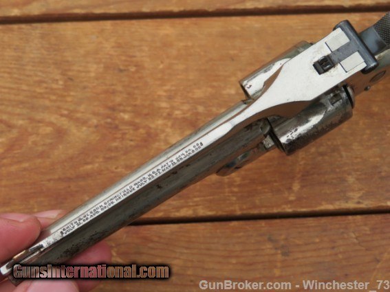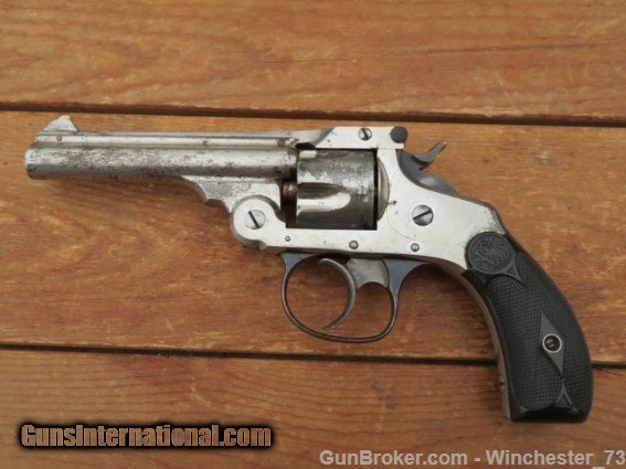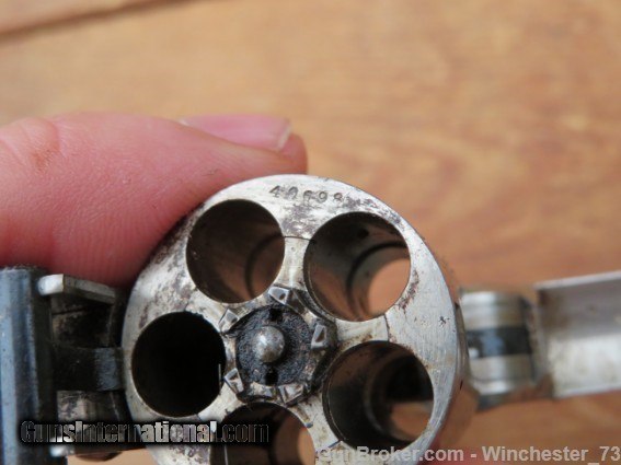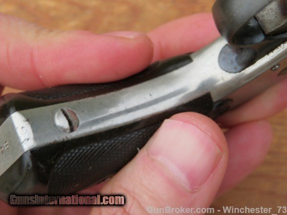 Description: ANTIQUE Smith and Wesson 32 double action 3rd model. The S&W 32 DA 3rd model was made from 1882 to 1883, with SNs ranging from 22173 to 43405. Only 22,232 were ever produced. SN - 40698. Since this revolver is an antique, it will ship directly to you. This particular revolver shows wear and some light rust and patina as pictured. The remaining nickel finish is factory. The pistol is all matching including the grips. The grips do not show any cracks or chips. This revolver works properly in all respects: hammer holds, trigger returns, latch returns, extractor works properly, revolver indexes well, and lockup is good. The barrel measures 3.5in. The bore shows visible rifling throughout with some light pitting noted. I would rate the bore a 8/10. The front sight had a small brass bead added to it, which could easily be removed, if one so desired. SOLD Antique: Yes Manufacturer: Smith n Wesson Model: 32 Double Action 3 rd Model Caliber Info: 32 Bore: good Chambers: good Condition: 80% Metal Condition: good Finish: good |