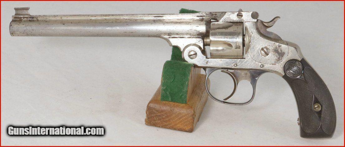 Description: A 5 Shot top break, with a 6" barrel, and 90% of the Original Nickle finish on the frame, 5% on the barrel. .32 Double Action, Forth Model. Target sight on the muzzle with a standard on the frame. Antique, (Pre 1898) Good bore, and fine grips. This Smith is mechanically perfect and clean. SOLD Antique: Yes |