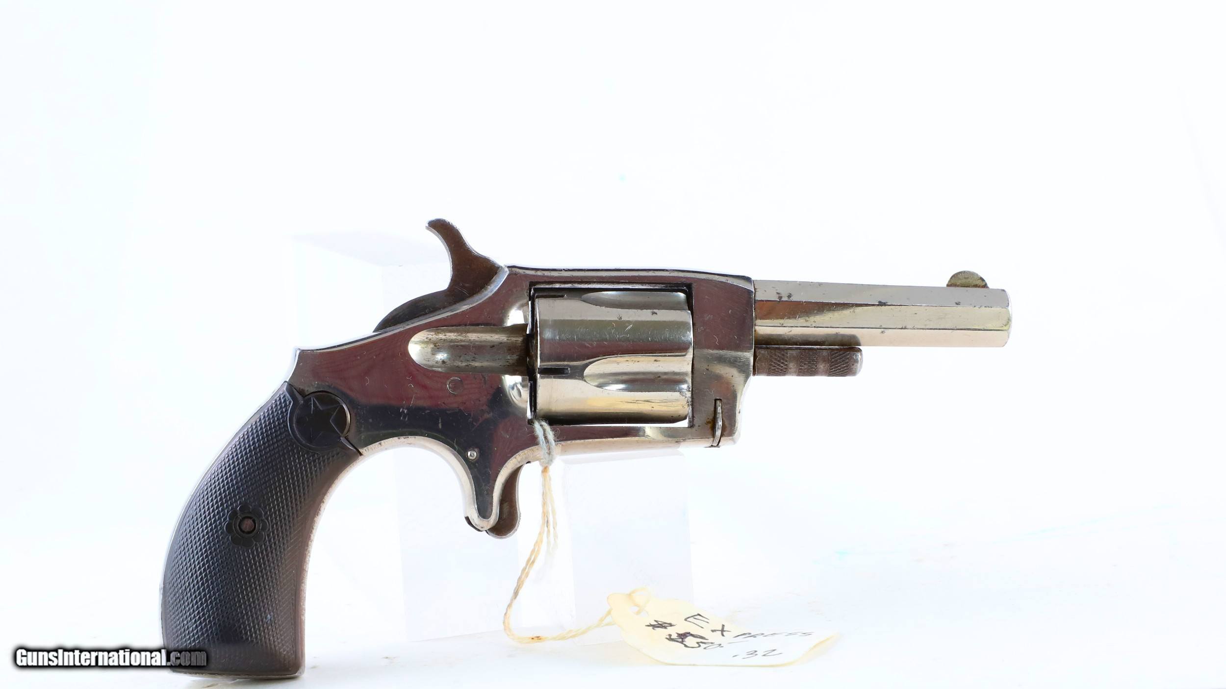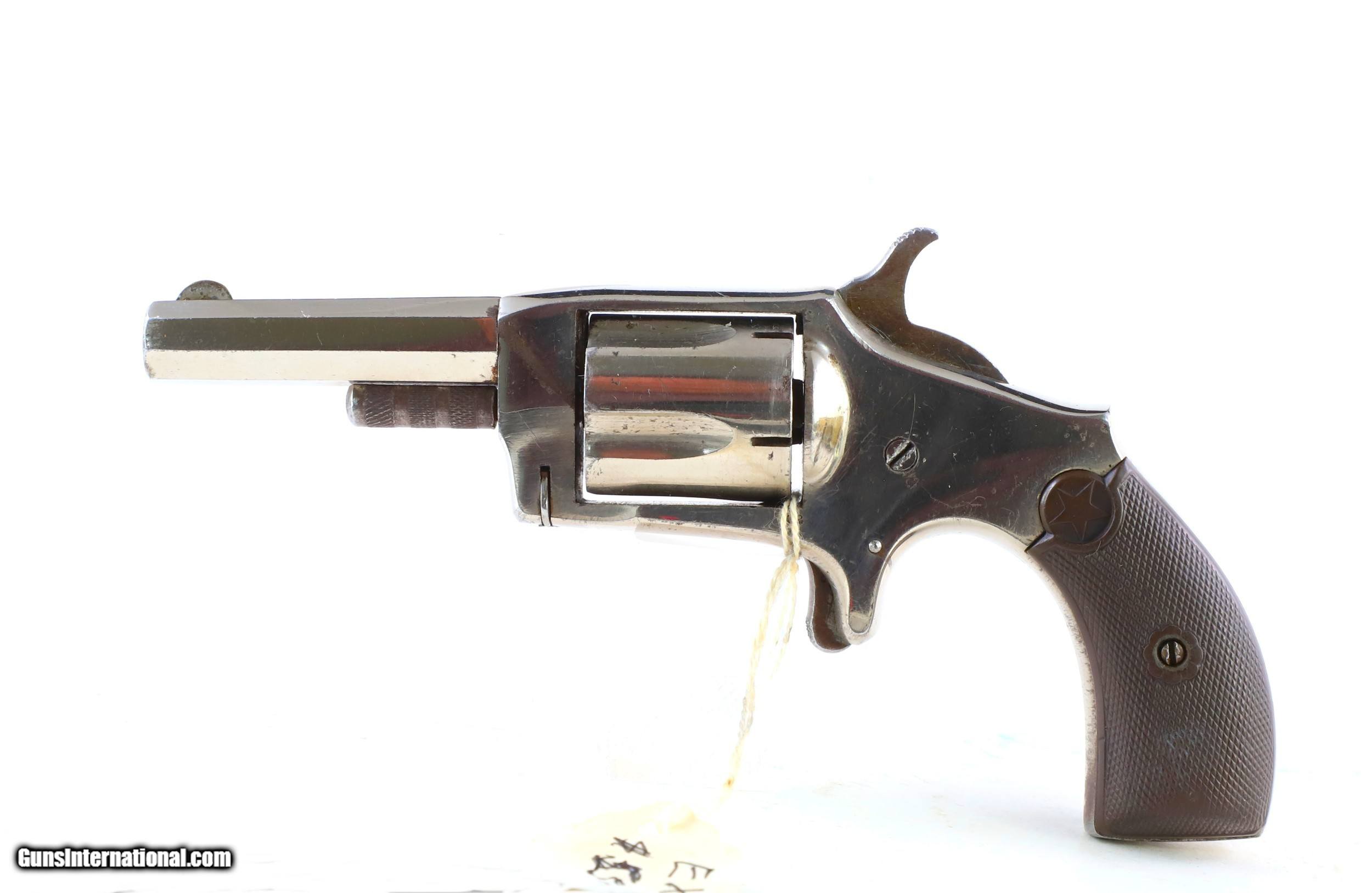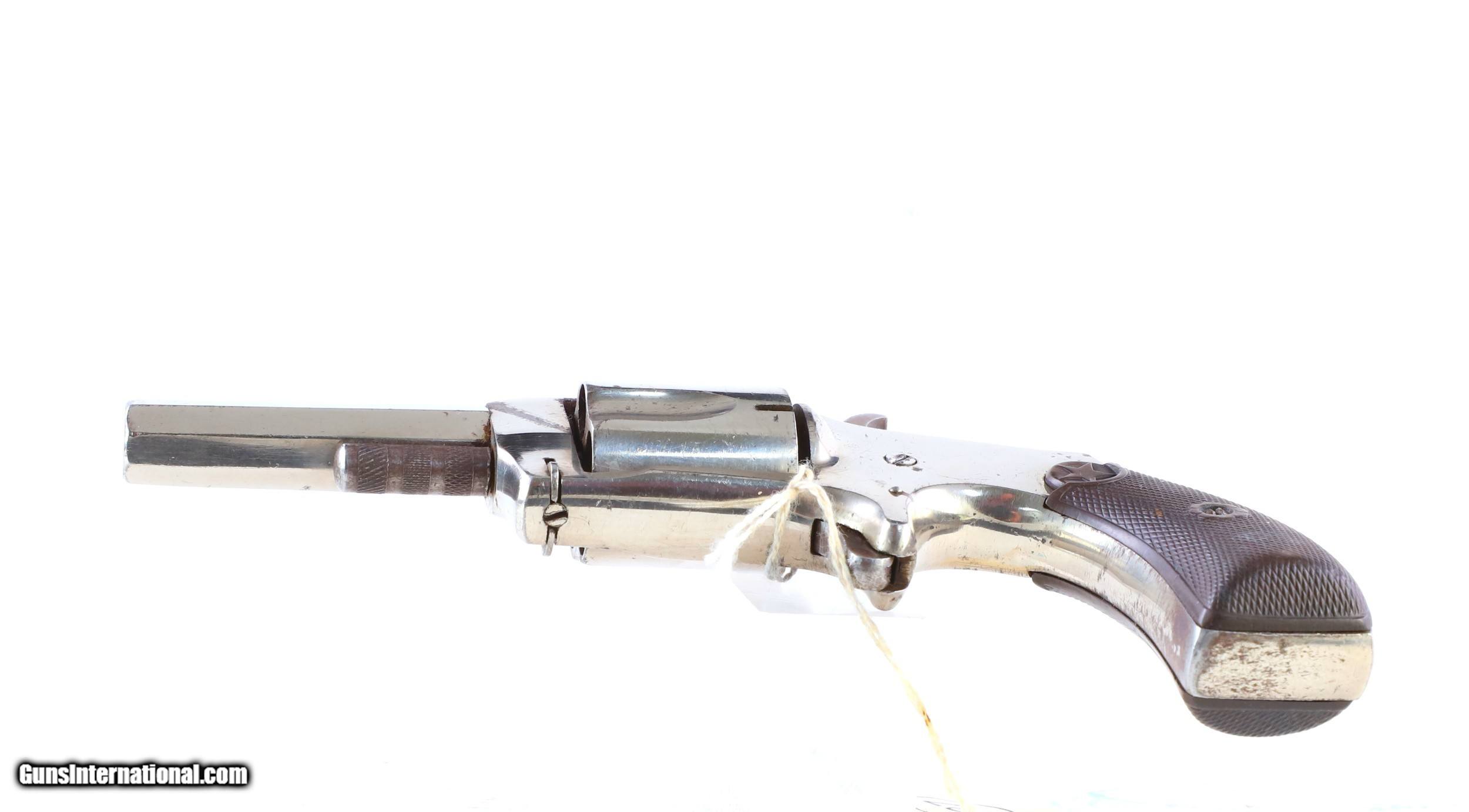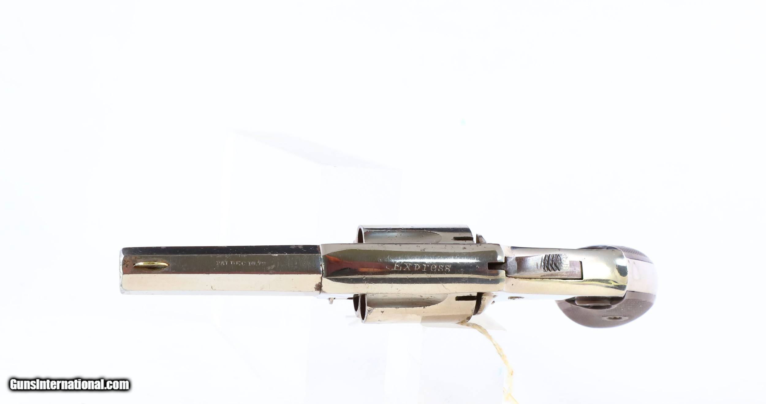 Description: The Expiration of Rollin White's Patent ushered in the era of the inexpensive spur trigger revolver; Bacon Arms Company was to be a Major Manufacturer of these guns between 1869-1878. Some of the "Trade Names" used on these revolvers include Bonanza, Big Bonanza, Conqueror, Daisy, "Express", Guardian, Little Giant, Kentucky, Penetrator... These guns were manufactured over several years, and there are many variations other than caliber; these include engraving, marking, and grip shape. This "EXPRESS", A Mid Size Frame Spur Trigger, was made around 1878, has a 2-1/2 inch Octagonal barrel, .32 rim-fire caliber, about 90% of the Original Factory Nickel finish is present... The Revolver is 100% Mechanically Correct. A Unique Name and revolver, in Fine Condition. SOLD Antique: Yes |