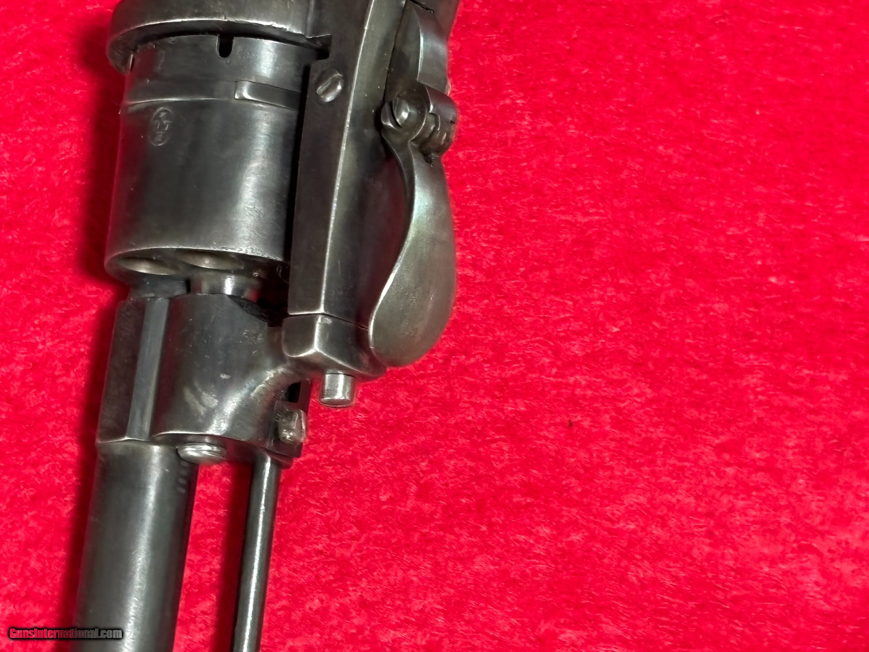 Description: Very nice Rare Antique Belgium 7.65 mm Pin fire pocket Revolver Description: Belgian-made 7.65 MM Pin Fire Revolver with a 3 ¼“ octagon barrel, 6-shot capacity, and folding trigger. Looking for a rare and nicely crafted antique revolver? Look no further than this Belgium Pocket revolver, These revolvers were produced in Belgium in the mid to late 19th century and were popular among both civilians and law enforcement. Pinfire revolvers were named for the unique pin-shaped firing mechanism they used, which was loaded with a pin-shaped firing pin that struck the cartridge primer. Belgium proof and inspector marks Blue finish Folding hammer loading gate 7.65mm Pinfire 6 shot 3 ¼” round barrel 7” length overall Condition: 3 ¼” nice bore with some minor pitting and still showing strong rifling. Metal surface is in very good condition. The Original blue finish has faded and starting to turn to a nice antique gun-metal grey patina. Small amount of pin-prick pitting and a couple of tiny dings on the top of the barrel. Loading gate and folding trigger both work fine with solid spring action. Original Walnut grips rate in very good condition with just some minor handling marks and are numbered to the gun. ELG proof marks are still crisp and legible. Revolver has a tight lock-up. Mechanically works very well in single / double action with very good timing and strong hammer spring. The current condition of the item listed has been described to the best of my ability . Please examine the photos , text thoroughly and make sure to ask any and all questions. Today, these revolvers are considered to be collector's items and are highly sought after by firearms enthusiasts and collectors alike. Their historical significance from the late 19 century and unique design make them a valuable addition to any collection of antique firearms. Don't miss your chance to own a piece of history – This firearm is an antique and NO FFL is required. It is your responsibility to make sure the item is legal in your state and you must be 21 years of age or older to purchase. FREE. USPS priority shipping . This gun is sold "as-is" as a collectible with no warranty express or implied. and no returns. Payment can be made with bank check, postal, money order, or personal check. I can also take venmo, Zelle or Cash App if instant payment and shipping is preferred. The item will be shipped as soon as funds are receive. An email with tracking number will be sent as soon as item is shipped. SOLD Antique: Yes Handgun Caliber: 7mm Pinfire Manufacturer: Belgium |
