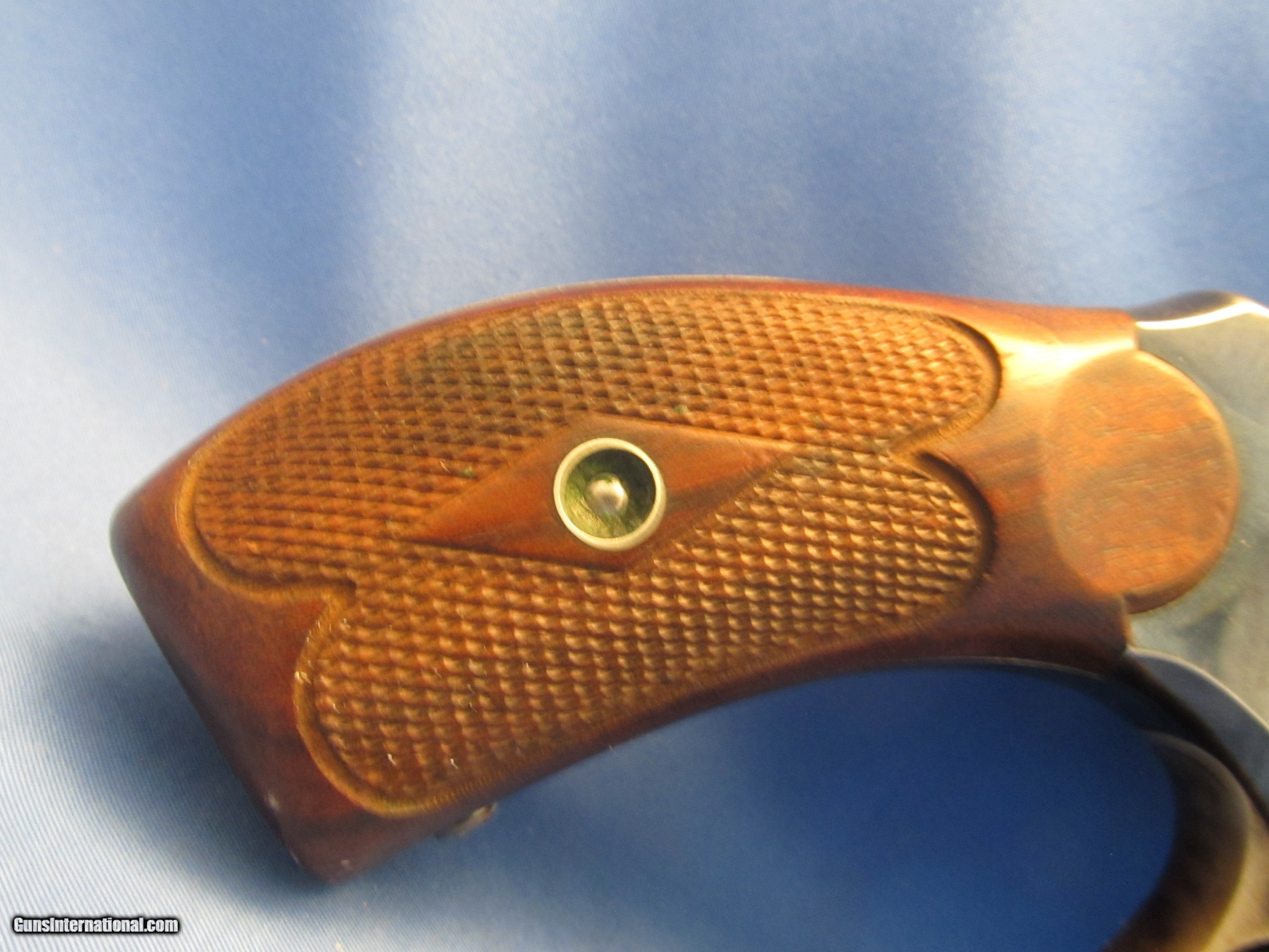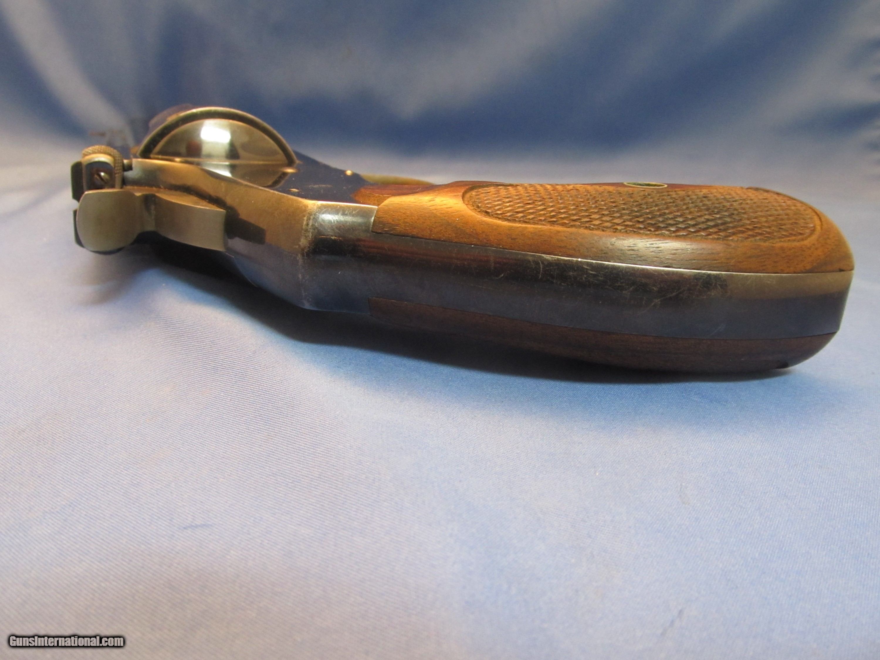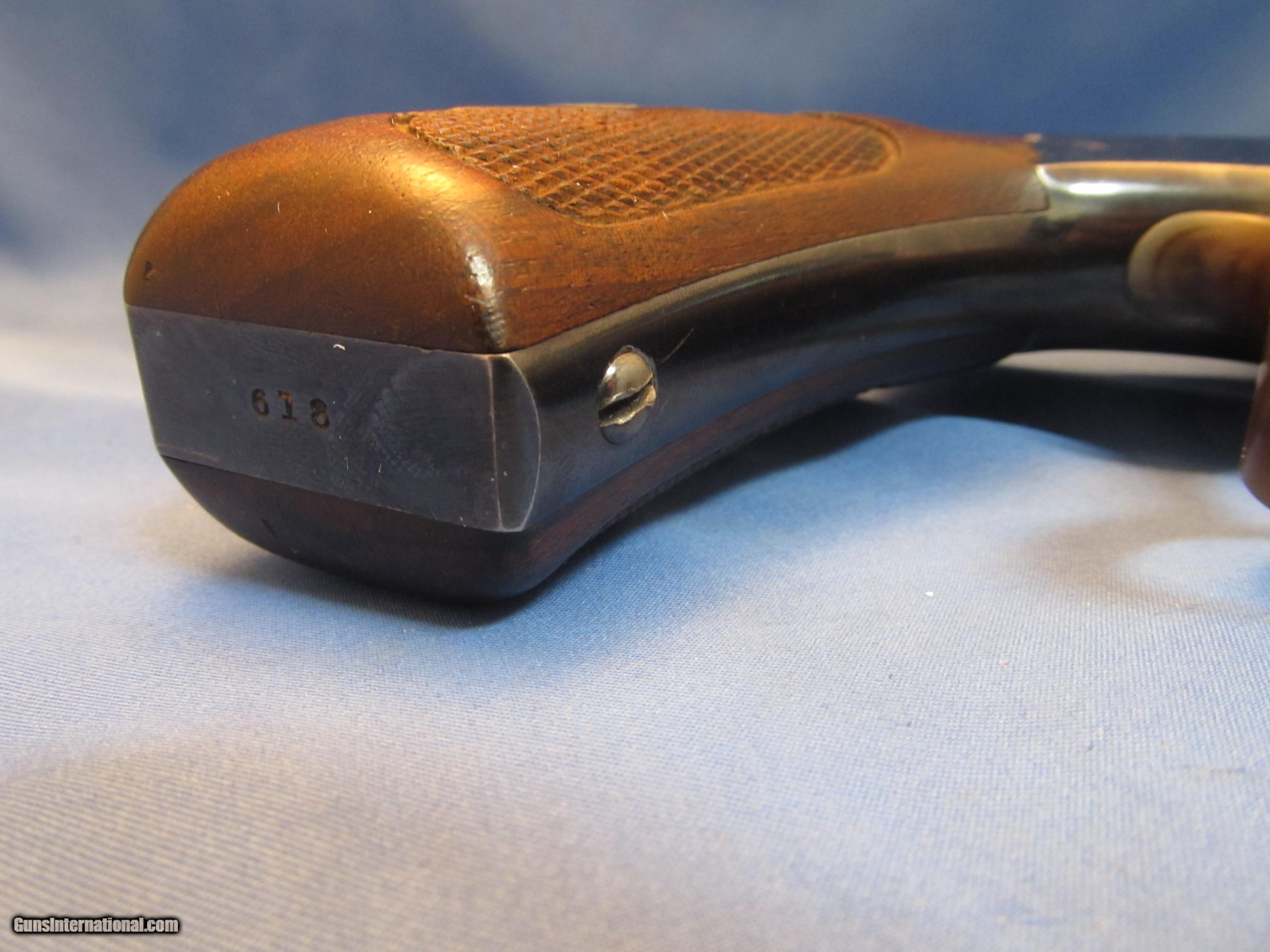 Description: THIS IS A VERY RARE AND EXCELLENT SPECIMEN OF AN ANTIQUE SMITH & WESSON NEW MODEL NO.3 TARGET SINGLE ACTION 6-SHOT 6-1/2” REVOLVER IN 38-44 CALIBER IT IS THE BEST VERSION OF A NO.3 THAT I HAVE EVER COME ACROSS IN 43 YEARS OF SELLING GUNS AND THE ONLY TARGET VERSION THE SERIAL NUMBER IS "618" SO VERY EARLY PRODUCTION THE BORE OF THE 6-1/2" BARREL IS ASTOUNDINGLY BRIGHT, SHINY, EXCELLENT AND RIFLING BETTER THAN 98% THE BLUE FINISH IS MOSTLY WORN ON THE CYLINDER AND RIGHT AT THE MUZZLE THE WOOD GRIPS ARE IN EXCELLENT SHAPE FRONT RAMP SIGHT AND REAR GROOVE SHE COCKS, CLICKS AND SLAMS LIKE SHE SHOULD AS SHOWN IN THESES MANY CLOSE UP PHOTOS WITH NOTHING ELSE UNDERSTAND THAT WE WILL PUT A SIGNATURE ON THE PACKAGE SO IT WON'T GET LEFT ON A PORCH BUYER PAYS A FIXED AMOUNT OF 35.00 INSURED SHIPPING TO THE LOWER MAINLAND STATES, ALASKA, HAWAII OR PUERTO NO SHIPMENTS OUTSIDE THE USA. MISSOURI RESIDENTS DO PAY A 8.575% SALES TAX. NO EXTRA CHARGE FOR CREDIT CARDS BRANDON'S GUN TRADING CO LLC 321 EAST 20TH ST JOPLIN MO. 64804 (417)-623-8787 FAX (417)-623-2326 9-5 TUESDAY-SATURDAY CENTRAL TIME WE ARE ALSO CLOSED THE 1'ST SATURDAY OF EVERY MONTH AND HOLIDAYS. OUR INVENTORY REFERENCE: CONSIGNMENT PLEASE NOTE, UPS SERVICE HAS GOTTEN SO BAD UNDER CURRENT MANAGEMENT THAT WE WON’T SHIP UPS UNLESS WE ABSOLUTELY HAVE TOO. WHEN WE DOUBLE PACK, INSURE, ADD SIGNATURE, USE GOOD BOXES AND UPS EVEN NOTES THEY DAMAGED THE ITEM AND THEY STILL WON'T PAY. ALSO, ANY INSURANCE WE DO PUT ON OUR PACKAGES IS VOID IF YOU OR YOUR DEALER THROWS AWAY THE BOX, ANY PACKING MATERIALS OR FAILS TO PICTURE AND NOTIFY US AND THE SHIPPING COMPANY IMMEDIATELY SOLD Antique: Yes Manufacturer: S&W Model: NEW MODEL NO. 3 TARGET Serial Number: 618 Barrel Length: 6 Condition: VERY GOOD Wood Condition: EXCELLENT Bore Condition: EXCELLENT Finish: BLUE Manufacture Date: PRE 1898 Item Location: Missouri |