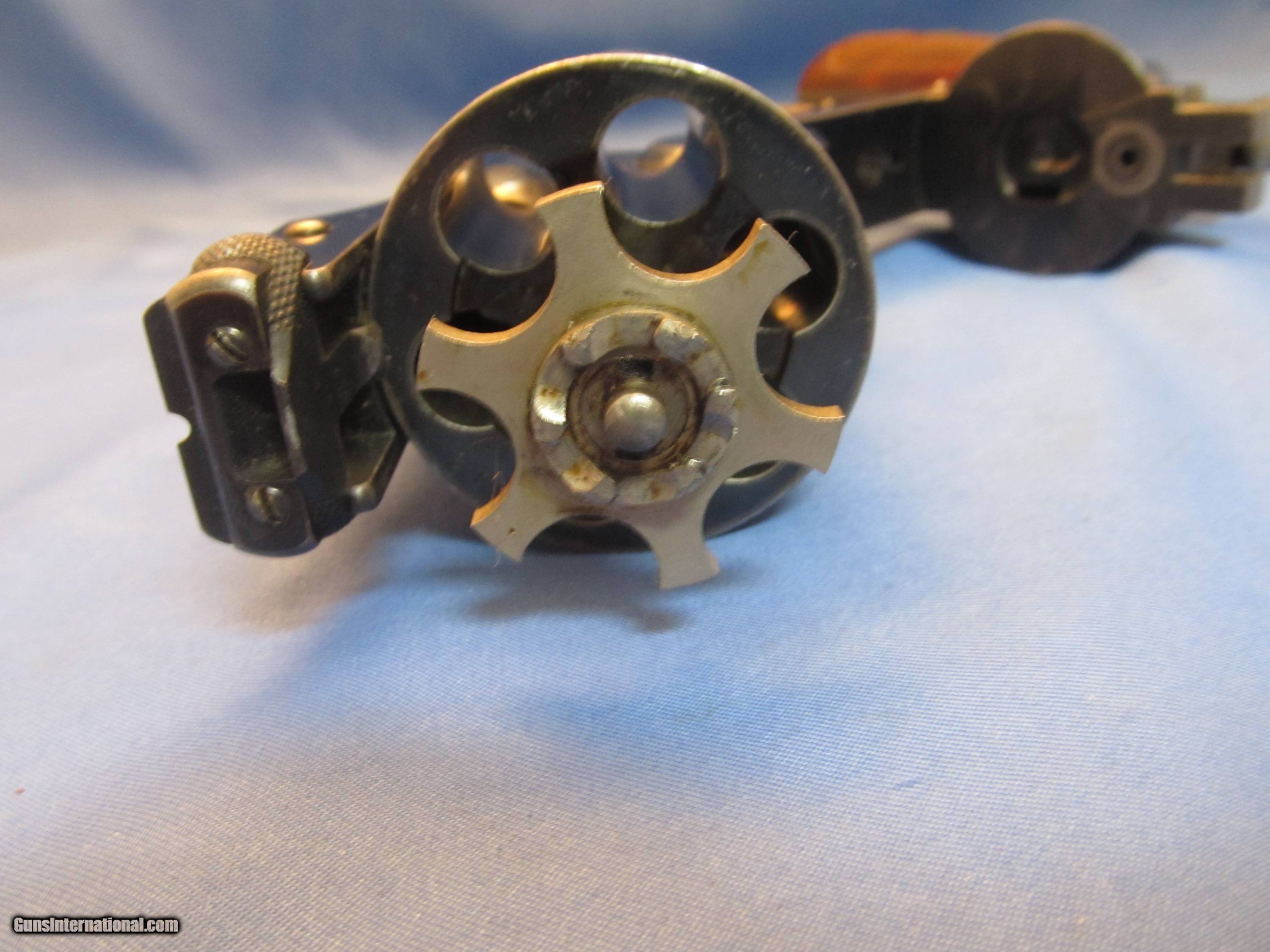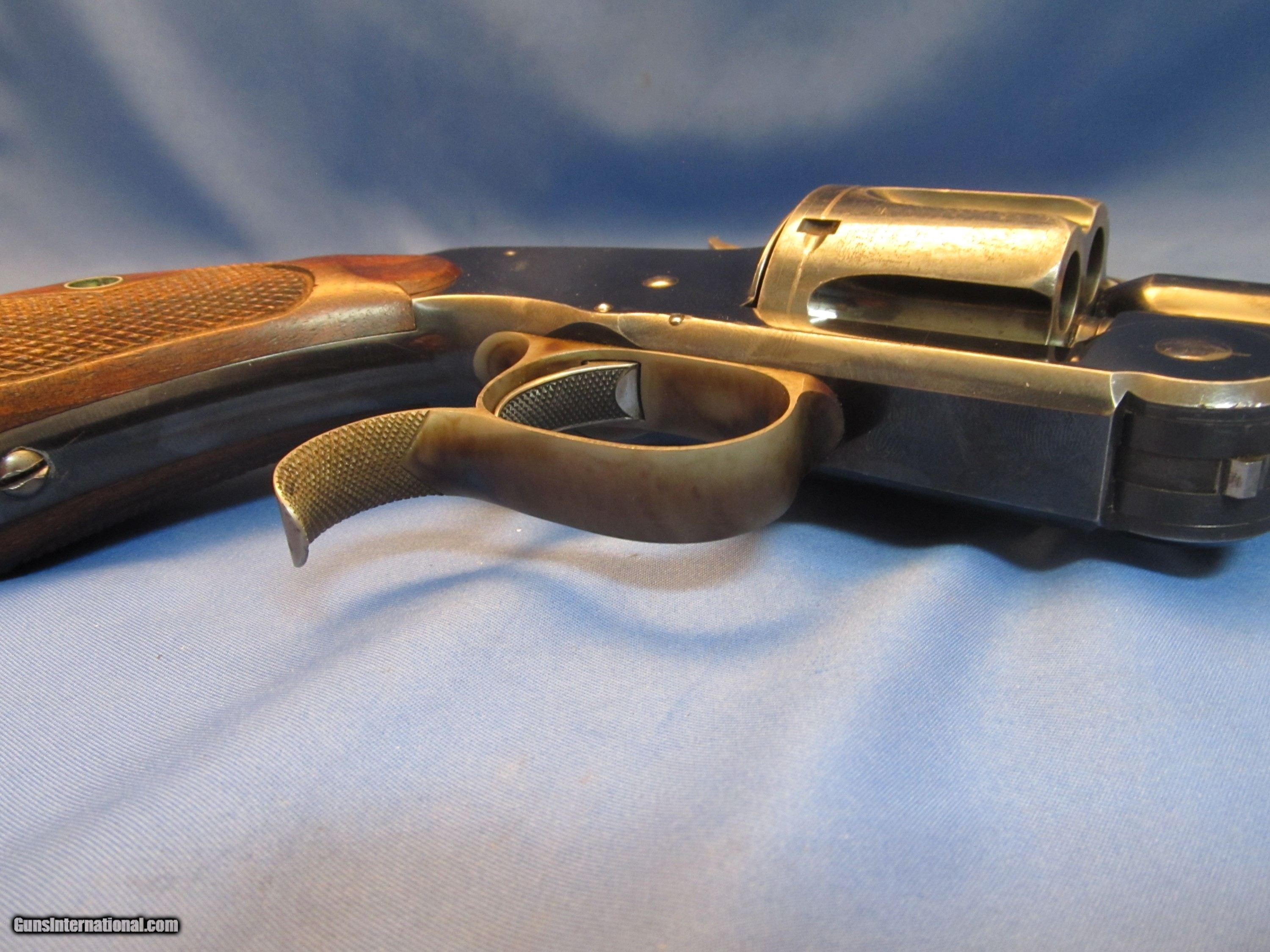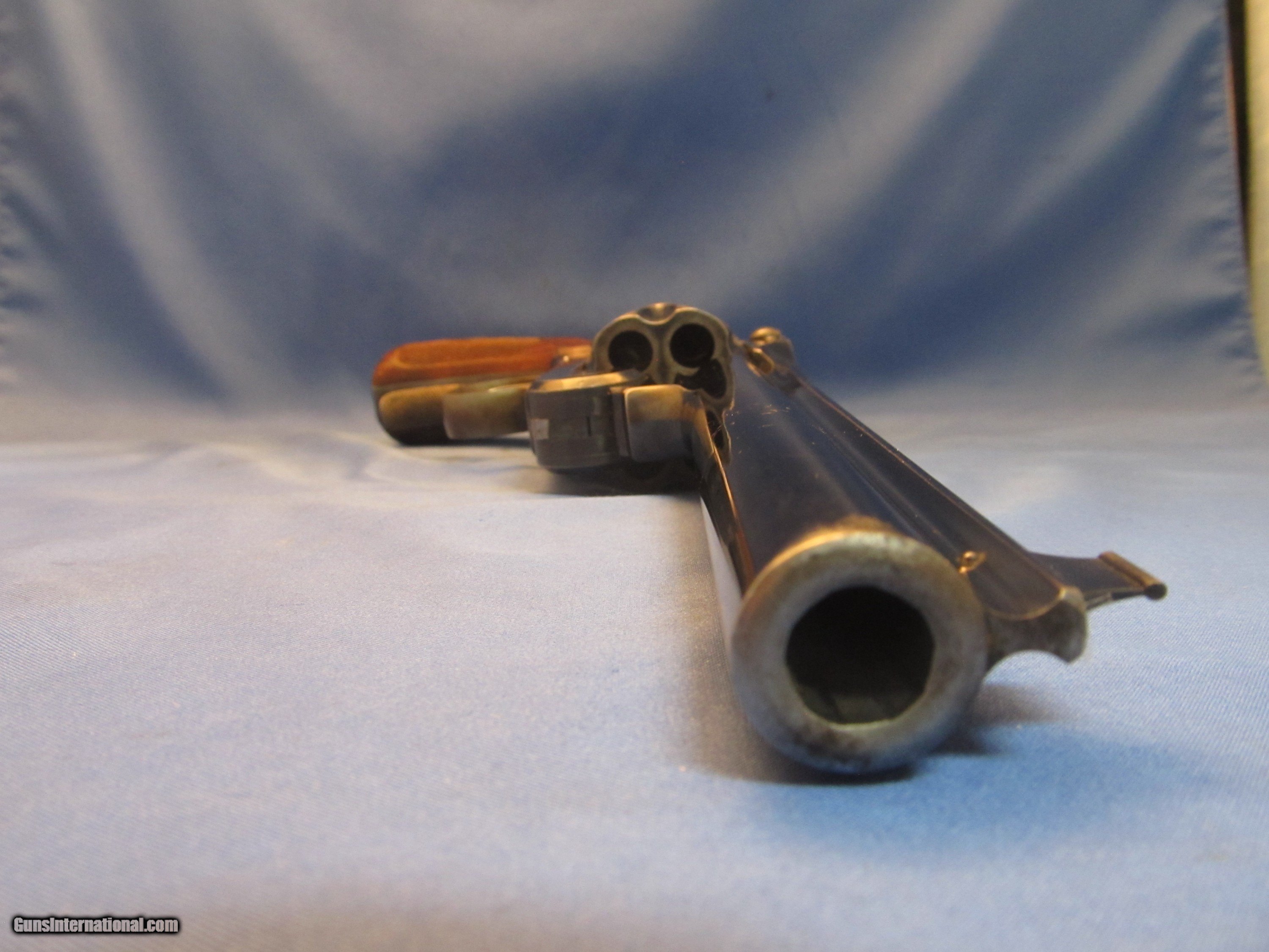 Description: THIS IS A VERY RARE AND EXCELLENT SPECIMEN OF AN ANTIQUE SMITH & WESSON NEW MODEL NO.3 TARGET SINGLE ACTION 6-SHOT 6-1/2” REVOLVER IN 38-44 CALIBER IT IS THE BEST VERSION OF A NO.3 THAT I HAVE EVER COME ACROSS IN 43 YEARS OF SELLING GUNS AND THE ONLY TARGET VERSION THE SERIAL NUMBER IS "618" SO VERY EARLY PRODUCTION THE BORE OF THE 6-1/2" BARREL IS ASTOUNDINGLY BRIGHT, SHINY, EXCELLENT AND RIFLING BETTER THAN 98% THE BLUE FINISH IS MOSTLY WORN ON THE CYLINDER AND RIGHT AT THE MUZZLE THE WOOD GRIPS ARE IN EXCELLENT SHAPE FRONT RAMP SIGHT AND REAR GROOVE SHE COCKS, CLICKS AND SLAMS LIKE SHE SHOULD AS SHOWN IN THESES MANY CLOSE UP PHOTOS WITH NOTHING ELSE UNDERSTAND THAT WE WILL PUT A SIGNATURE ON THE PACKAGE SO IT WON'T GET LEFT ON A PORCH BUYER PAYS A FIXED AMOUNT OF 35.00 INSURED SHIPPING TO THE LOWER MAINLAND STATES, ALASKA, HAWAII OR PUERTO NO SHIPMENTS OUTSIDE THE USA. MISSOURI RESIDENTS DO PAY A 8.575% SALES TAX. NO EXTRA CHARGE FOR CREDIT CARDS BRANDON'S GUN TRADING CO LLC 321 EAST 20TH ST JOPLIN MO. 64804 (417)-623-8787 FAX (417)-623-2326 9-5 TUESDAY-SATURDAY CENTRAL TIME WE ARE ALSO CLOSED THE 1'ST SATURDAY OF EVERY MONTH AND HOLIDAYS. OUR INVENTORY REFERENCE: CONSIGNMENT PLEASE NOTE, UPS SERVICE HAS GOTTEN SO BAD UNDER CURRENT MANAGEMENT THAT WE WON’T SHIP UPS UNLESS WE ABSOLUTELY HAVE TOO. WHEN WE DOUBLE PACK, INSURE, ADD SIGNATURE, USE GOOD BOXES AND UPS EVEN NOTES THEY DAMAGED THE ITEM AND THEY STILL WON'T PAY. ALSO, ANY INSURANCE WE DO PUT ON OUR PACKAGES IS VOID IF YOU OR YOUR DEALER THROWS AWAY THE BOX, ANY PACKING MATERIALS OR FAILS TO PICTURE AND NOTIFY US AND THE SHIPPING COMPANY IMMEDIATELY SOLD Antique: Yes Manufacturer: S&W Model: NEW MODEL NO. 3 TARGET Serial Number: 618 Barrel Length: 6 Condition: VERY GOOD Wood Condition: EXCELLENT Bore Condition: EXCELLENT Finish: BLUE Manufacture Date: PRE 1898 Item Location: Missouri |