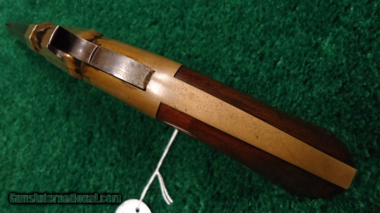 Description: 41 cal. Scarce 6" bbl. Typical 3-line bbl address which is always faint on the top. Very nice bore with orig sights include a fixed v-knotched rear sight and a pinched style fine blade front sight. Orig walnut grips in good cond with most finish remaining. Mechanics are VG+. All matching numbers. Bbl retains about 90% orig blue starting to tone slightly. Sharp corners. Correct follower and spring. Receiver has turned a dark brass patina. An interesting engraving on one side plate shows an arm raised in the air with a dagger in it. A family crest perhaps? A very fine orig gun with all matching numbers. Case colors turning dark on the hammer. Leroy Merz Antique Firearms specializes in antique and vintage Winchesters and other fine American firearms. Since 1965 Mr. Merz has taken part in the world of firearms and has been a contributor to many well known reference books. Just recently we mailed the 124th edition of our privately-published catalog. We have hundreds of additional guns in every price range at our home online. Search for Merz Antiques in google. SOLD Antique: Yes |