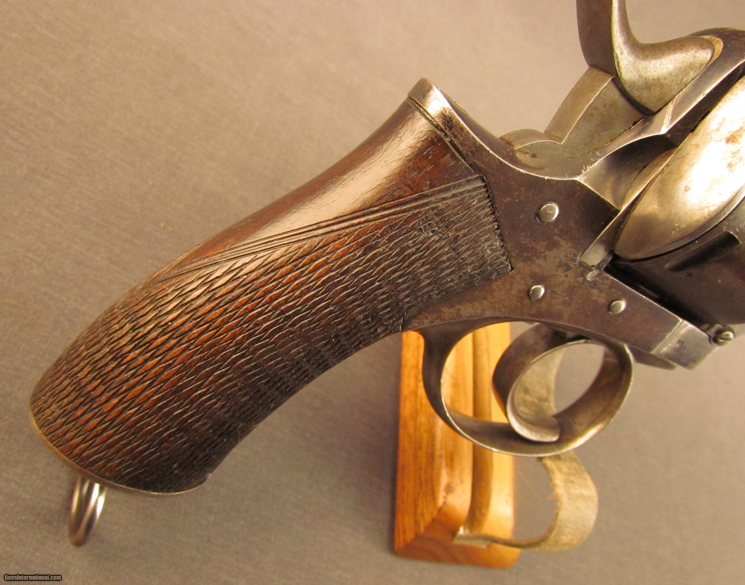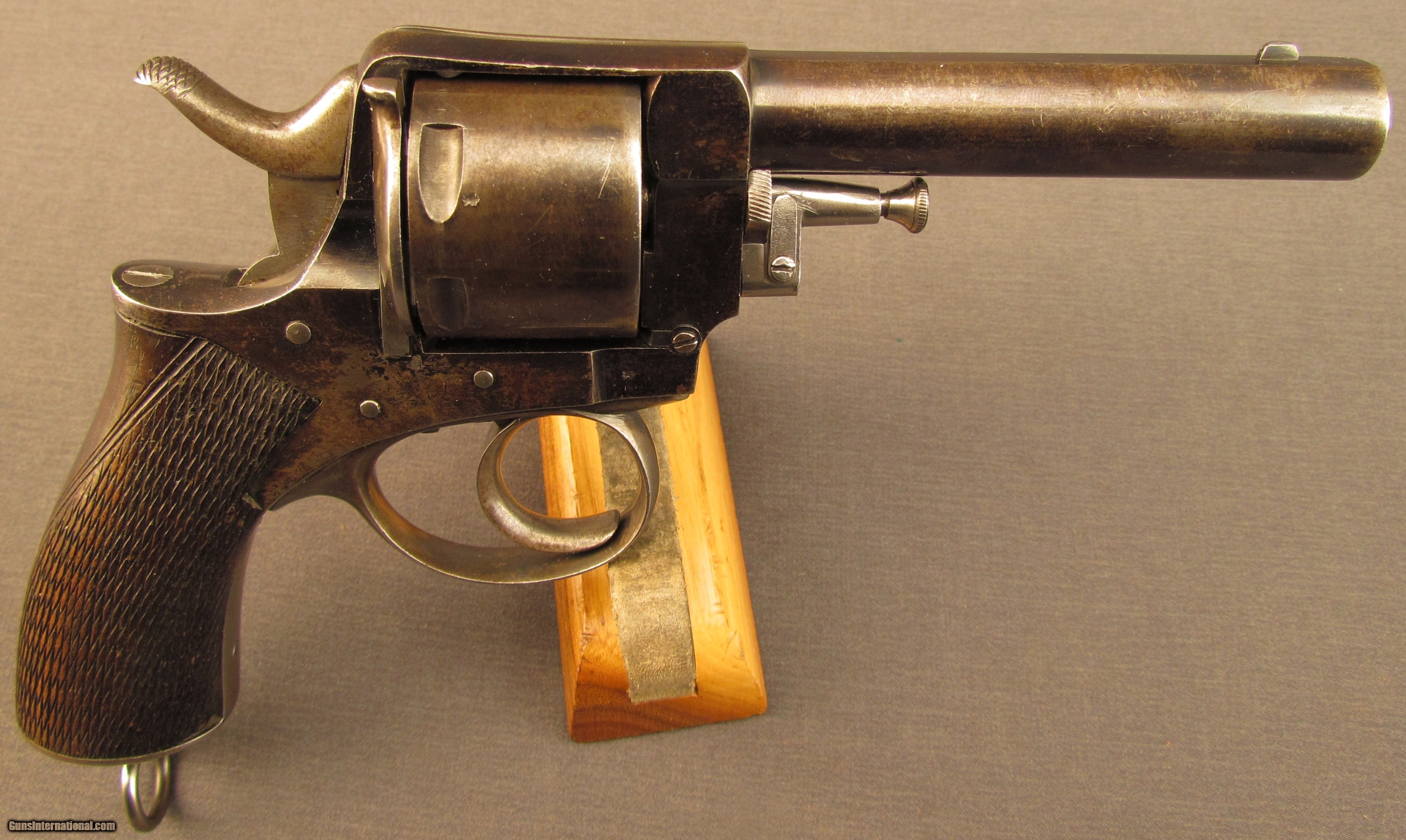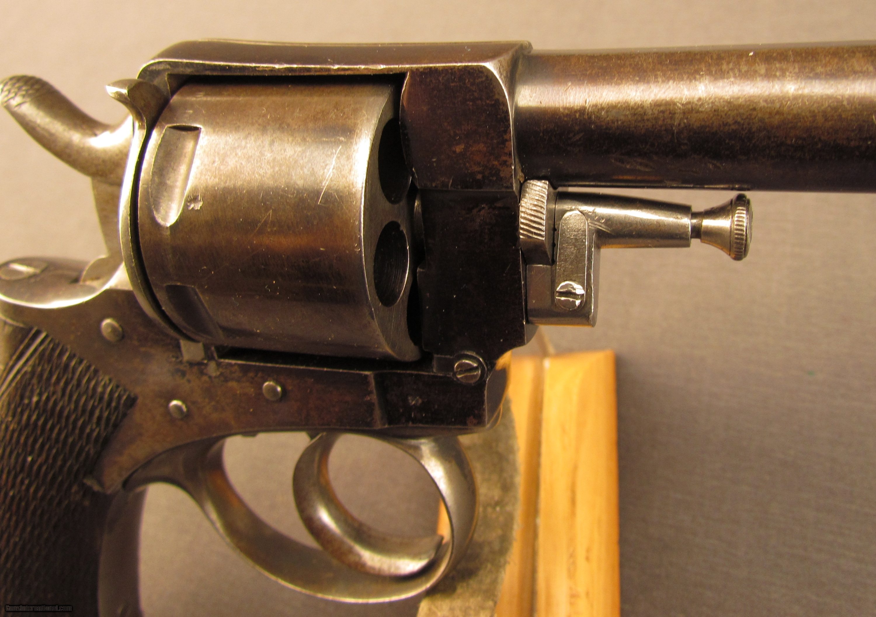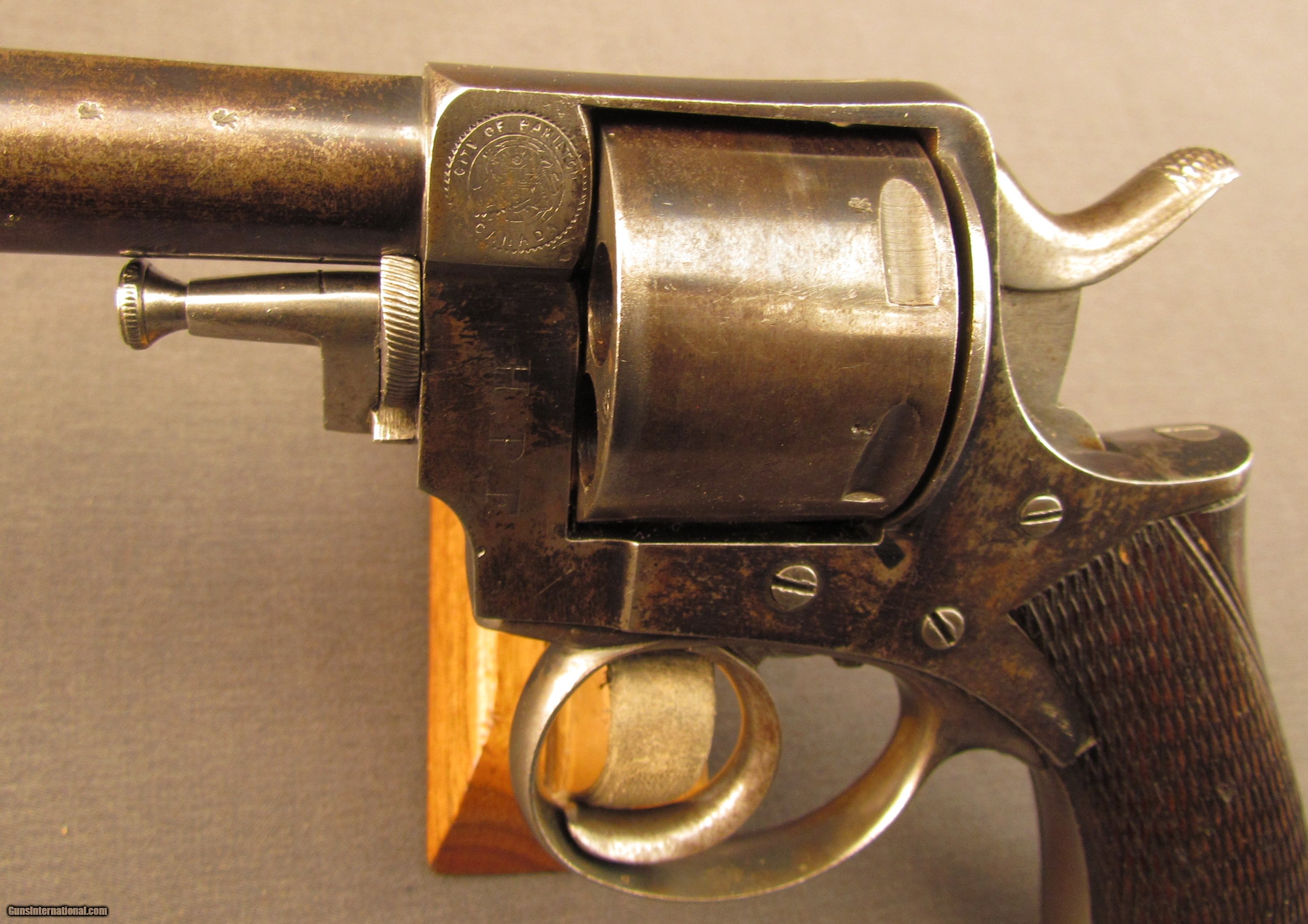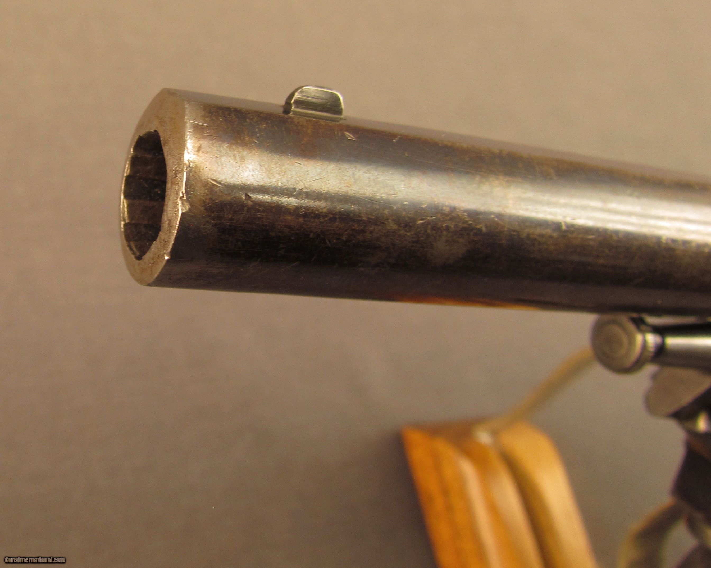 Description: A very scarce RICX type Police marked Revovler. This piece shows the city of Hamilton Canada City crest on the left side of the frame. In addition it is marked H.P.F. the finish rates as antique. 450 CF bore in the 4 3/8" barrel. The metal rates overall at 75 to 80% bright blue. There is no visible serial number other than 11 stamped twice on the rear cylinder face. The one piece checkered wood grips rate as excellent for reference see page 212 of "Webley Solid Frame Revolvers" by black, Davis and Michaud in the section of the work Ric Copies. This example is one of three Hamilton marked guns that we are aware of . This RIC is probably built from Belgium parts assembled in England a any Hamilton Ric is farscarcer than the Toronto marked RIC Revolvers. It would appear that very few were acquired for the Hamilton Police. It must also be a factor that the population of Hamilton in 1877 was very small compared to Toronto. There were only 32,641 residents of Hamilton in that year. This revolver is very scarce if not rare. An item for the Police, Ric or Webley Collector. SOLD Antique: Yes Manufacturer: Webley Model: RIC |