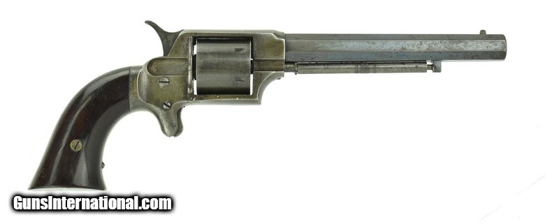 Description: Wm Uhlinger Pocket .32 Rimfire Revolver. Barrel length 5 7/8”. Manufactured 1861-1865. Uhlinger marketed the revolver under several trade names such as Cone, W.L. Grant, J.P. Lower. Bore is good with good rifling and some corrosion in the grooves. Action works perfectly. Gun has approximately 50% to 60% blue. Grips are rosewood and are excellent with 98% original factory varnish. These revolvers were infringement on Smith & Wessons’ Rollin White Patent.