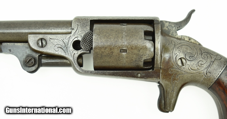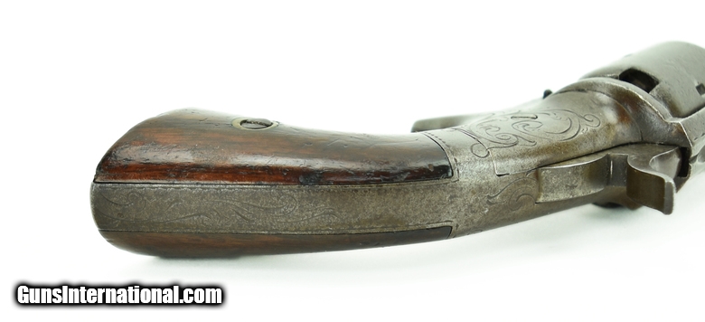 Description: Bacon Arms Pocket Model. Made mid 1860’s. Very unique gun with an unusual cylinder system. The cylinder was removed by sliding the knurled piece which is attached to the cylinder pin. Action works great. .31 caliber. Gun is completely unmarked. Very hard to find gun. SOLD Antique: Yes |