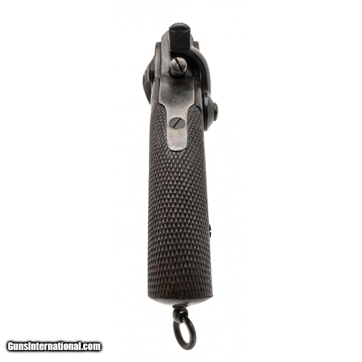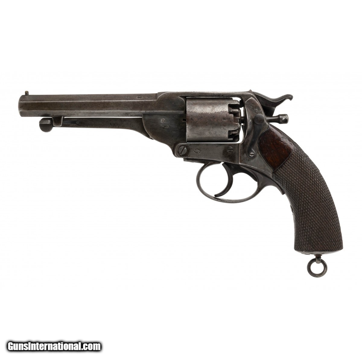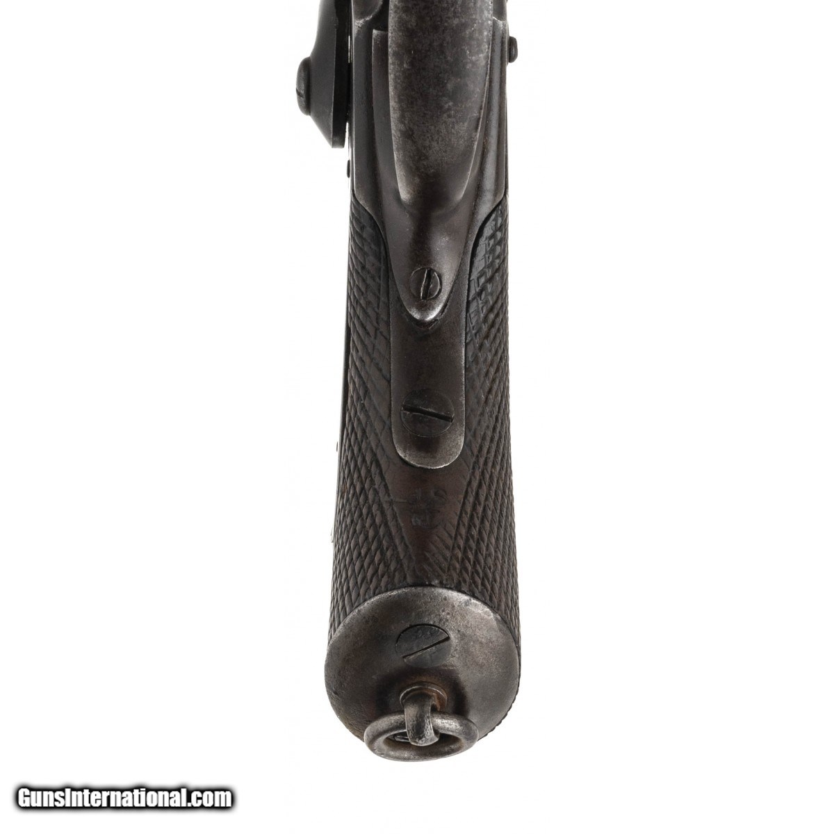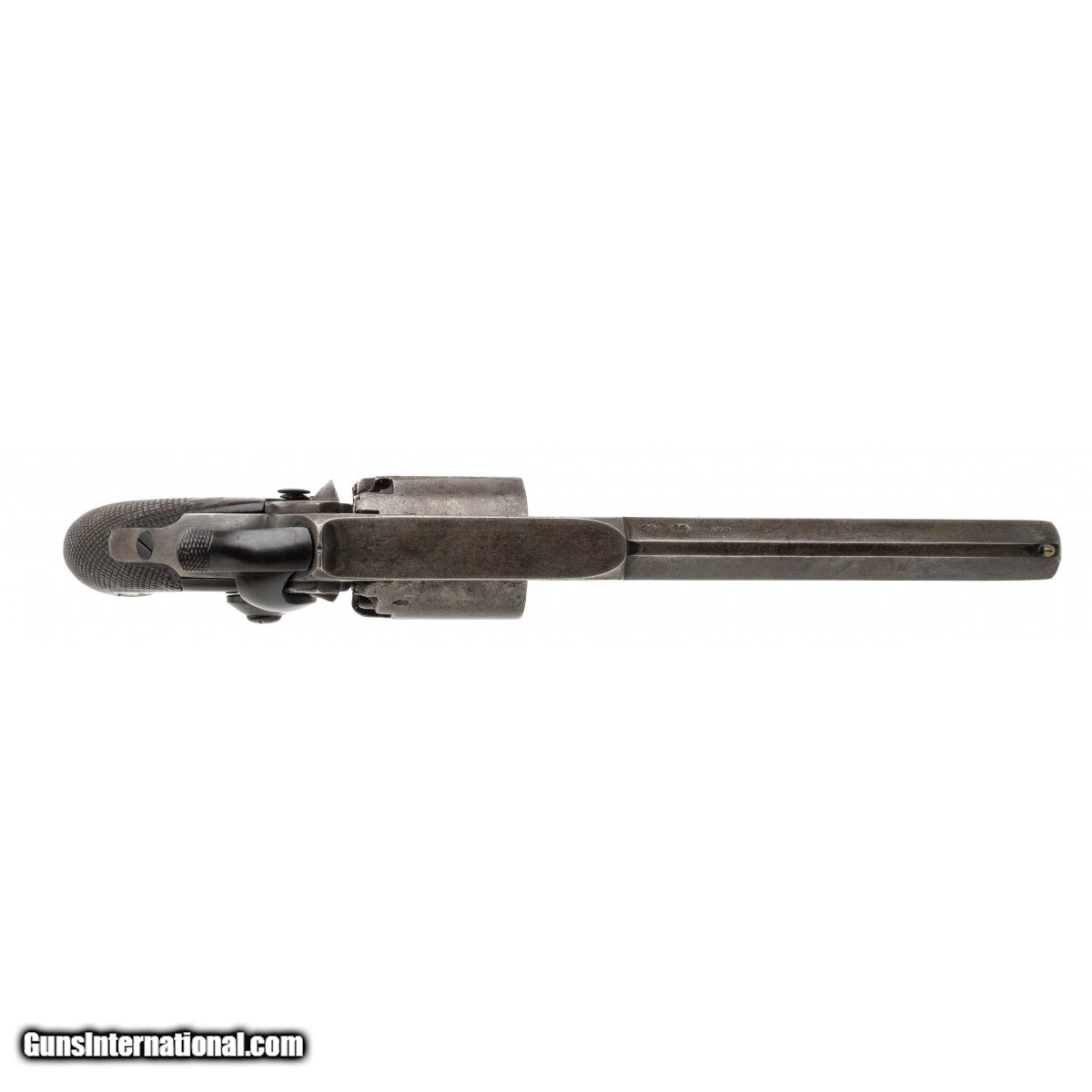 Description: "Serial No. 3691, circa 1863, .45 caliber, 5.75"" octagonal barrel. Barrel is marked ""L.A.C./ British Proof marks. Frame is marked ""Kerr's Patent 3691, lower left is marked ""London Armoury"". Left side is marked ""London/Armoury"" Finish is grey patina with traces of blue visible mostly in protected areas. Serial numbers are non0-matching. Brown wooden checkered grips are in good condition with light handling marks noted. ""JS/Anchor is stamped in between trigger guard and cap. Action does have play when indexes. Consignment SOLD Antique: Yes |