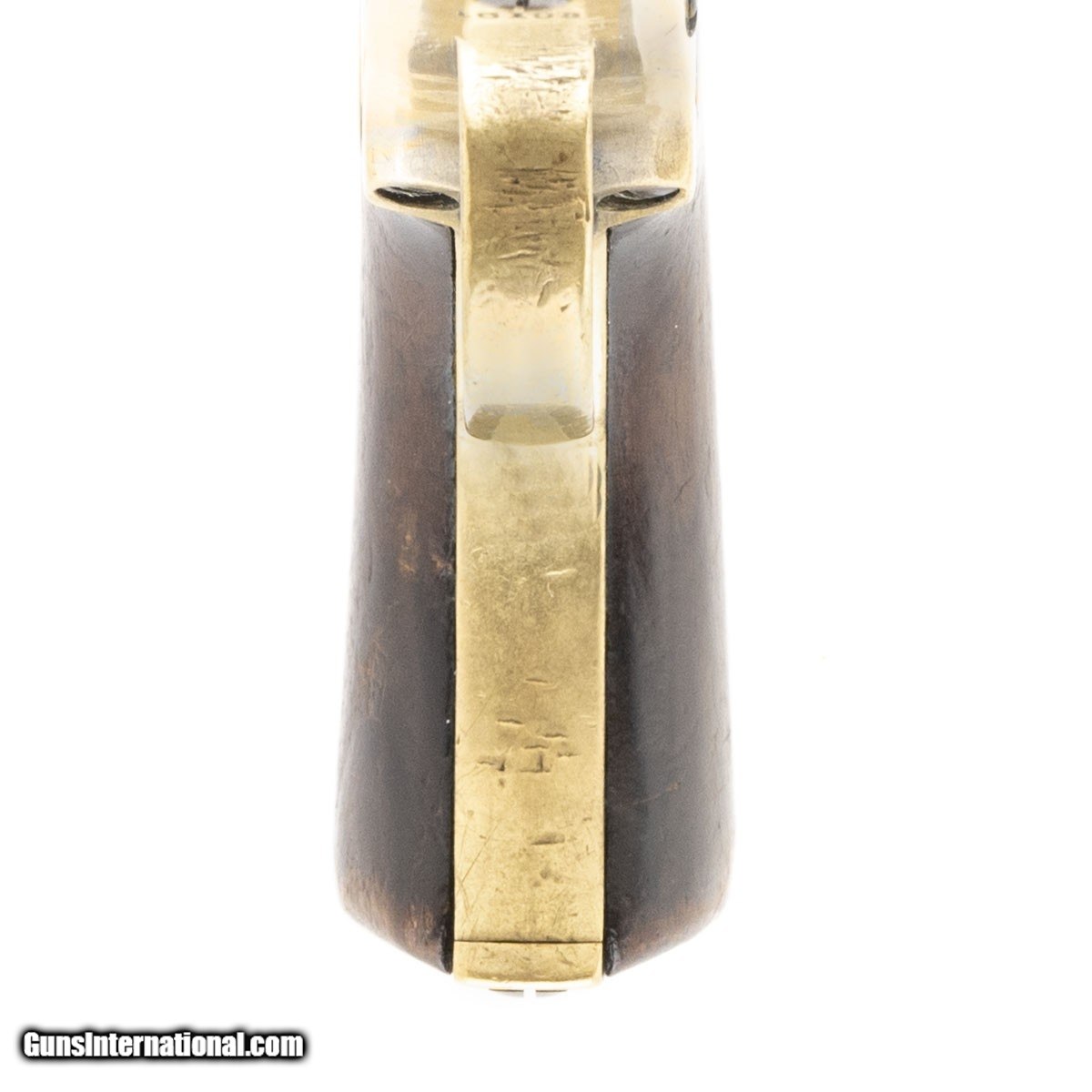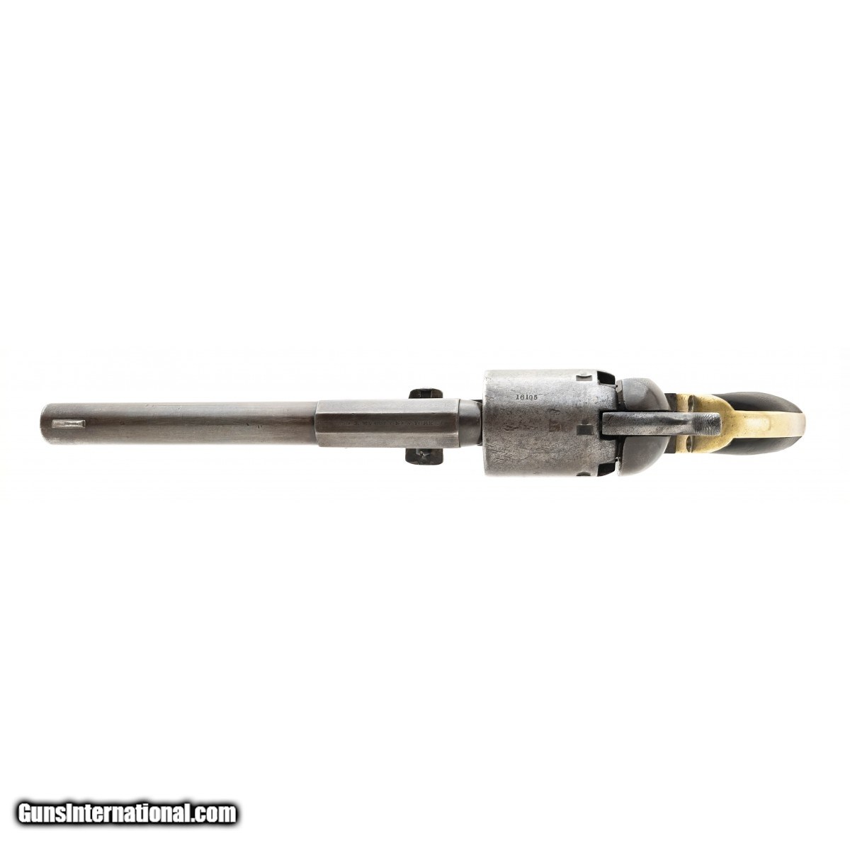 Description: "Serial Number 16105. Made in 1856. 44 caliber with a 7 ½" barrel. Metal has been cleaned and has a light brown to gray patina. Numbers all match. Grips are very good with a visible cartouche. Action works well. This is a honest example of a Martial Colt 3rd Model Dragoon! SOLD Antique: Yes |