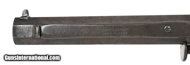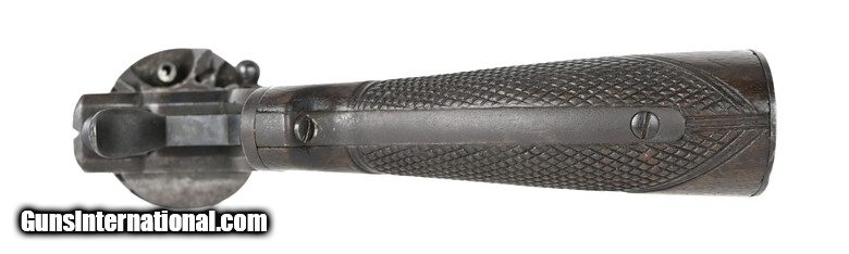 Description: " Mass. Arms Co. Adams Patent Revolver. Circa 1859. Barrel length is 6". .36 Caliber. Appears to be martially marked. Adams sold to the U.S. Government. There is a “C" on the left side of barrel near the rammer, and an “A" on the cylinder. Grips have no visible cartouches. Action works perfectly. Note: There is no number on the frame. Cylinder has two numbers. Serial numbers are 159, 353. A sharp Mass. Arms Revolver. SOLD Antique: Yes |