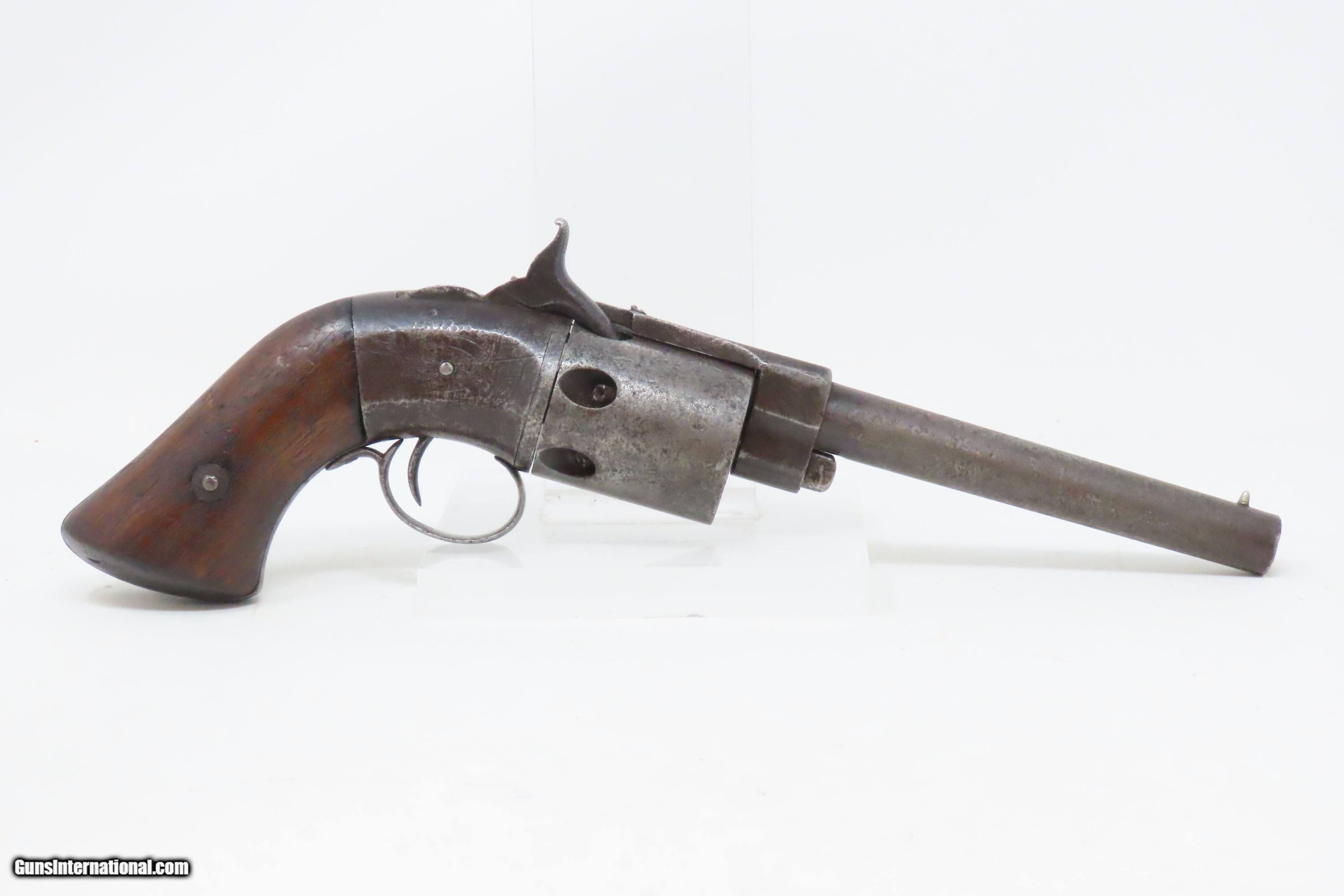 Description: 1 of ONLY 100 Antique SPRINGFIELD ARMS Co Warner Patent Revolver BELT MODEL ENGRAVED and Pre-CIVIL WAR; COLT LAWSUIT Here we present an antique Engraved Springfield Arms Co. Warner Patent Belt Model Percussion Revolver, made circa 1851 in Springfield, Massachusetts. James Warner was granted a patent for this percussion revolver in 1851 while he was working as the chief designer for the Springfield Arms Company. It was with this revolver that Warner had his first conflict with a patent infringement lawsuit in a case brought against him by Samuel Colt and the Colt Patent Firearms Mfg. Company. The end result of the suit was that Warner and Springfield Arms were forced to stop manufacturing percussion revolvers whose mechanisms rotated the cylinder as part of the cocking action of the hammer. At the same time Colt was pursuing Warner and the Springfield Arms Company, he was also pursuing the Massachusetts Arms Company. Colt won that suit as well and Mass Arms temporarily adopted the use of Dr. Edward Maynard’s automatic tape priming system in an attempt to circumvent Colt’s patent protections. Springfield Arms Company manufacture an estimated 100 of these scarce Warner Patent Belt Model revolvers in 1851 before the firm ceased production after litigation from Colt for patent infringement brought production to an end. Surviving examples of this limited production percussion revolver in any condition are extremely scarce. Colt’s revolver patent would haunt Warner until its expiration in 1857, limiting the features that could be included in the revolving firearms that he produced both with Springfield Arms and on his own. With the 1857 expiration of the patent, Warner started to produce a small frame, 6-shot percussion revolver that would be his most successful firearm. This 1st Model was a .28 caliber single action revolver with only about 500 examples produced prior to the introduction of the 2nd Model, 1st Variant, also in .28 caliber. It wasn’t until the 2nd Model, 2nd Variant that the .31 caliber was introduced. This final version would be produced through the late 1860s with somewhere around 9,000 guns being produced. At the end of the Civil War, Warner attempted to move forward manufacturing revolvers with metallic cartridge designs. He introduced a cartridge version of this revolver, but again ran into trouble with another previously held patent. This time it was the Rollin White patent for the bored through cylinder, held by Smith & Wesson. As with the earlier Colt lawsuit, Warner lost a was forced to pay royalties to Smith & Wesson and to mark all revolvers on hand and produced after the conclusion of the suit with the Smith & Wesson patent. The overall condition is good. Even patina throughout. The action is strong. The bore is dim with good rifling. The walnut grips are solid. Own the original! This is a legitimate antique and not a reproduction. Barrel is 5 inches. Caliber: .31 Percussion Overall condition as seen in photos. Very Fast. Very Safe. FREE SHIPPING WORLDWIDE. Delivered directly to your door by express mail! Guaranteed AUTHENTIC & Includes CERTIFICATE OF AUTHENTICITY. ancestryguns $1800 #233169 SOLD Antique: Yes |