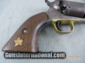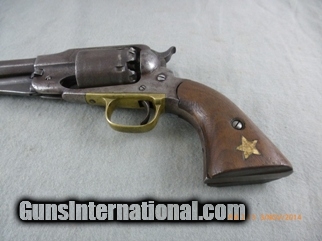 Description: 14-130 REMINGTON NEW MODEL ARMY PERCUSSION CIVIL WAR REVOLVER Remington New Model Army Percussion Civil War Revolver, 44 cal., 6-shot 8” Bbl. Serial # 27673 on BBL and Frame. Standard Markings “Patented Sept 14, 1858/E Remington & Sons Lion New York, USA/ New Model”, has military inspector’s markings on various parts. The bore is shinny with most of rifling and minor corrosion; cylinder chambers are clean. Action works well and locks up tight when cocked. Metal is clean with a few lightly patches of corrosion. Walnut grips fit, someone back in the day inlaid little brass stars in the grips. Overall a nice VG original antique Civil War Era Rem. Army suitable for collector/shooter.(14-130) $1,300.00 I take Visa/MasterCard, add 3%. Allow two weeks for all checks, whether bank, personal or certified to clear. It is also possible to wire funds to my account for instant credit for a $20.00 wire charge. 3 day- no questions asked return period for refund of price paid for gun. (not including shipping or credit card charges.)Call or email with any questions or for more pictures. Guns are antique and should not be fired without examination by gunsmith. $50 shipping for long guns, $30 for hand guns to lower 48 states, about $50-$75 to most European countries and $70-$80 to Australia for antique handguns, carbines $75-$125. We can generally get insurance if you want through shipper but coverage is limited. Notify me if you want it. You can send 20% down- balance in 90 days for installment payment plan. No refunds on installment plans. I have shipped to Norway (long gun w/fragile stock) see feedback, England (Winchester1876, Rem. Dbl. Derr.), Northern Ireland, France, Australia and Sweden. Email if you are not U.S. for estimated shipping costs, payment methods, etc. I am always buying and trading for antique and collectible guns, Indian items, rare ammo,etc. Email what you have got for sale or trade. SOLD Antique: Yes |