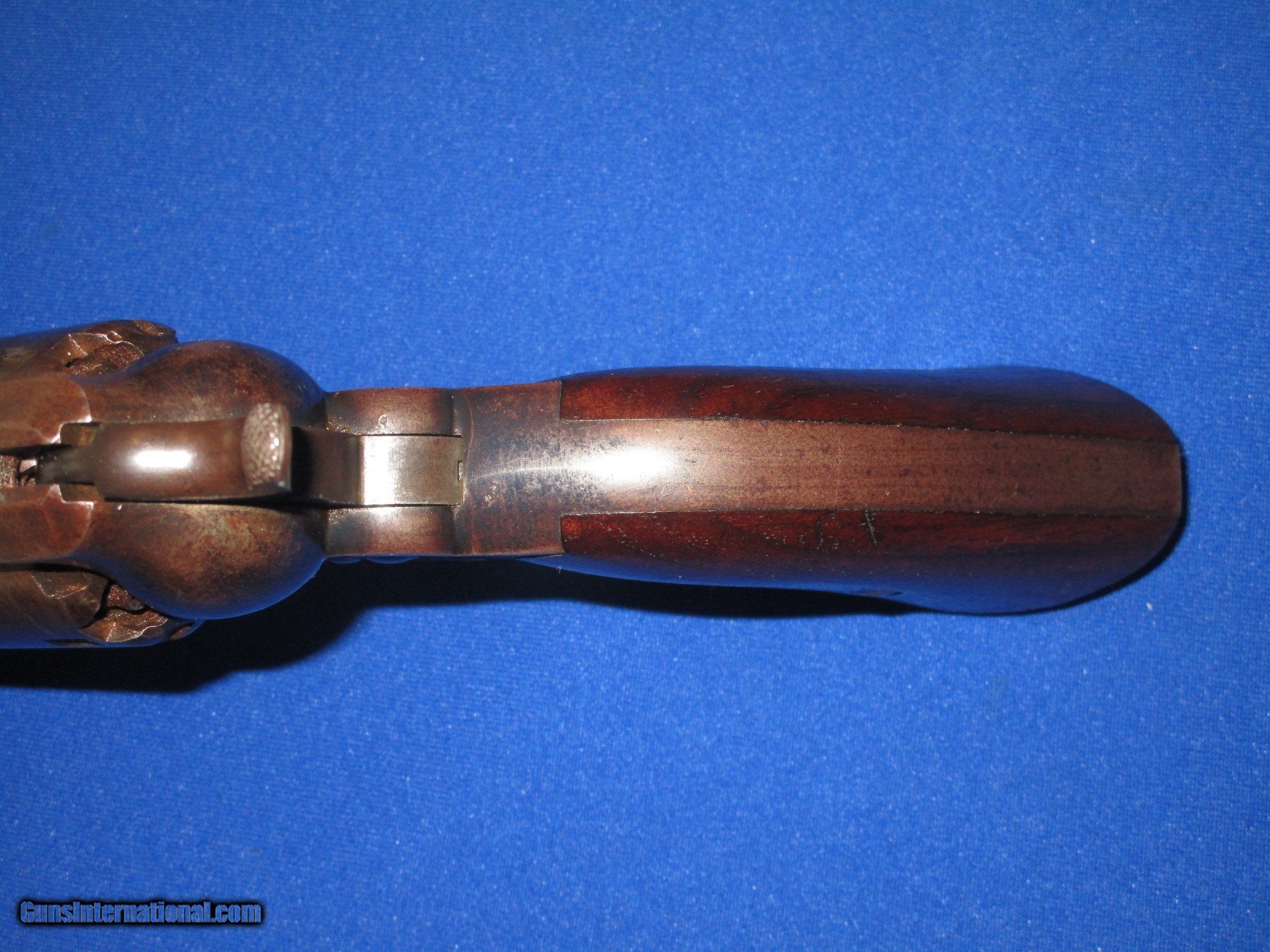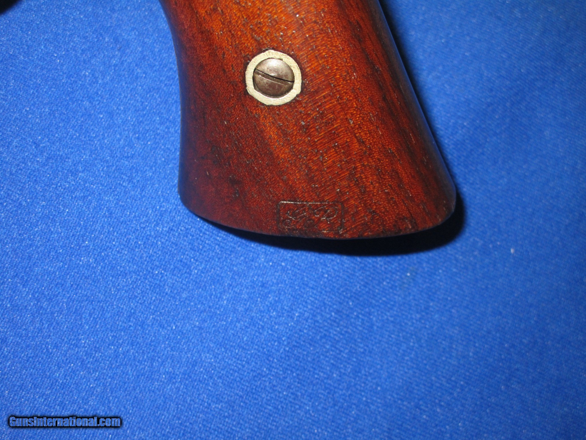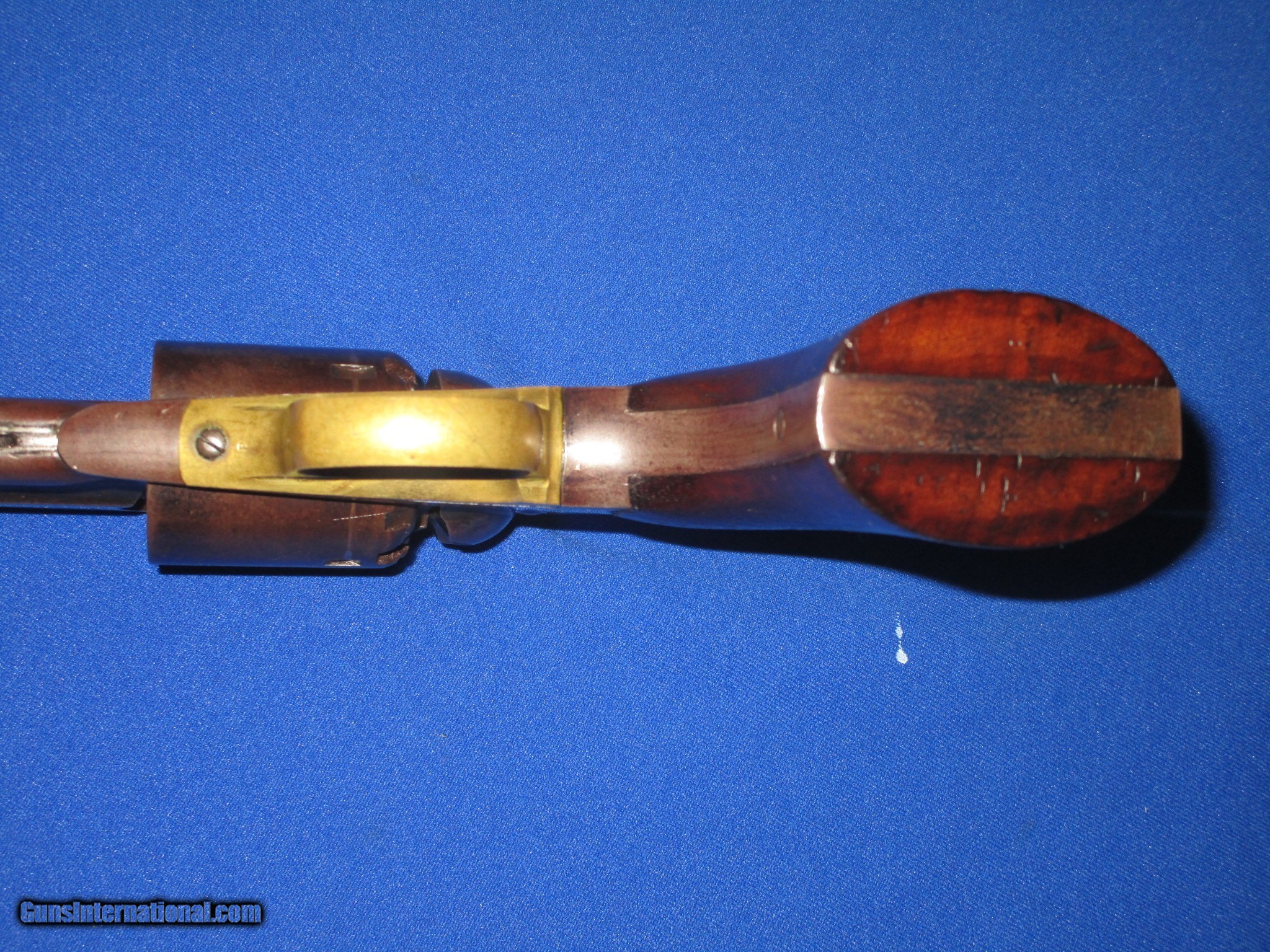 Description: A CIVIL WAR U.S. MILITARY ISSUED REMINGTON NEW MODEL 1858 PERCUSSION ARMY REVOLVER IN FINE UNTOUCHED CONDITION. SERIAL #93,265. ALL MATCHING NUMBERS, ALL ORIGINAL & COMPLETE. THE REVOLVER HAS FINE PLUS METAL, MARKINGS, & EDGES. IT IS FULLY U.S. SUB INSPECTED ON THE METAL PARTS & BUTT OF GRIPS. ALL OF THE METAL ON THE GUN HAS A MIX OF ORIGINAL BLUE & NATURAL PATINA THROUGHOUT IT. ALL SCREWS ARE EXCELLENT WITH ORIGINAL COLOR. THE GRIPS ARE EXCELLENT WITH A VERY CLEAR & CRISP U.S. INSPECTORS CARTOUCHE ON IT.. IT HAS A TIGHT CRISP ACTION & A FINE BORE. THIS IS A VERY FINE CONDITION CIVIL WAR U.S. ISSUED REMINGTON NEW MODEL 1858 PERCUSSION ARMY REVOLVER WITH A WONDERFUL UNTOUCHED LOOK TO IT! SOLD Antique: Yes Manufacturer: REMINGTON Model: NEW MODEL 1858 ARMY REVOLVER Caliber Info: .44 Condition: FINE |