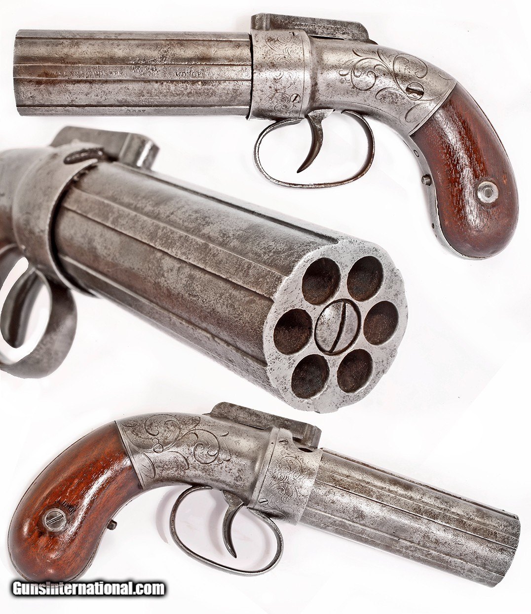 ANTIQUE ALLEN & THURBER 6 SHOT CIVIL WAR PERCUSSION BAR PEPPERBOX .32 CAL. NO FFL.