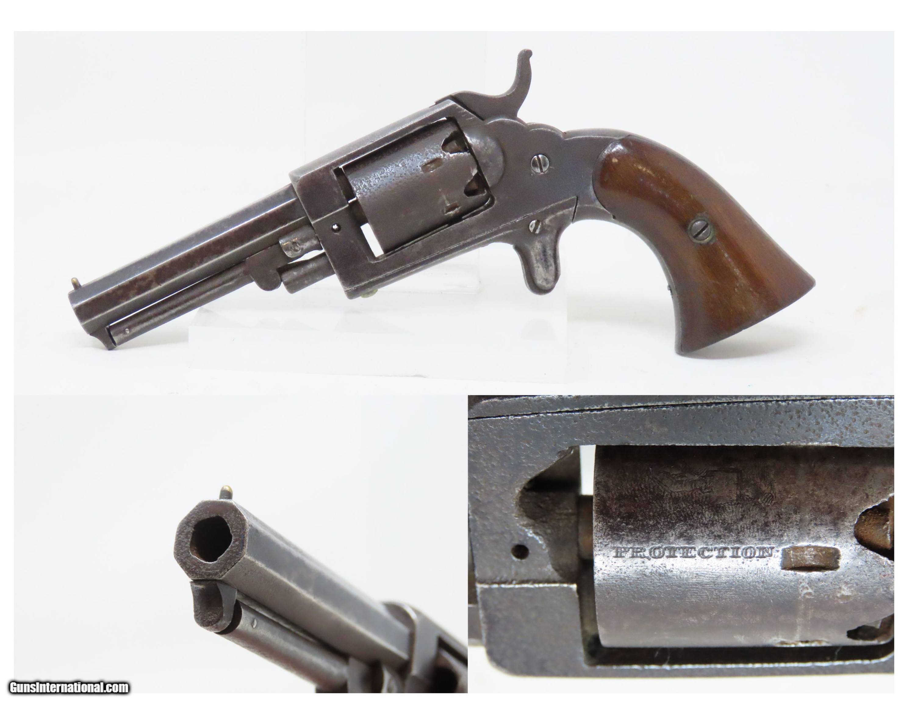 Antique CIVIL WAR Era “PROTECTION” Marked .28 PERCUSSION Pocket Revolver