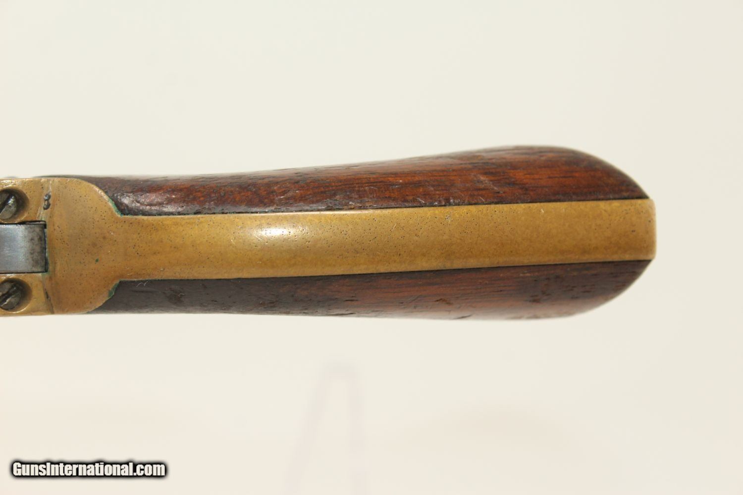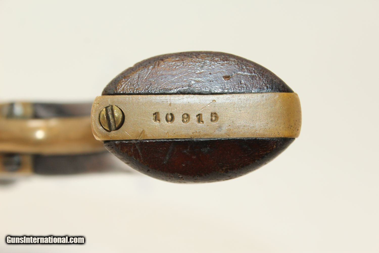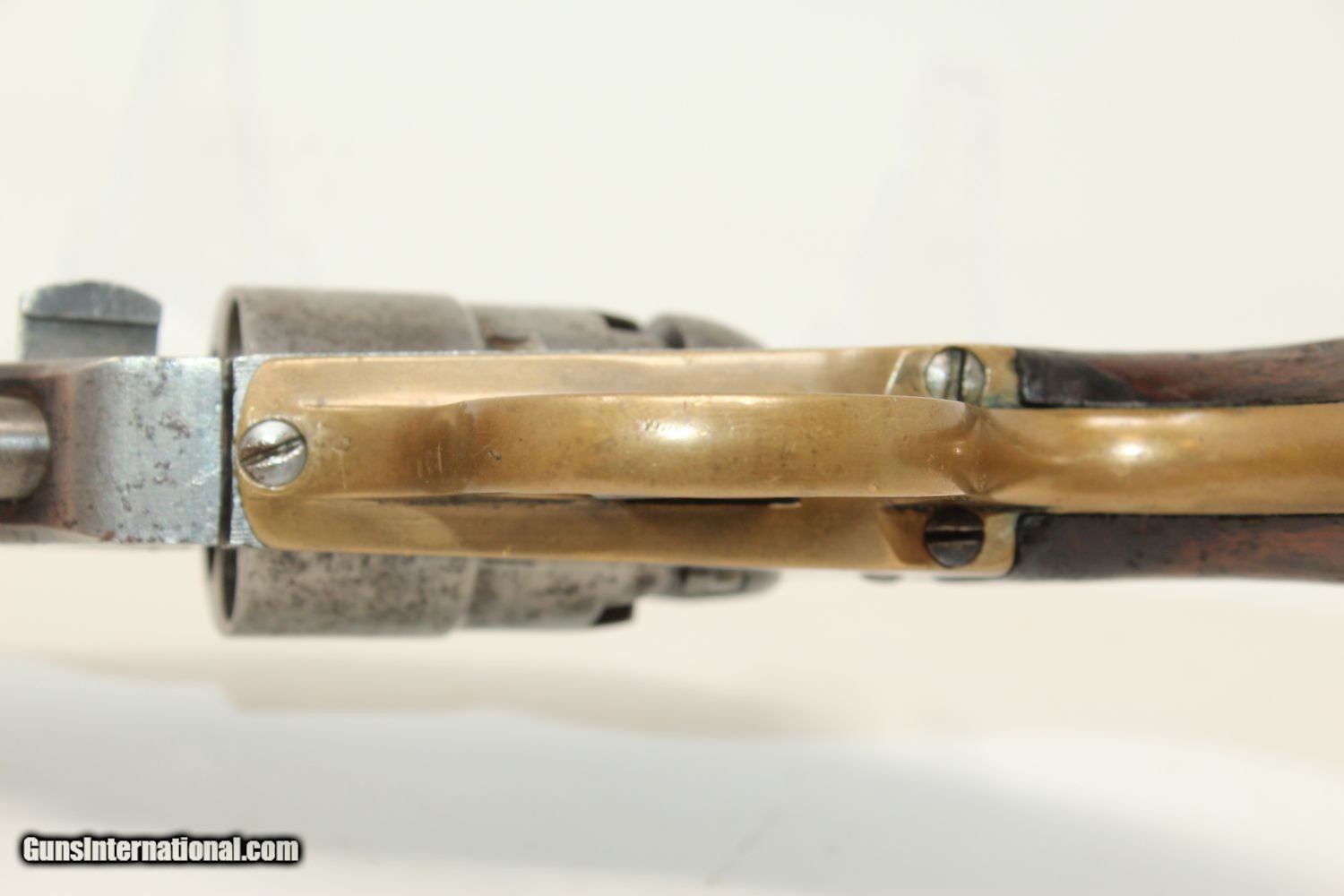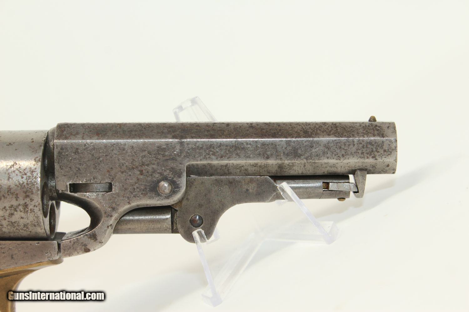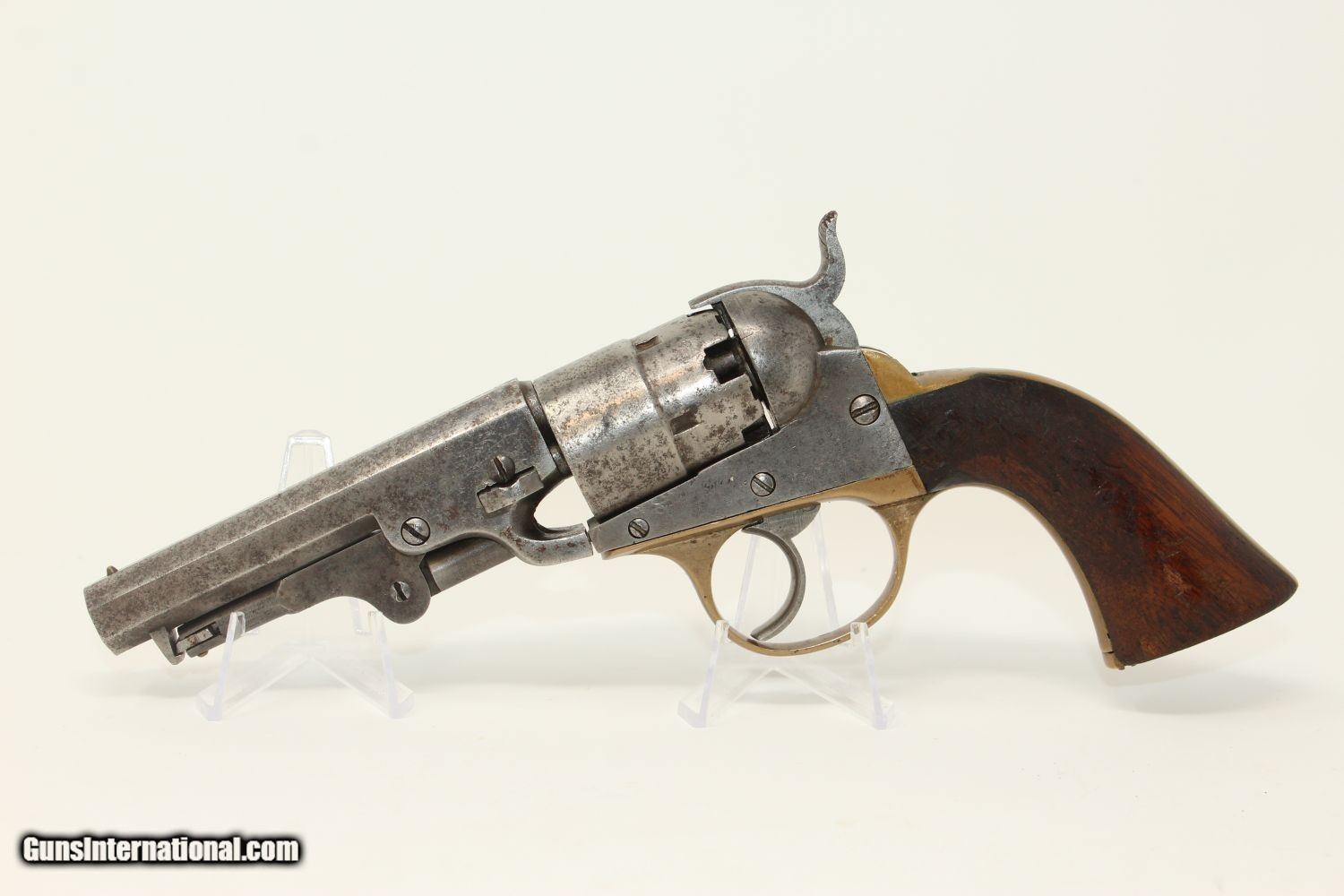 Description: Antique COOPER Double Action NAVY Revolver 1860s Double Action Answer to Colt’s 1849 Pocket! Here we present an antique J.M. Cooper Double Action Navy Revolver, made circa 1867 in Philadelphia, Pennsylvania. During a time of rapid innovation in firearms technology and an insatiable market due to rapid expansion and the American Civil War, dozens of makers seized their opportunity to put their ideas on the market. The J.M. Cooper Double Action Revolver took the concept of the Colt 1849 Pocket Model and improved it by giving it a double action firing mechanism, resulting in their own “Pocket” model. This is an example of a slightly larger, .36 caliber revolver. Only about 15,000 of these Navy caliber Models were made from 1864 to 1869. The overall condition is fair. The iron parts have a light gray patina. The markings are clear. The grips are in good shape. The bore is in very good condition with nice rifling. The forcing cone has been taken down a bit. The action of the revolver is not functional. The hammer is currently locked in place. Own the original! This is a legitimate antique and not a reproduction. Barrel is 4 inches. Caliber: .36 Percussion Overall condition as seen in photos. Very Fast. Very Safe. FREE SHIPPING WORLDWIDE. Delivered directly to your door by express mail! Guaranteed AUTHENTIC & Includes CERTIFICATE OF AUTHENTICITY. ancestryguns $800 #190772 SOLD Antique: Yes |