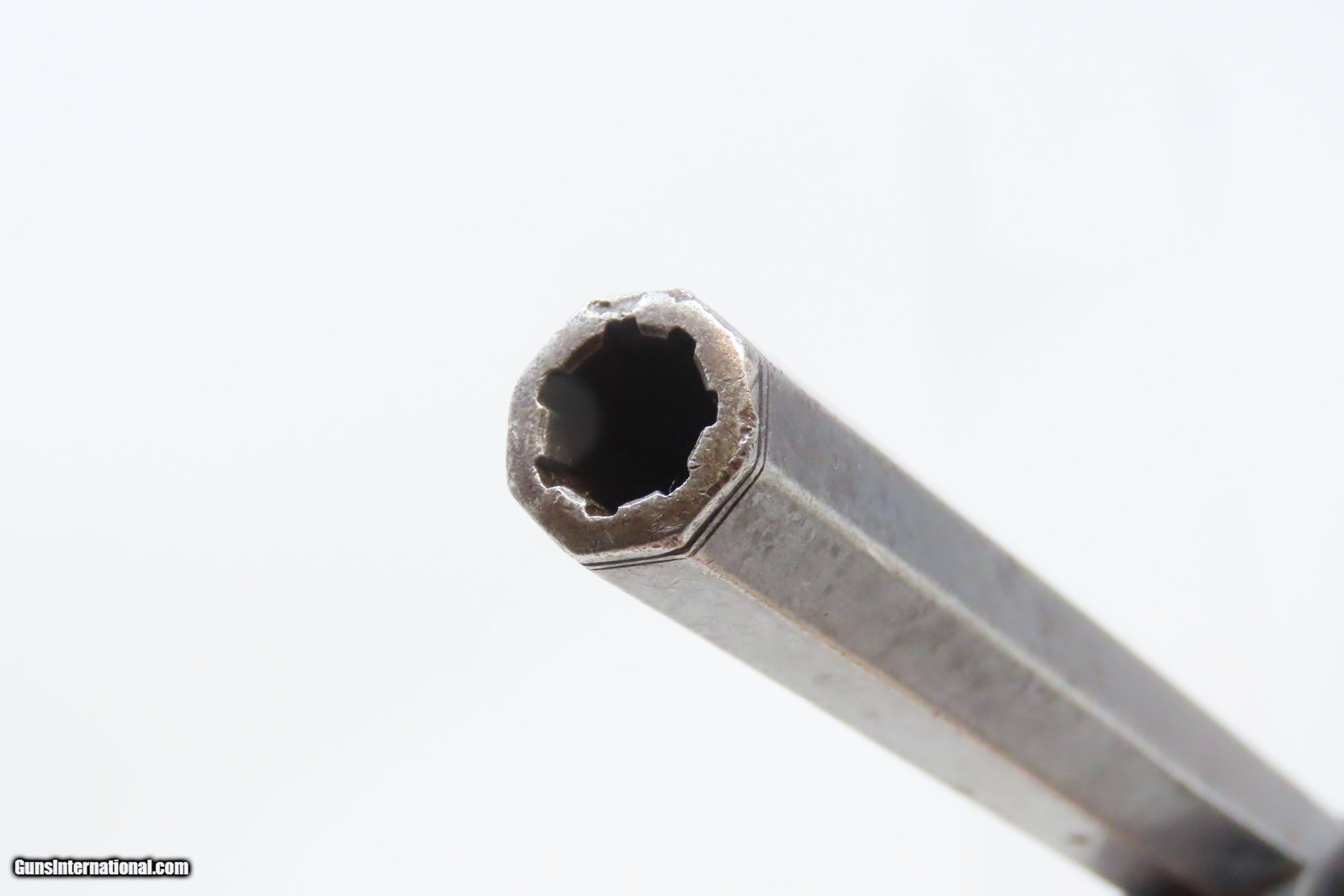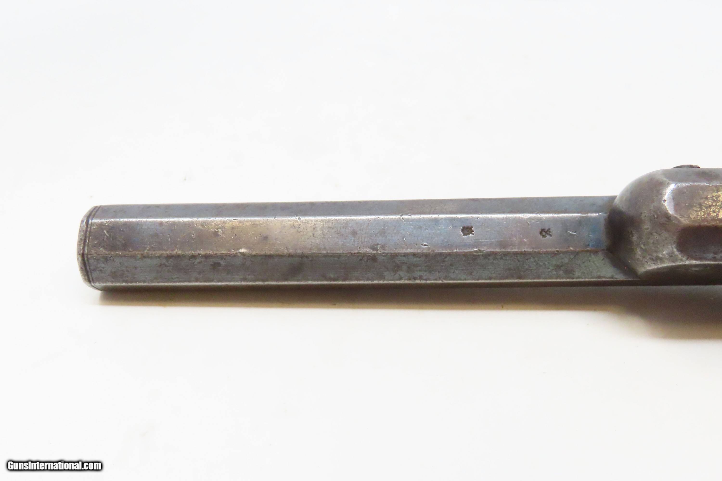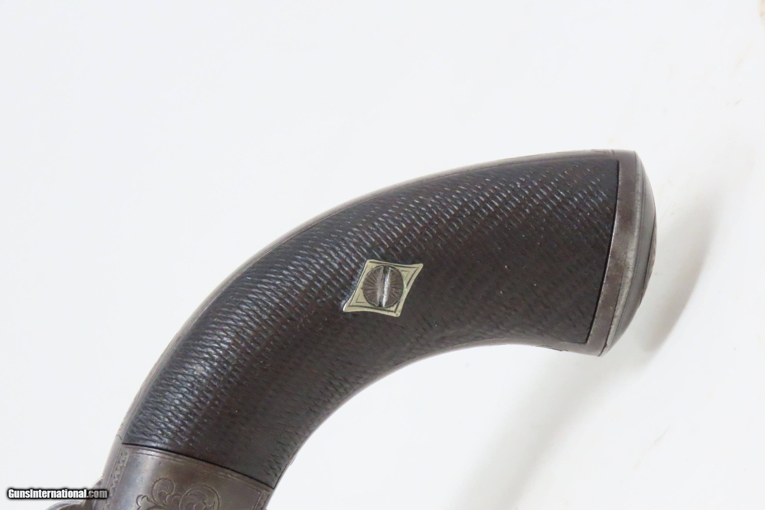 Description: British ENGRAVED Antique BAR HAMMER Transitional .36 PERCUSSION DA Revolver “IMPROVED REVOLVER” Marked Transitional Firearm Here we present an antique English Transitional Bar Hammer Revolver made likely in Birmingham, England circa the late 1840s. Between the invention and patenting of the more “modern” revolvers and their widespread affordable availability, a transitional style of pepperbox self-defense firearm was produced, largely in the United Kingdom. These guns used a barrel cluster truncated into a cylinder and a single rifled barrel affixed to the end of the axis pin. The resulting firearm was rather weak, but one which was accessible and inexpensive, and more accurate than the traditional smoothbore pepperbox revolvers. After Colt’s appearance at the Crystal Palace’s Great Exhibition of 1851, everyone wanted a “revolving pistol”. The English gunmakers attempted to meet this demand without infringing on Colt’s English Patents. Thus, the “Transitional Revolver” came into being. The overall condition is very good. Some original finish is present in low trafficked areas. Strong action. The bore is in good shape for its age. Sharply engraved frame. Both grips are solid with an expected amount of handling. Legible markings. Own the original! This is a legitimate antique and not a reproduction. Barrel is 4-1/2 inches. Caliber: .36 Percussion Overall condition as seen in photos. Very Fast. Very Safe. FREE SHIPPING WORLDWIDE. Delivered directly to your door by express mail! Guaranteed AUTHENTIC & Includes CERTIFICATE OF AUTHENTICITY. ancestryguns $1200 #234051 SOLD Antique: Yes |