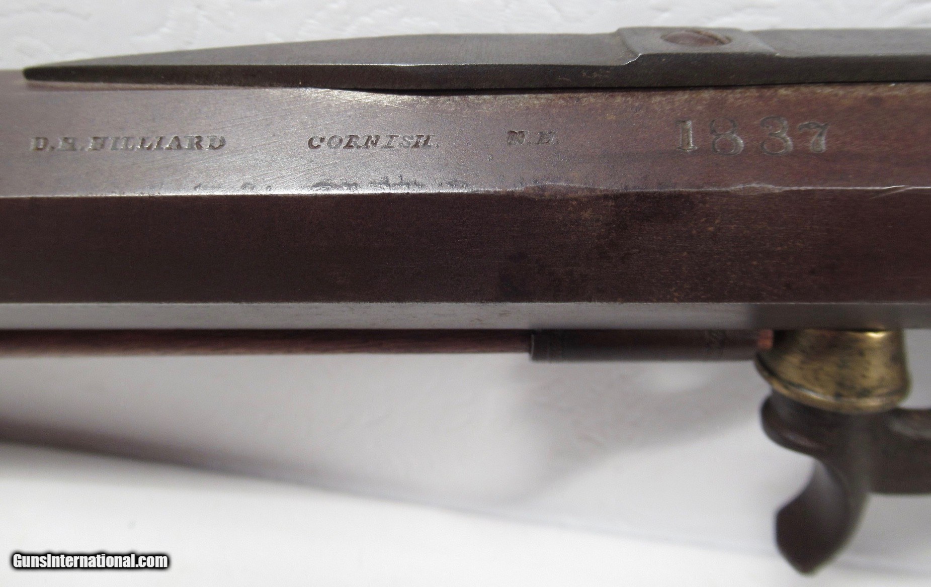 Description: Really Good Underhammer Buggy Rifle made by D. H. Hilliard of Cornish, New Hampshire circa 1860-1880 (See page 75 of “Underhammer Guns” by Herschel C. Logan); 43 Cal. with 15” Barrel – 31 ¾” L.O.A.; weighs 5 ½ lbs.; Excellent Antique Condition; Perfect Function – Fine Strong Bore; ORIGINAL Ram Rod; Neat Little Antique Rifle; Book Included; LIQUIDATING PERSONAL COLLECTION; Price: $1,875 + $60 S&H; Price includes insured shipping; return policy: three days inspection from the date the item is received; full refund of shipping both ways ONLY IF THE ITEM IS MISREPRESENTED. SOLD Antique: Yes Manufacturer: D.H. Hilliard Model: Underhammer Buggy Rifle |
