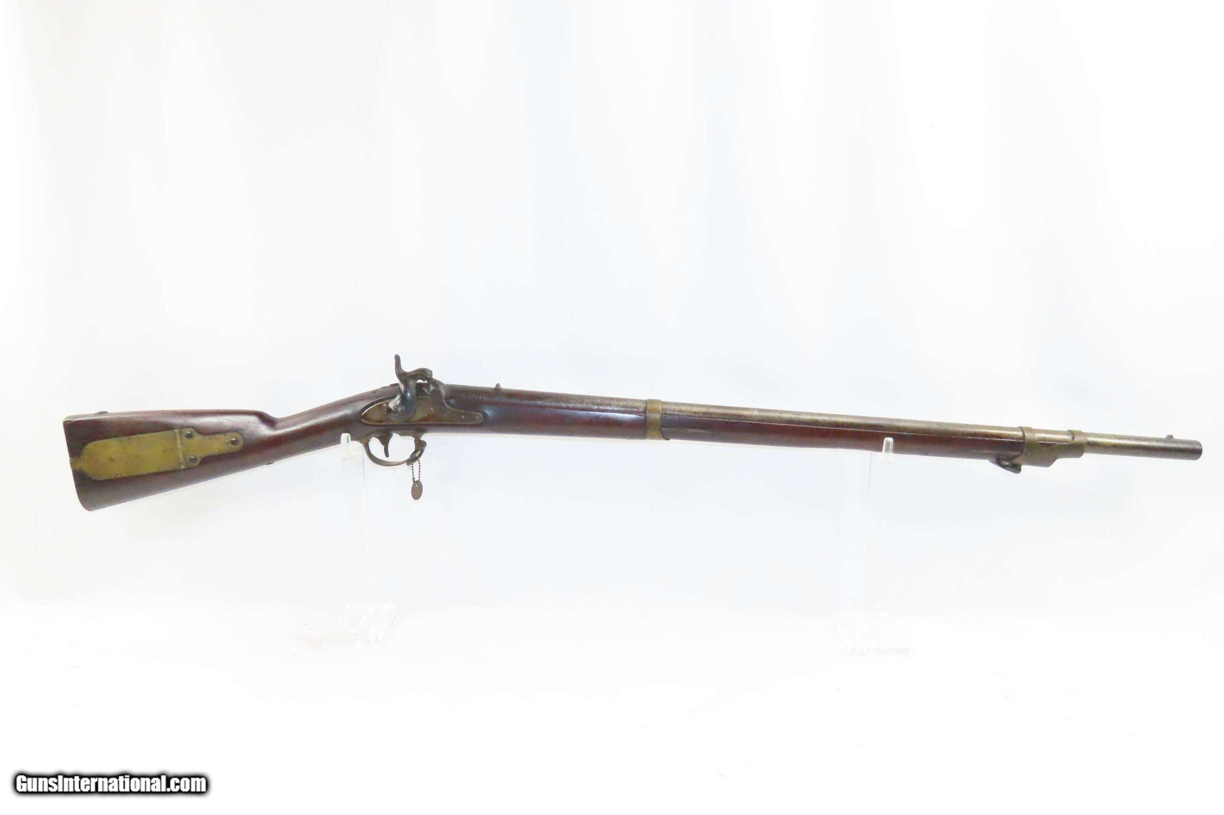 Description: c1853 mfr. Antique REMINGTON Contract U.S. Model 1841 MUSKET Percussion .58 Scarce “Mississippi” Rifle Used Extensively During the Civil War Here we present an antique U.S. Model 1841 Rifle-Musket, made on contract by E. Remington in Herkimer, New York in 1853. Remington contracted with the U.S. Government for 20,000 rifles, delivered between 1846 and 1854. This mass-produced rifle was used extensively by Dragoons, Mounted Rifle Regiments, and US Infantry “Regulars” prior to the Civil War. After the John Brown Raid on Harpers Ferry in October of 1859 the southern states demanded additional weapons. In December of that year, 10,000 Mississippi Rifles were sent to southern armories at the direction of the Secretary of War. These rifles saw extensive service for the south when war erupted in 1861. The Mississippi Rifle is so called because its service life included the Mexican-American War, during which Jefferson Davis (future president of the Confederacy) led his Mississippi troops, who carried and favored the rifle. It was a rugged and reliable weapon. The Model 1841 was originally made in .54 caliber, but in the late 1850s a number were arsenal reconfigured to a larger caliber, as this one was, to make it conform logistically to the adopted .58 caliber projectiles. Obviously, the Model 1841 was worth converting. It was used by both sides during the American Civil War as these would have been in state arsenals when the war began. Government arsenals that were in the Confederacy at the time of the rebellion had a number of these in them. The overall condition is good+. Dark, even, original patina throughout. Strong action. The bore is smooth and in good shape with a patinaed interior. The walnut stock is solid and shows some wear. Two legible cartouches are present on the left wrist which appear to be “JH” for Joseph Hannis and “WAT” for Captain William Anderson Thornton. “1853” dated lock. Nice, threaded reproduction ramrod. Own the original! This is a legitimate antique and not a reproduction. Barrel is 32 inches. Caliber: .58 Percussion Overall condition as seen in photos. Very Fast. Very Safe. FREE SHIPPING WORLDWIDE. Delivered directly to your door by express mail! Guaranteed AUTHENTIC & Includes CERTIFICATE OF AUTHENTICITY. ancestryguns $2800 #217046 SOLD Antique: Yes |
