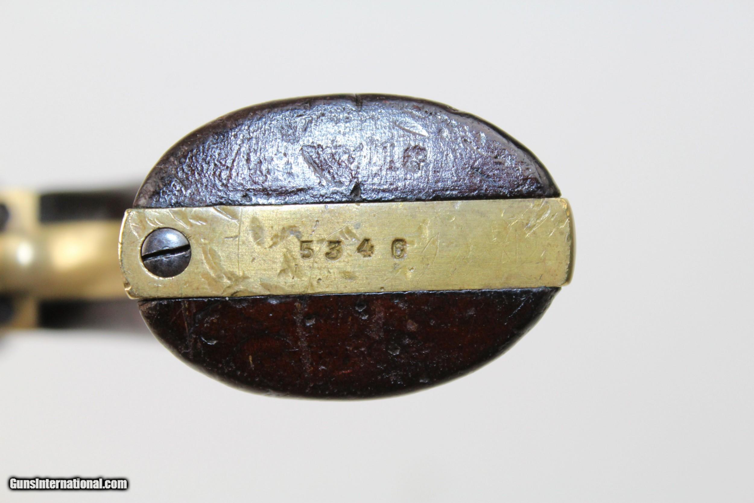 Description: Circa 1868 Antique MANHATTAN Percussion Revolver Post-Civil War 6-Shot Revolver Here we present an antique Civil War Manhattan Series V .36 Caliber Revolver, manufactured sometime between June 1867 to December 1868 in Newark, New Jersey. Only 9,000 were produced. Manhattan was a direct competitor to Colt and even somewhat resembles the Colt 1851 Navy and 1849 Pocket. These are considered “secondary martial weapons” by collectors due to the fact that some were purchased by the U.S. Ordnance Department and even more were purchased privately by officers and enlisted men to use for side arms. This revolver features six shots of .36 caliber ball and a 6-1/2 inch barrel, the latter being scarce as most were made with 4 inch barrels. This Manhattan Navy Caliber Revolver features a roll-engraved cylinder with strong borders. The top of the barrel is marked “MANHATTAN FIREARMS CO. NEWARK, N.J./PATENTED MARCH 8, 1864”. This one features the spring plate between the recoil shield and cylinder. The overall condition is very good. The metal surfaces are covered in a smooth, gray-brown patina. The markings are clear and legible. The serial numbers match. The walnut grips are in great shape. The bore is good with strong rifling and a light layer of dust. The action on this revolver is excellent. Own the original! This is a legitimate antique and not a reproduction. Barrel is 6-1/2 inches. Caliber: .36 Percussion Overall condition as seen in photos. Very Fast. Very Safe. FREE SHIPPING WORLDWIDE. Delivered directly to your door by express mail! Guaranteed AUTHENTIC & Includes CERTIFICATE OF AUTHENTICITY. ancestryguns $1200 #7029 SOLD Antique: Yes |