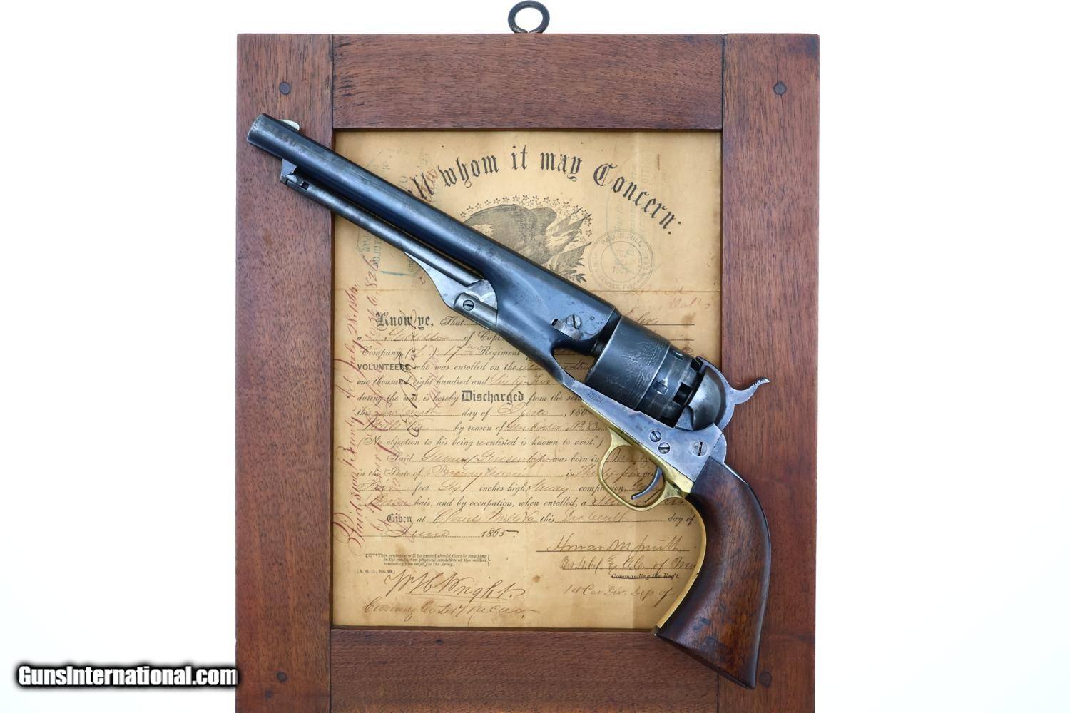 Attractive, original, and all matching Colt 1860 Army Revolver, cal. .44, manufactured in 1862, a classic Civil War and Frontier Expansion revolver, this example accompanied by an original discharge document from a Civil War veteran.