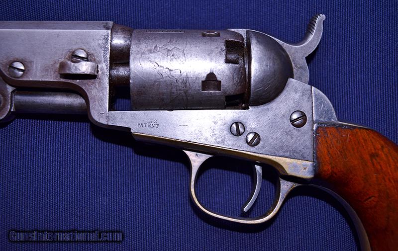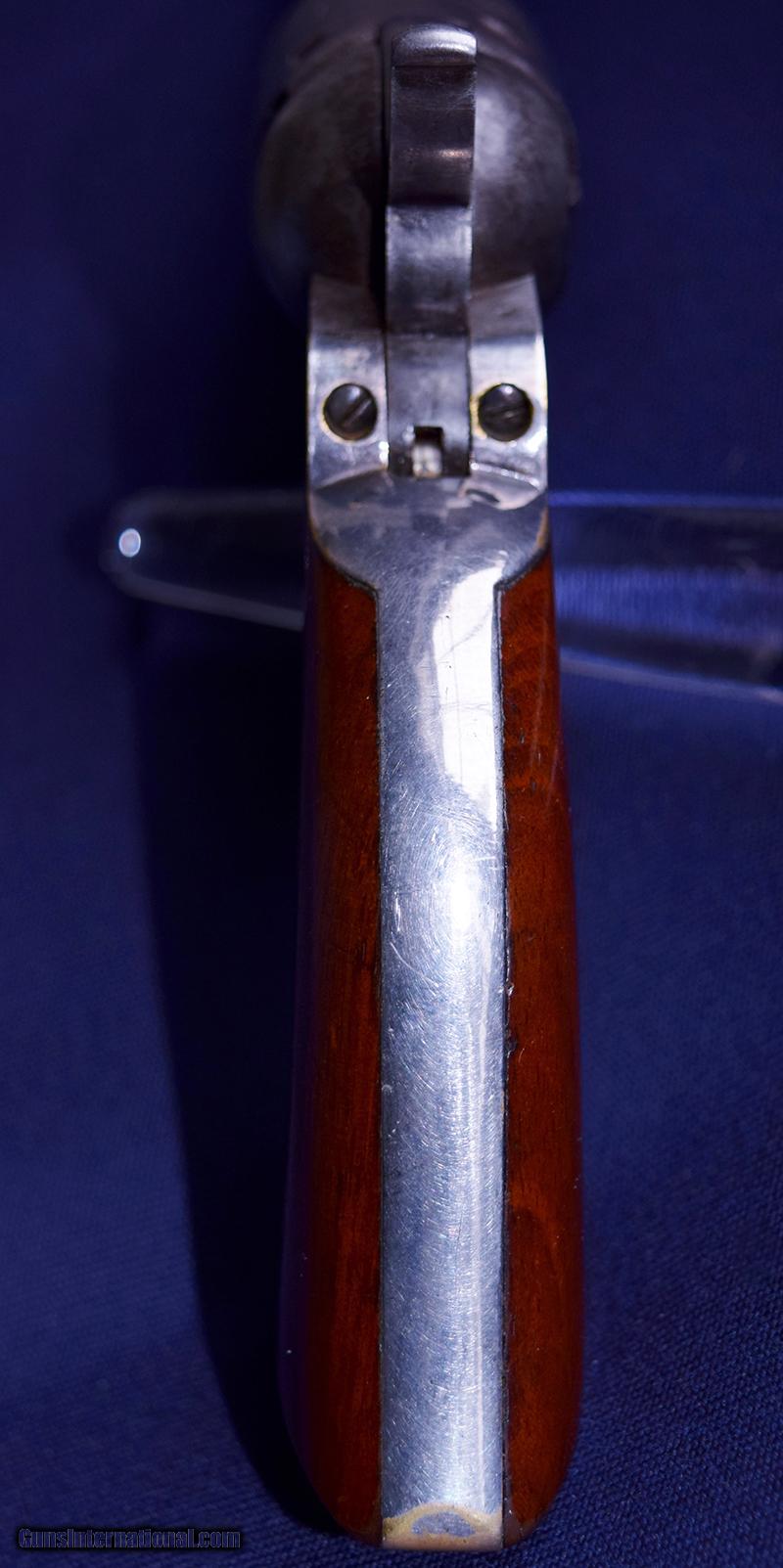 Description: Colt Model 1849 Pocket .31 Caliber Percussion Revolver, serial number 115,XXX manufactured in 1856, 5 shot, 4” octagon bbl. Revolver has all matching serial numbers including wedge. Colt’s Patent on top of barrel & on side of frame are highly visible as well as proof marks. Cylinder scene is excellent with crisp images. Grips are in very good condition with a few minor marks from use. Backstrap shows nice nickel plating with triggerguard showing good original brass finish. Action is tight & in working order. Big Iron Firearms & Collectibles is a family owned & operated business. We are a licensed FFL Dealer & stand behind all of our listings. We try to replicate all aspects of the firearm in our photos & if you’re not completely satisfied, we will refund 100% of the purchase price during the 3 day inspection period. We Do Not Charge credit card fees, all major credit cards are accepted. We offer a 2% discount on sales price for items purchased with a money order, cashier or personal check, with item held until cleared. Will M. at 260-319-6961 SOLD Antique: Yes |