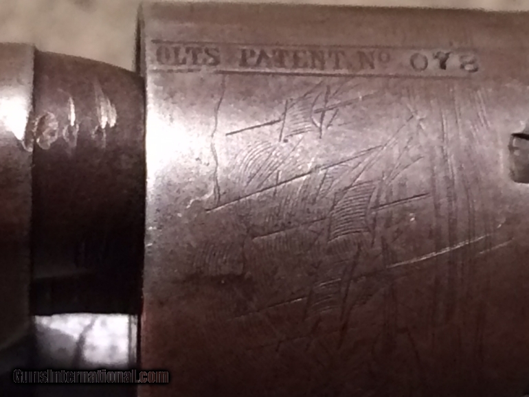 Description: Scarce and Exceptional Civilian Colt Model 1861 Navy Percussion Revolver. Serial no. 26078, manufactured in 1865, .36 caliber, 7 1/2-inch barrel with German silver blade type front sight. New York City address. Blued finish. Case-hardened loading lever, hammer and frame. Frame marked: Colt's/Patent. Standard cylinder scene. The matching serial number 26078 is marked on the barrel, frame, trigger guard and back strap, with the partial serial number on the arbor pin, wedge and cylinder. Condition: NRA Fine. Retaining approximately 50 - 60% original bleu finish with scattered light wear on the barrel and patina, most of blue at the bottom of the barrel, around the wedge and in the protected areas. Case-hardening remaining on lever, hammer and frame. Trigger guard and grip strap assembly retaining 85 - 95% of it's original finish. Grips are very fine a few minor marks and some of original varnish. Action tight and crisp. Bore is in good condition with minor visible pitting. A very fine and correct example of this model. All matching numbers. Extremely rare to find a Colt 1861 in this condition. Here is your opportunity to own a great piece of American history for the right price. FREE express delivery directly to the address of your choice! SOLD Antique: Yes Manufacturer: Colt Model: 1861 Serial Number: 26078 Caliber Info: .36 Condition: FINE |