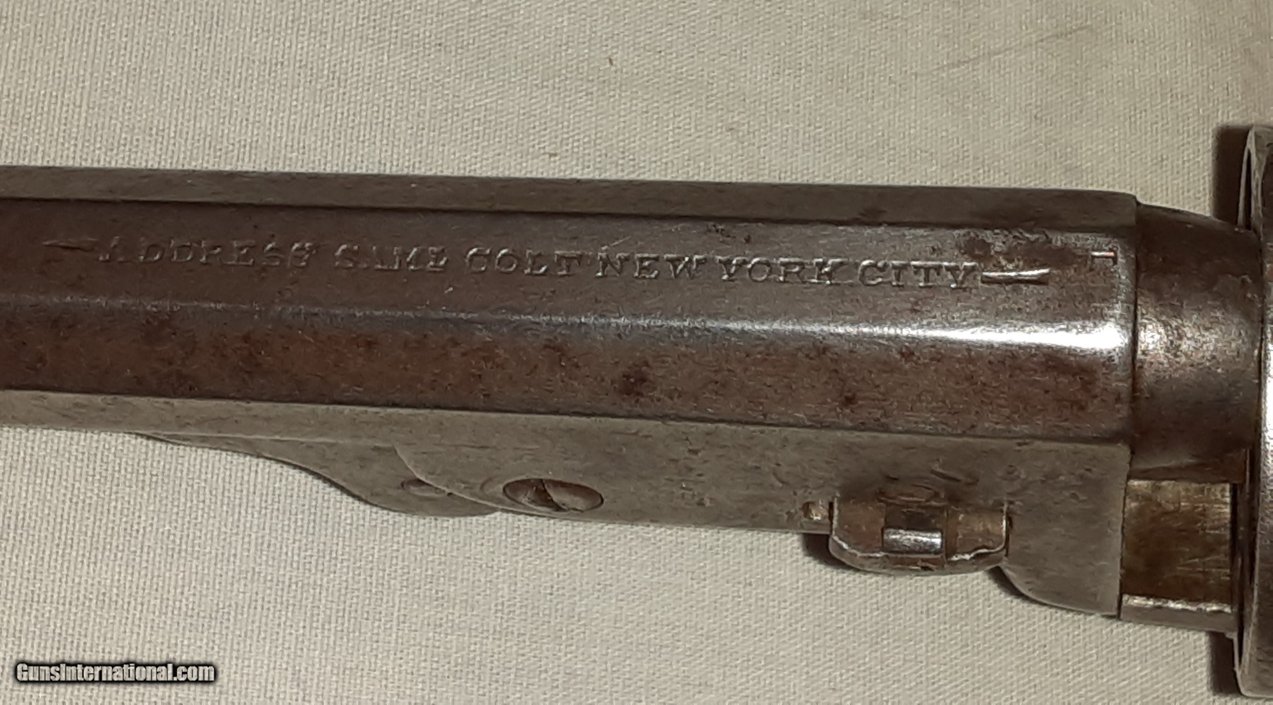 Description: Colt Model 3rd Model Dragoon; Serial No. 18321; Made 1859; .36 cal. Percussion; 7 ½” Barrel; All Numbers Match; FANTASTIC ANTIQUE CONDITION; 100% Original, Untouched Gun; EXCELLENT Action and Bore; Really Good 162 Year-Old Colt. It was given to my great grandfather by William “News” Carver, a distant cousin, who rode with Butch Cassidy and the Wild Bunch. It was passed down to my grandfather, my father and then to me. SOLD Antique: Yes Handgun Caliber: .44 Colt Manufacturer: Colt Model: Dragoon Serial Number: 18321 Barrel Length: 7.5 inch Condition: Very Good Metal Condition: Very Good Wood Condition: Very Good Bore Condition: Very Good Barrel Type: Octagonal |