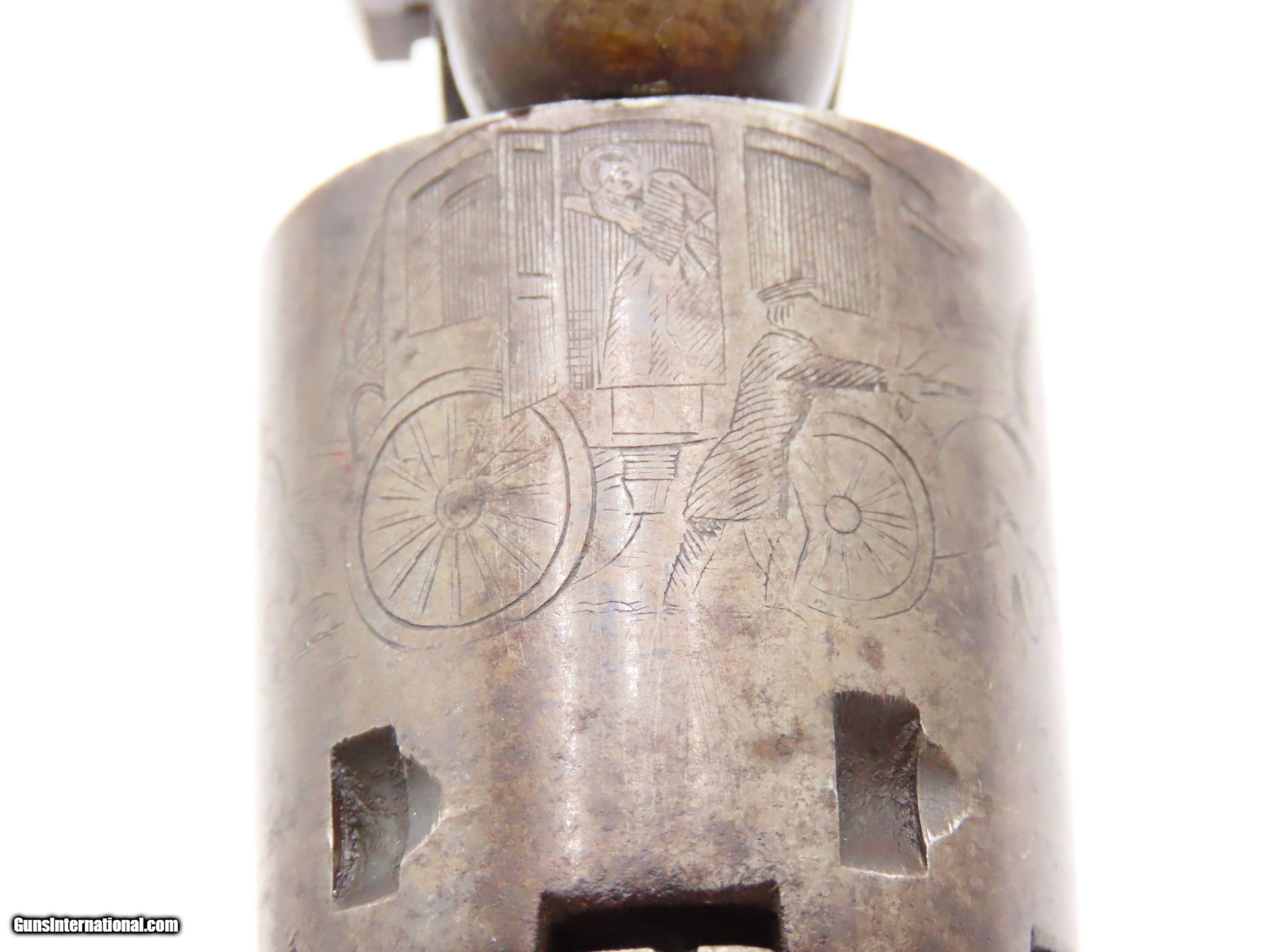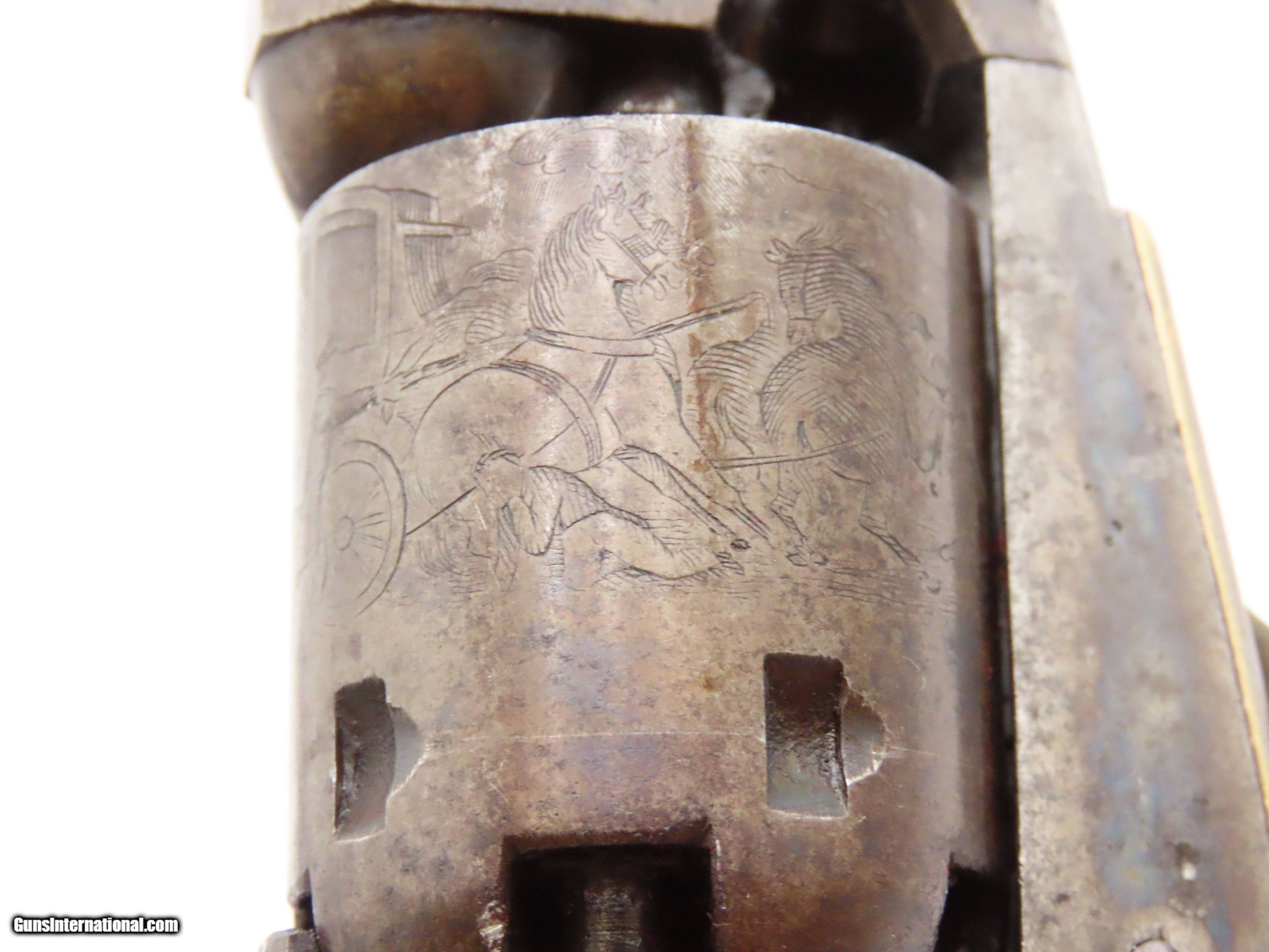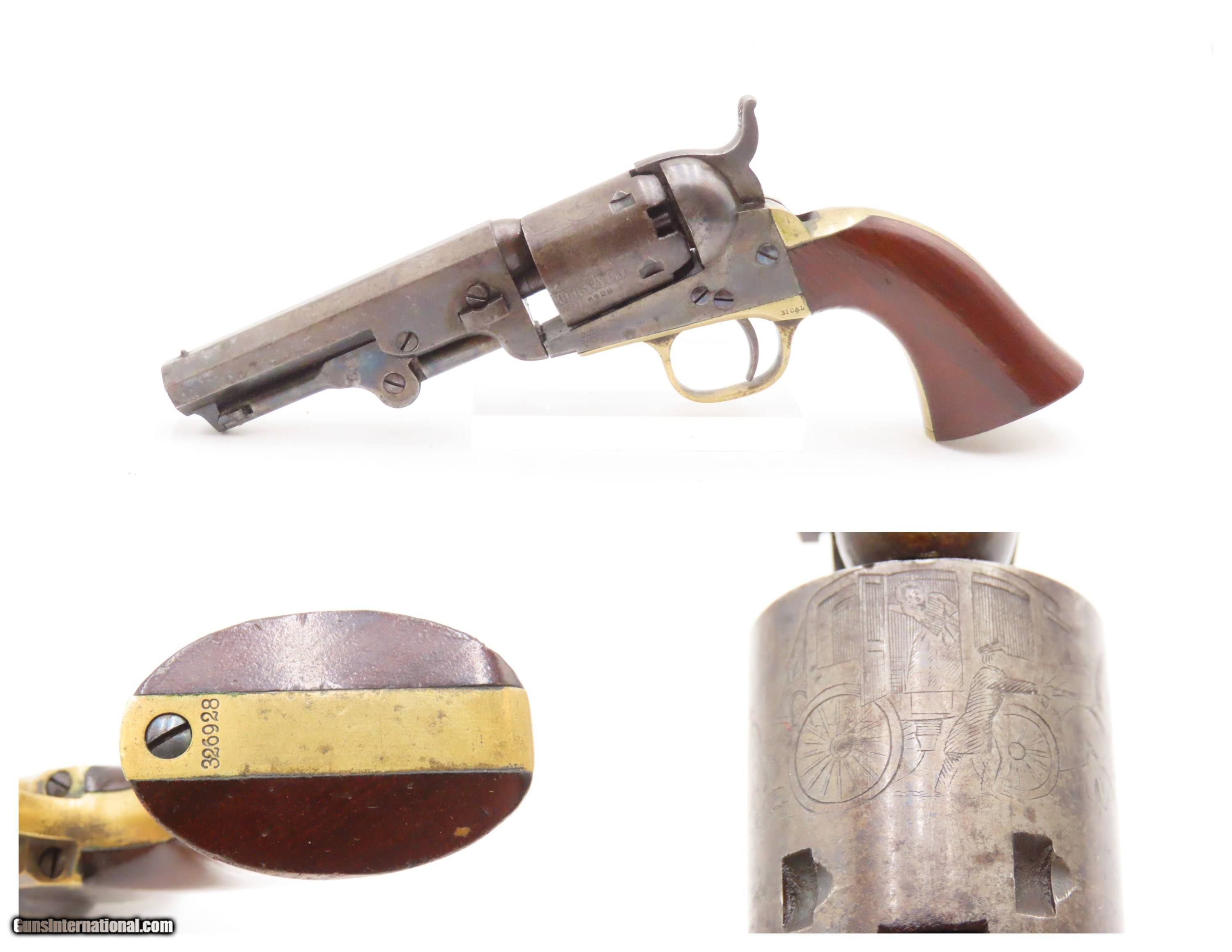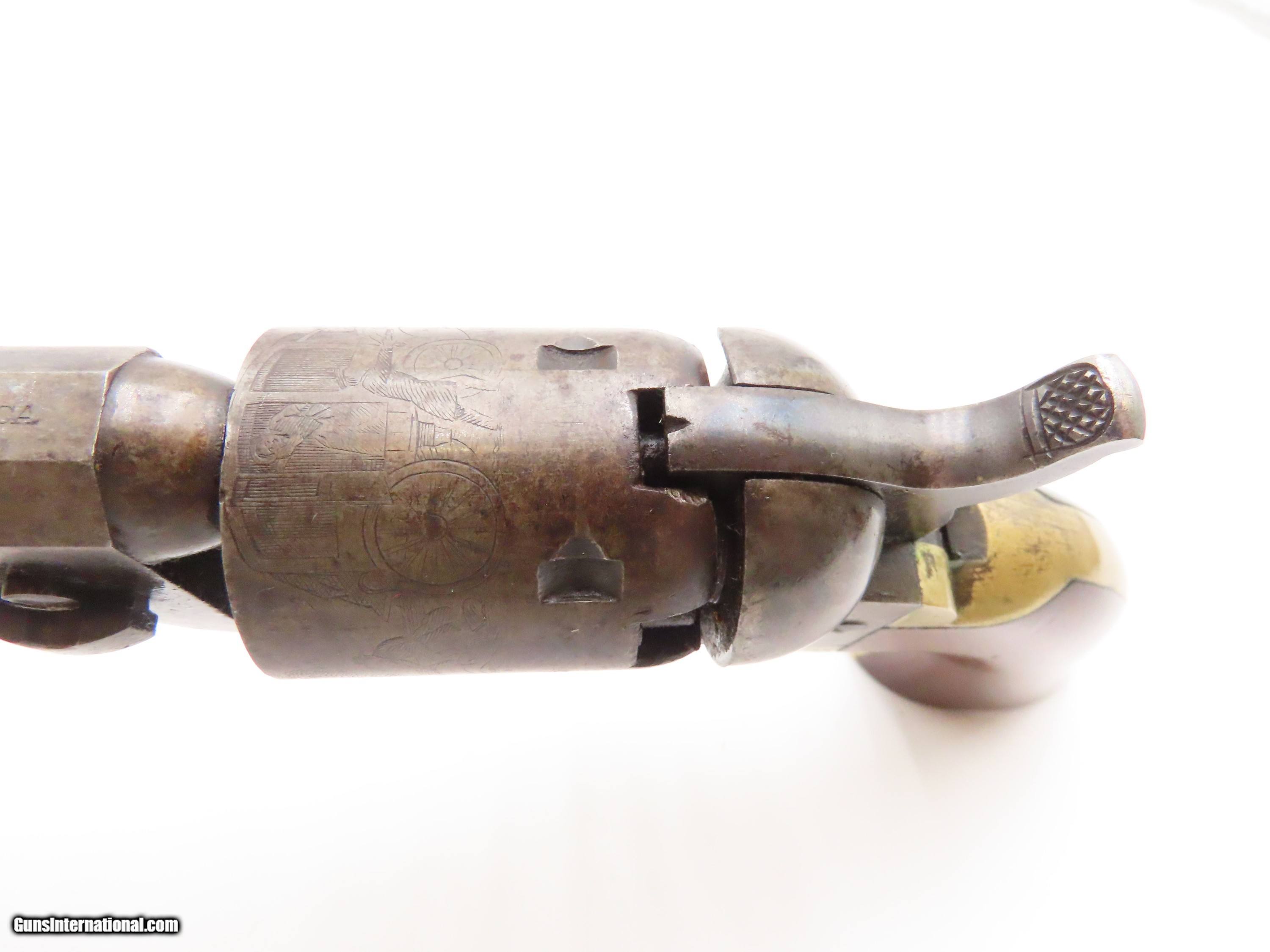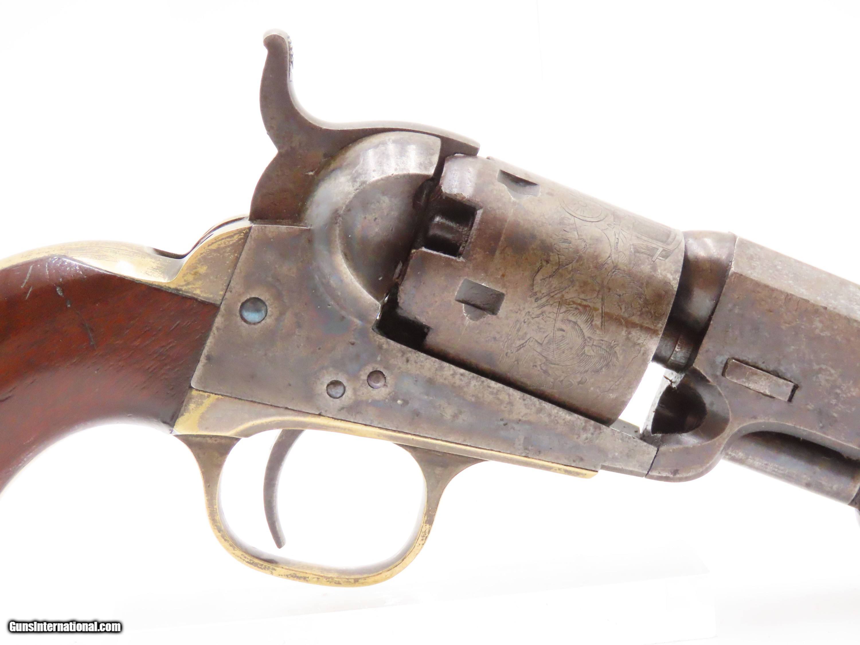 Description: HANDY Post-CIVIL WAR / WILD WEST Antique COLT M1849 Percussion .31 POCKET Nice WILD WEST/FRONTIER SIX-SHOOTER Made In 1871 Here we present an antique Colt Model 1849 Percussion Pocket Revolver, made in 1871 in Hartford, Connecticut. The Model 1849 Pocket, the replacement for the Baby Dragoon, was the most widely produced of any Colt percussion pistol. Nearly 340,000 were manufactured during its 23-year production run that ended in 1873. Over 280,000 of these were produced by Colt’s factory at Hartford by the end of the American Civil War in 1865. These were very popular and saw a lot of use on the battlefield, on the home front and in the West. These were some of the smallest, handiest pocket revolvers of the time. Though not a primary military arm during the American Civil War, these handguns were commonly privately purchased by soldiers for use on the battlefield. Whether legend or fact, it is interesting to note something commonly read about pocket revolvers of the day, that while they could be used for self-defense againstthe enemy, many soldiers kept them on their person to defend themselves against an unwanted amputation in the primitive field hospitals that were notorious, even in their day. The overall condition is nearing fine with some original finish and case colors preserved in low handled areas. Strong action. The bore is in good shape with serviceable rifling. Fine grip. Markings are legible. Numbers match. Loading lever is unmarked. Most of the cylinder scene is intact. Own the original! This is a legitimate antique and not a reproduction. Barrel is 4 inches. Caliber: .31 Percussion Overall condition as seen in photos. Very Fast. Very Safe. FREE SHIPPING WORLDWIDE. Delivered directly to your door by express mail! Guaranteed AUTHENTIC & Includes CERTIFICATE OF AUTHENTICITY. ancestryguns $2300 #250508 Antique: Yes Price: $2,300.00 Buy Now Pay with