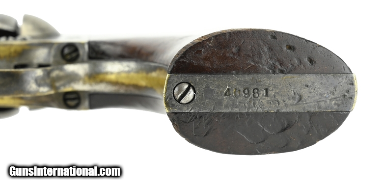 Description: Manhattan Series III .36 caliber revolver. 5-Shot cylinder with 1859 patent date cylinder cameo. Scenes are perfect. Bore is mirror bright with excellent rifling. Barrel length 6 ½”. Action works and Indexes. Markings and barrel flats are all sharp. Grips have no chips or cracks. Varnish is somewhat flaked. Overall a fine Manhattan. SOLD Antique: Yes |