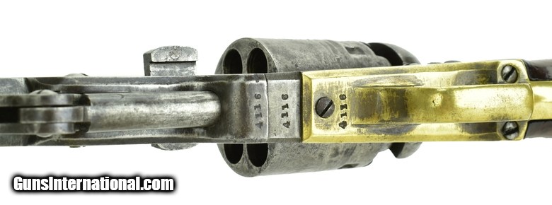 Metropolitan Navy Model Revolver. .36 Caliber. All matching gun. The cylinder still has most of the scene. Metal has a smooth gray even patina. Grips still have most of the original varnish. Action works perfectly. Nice sharp gun!