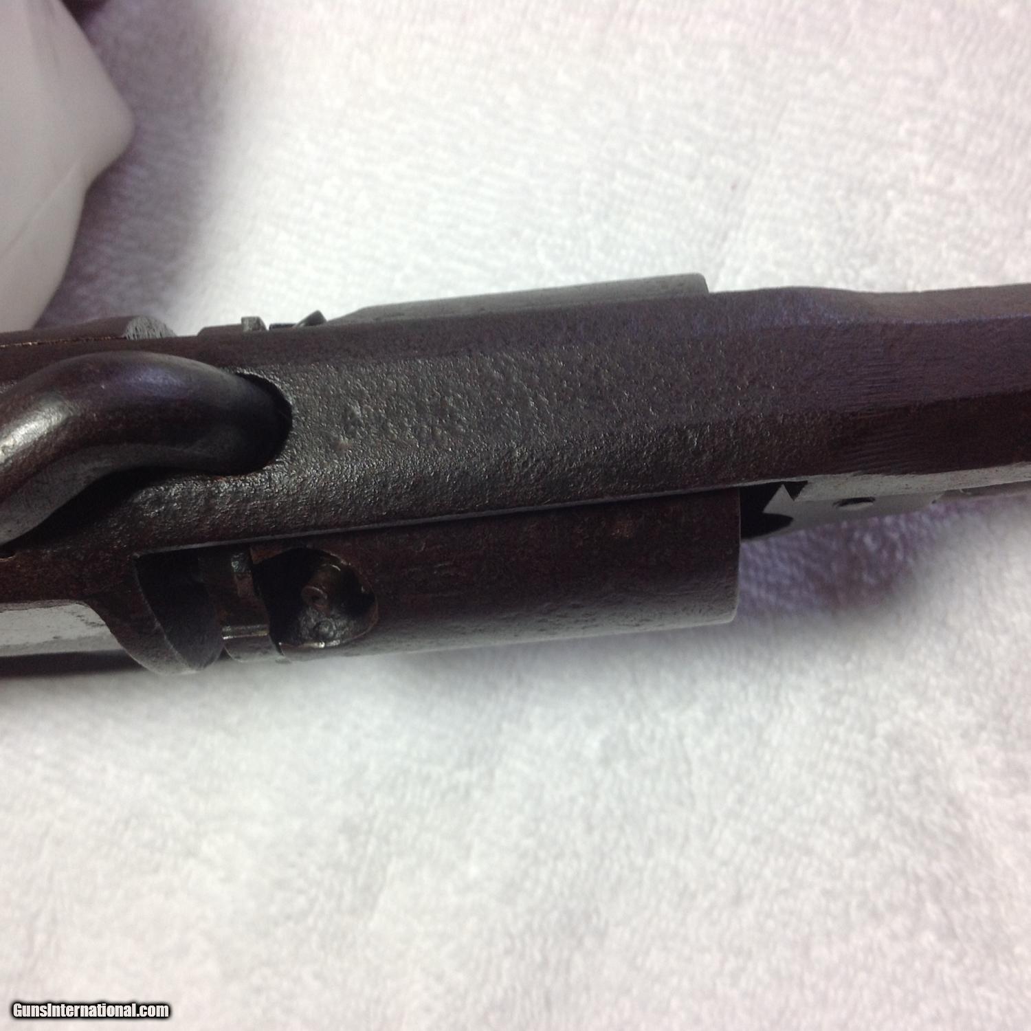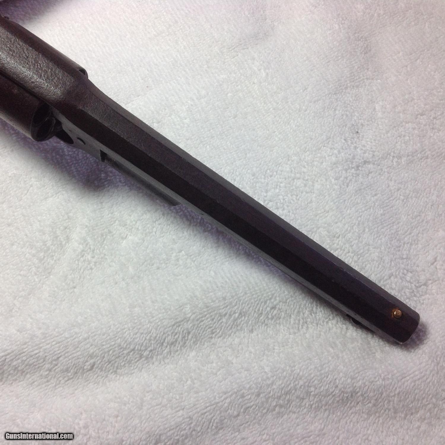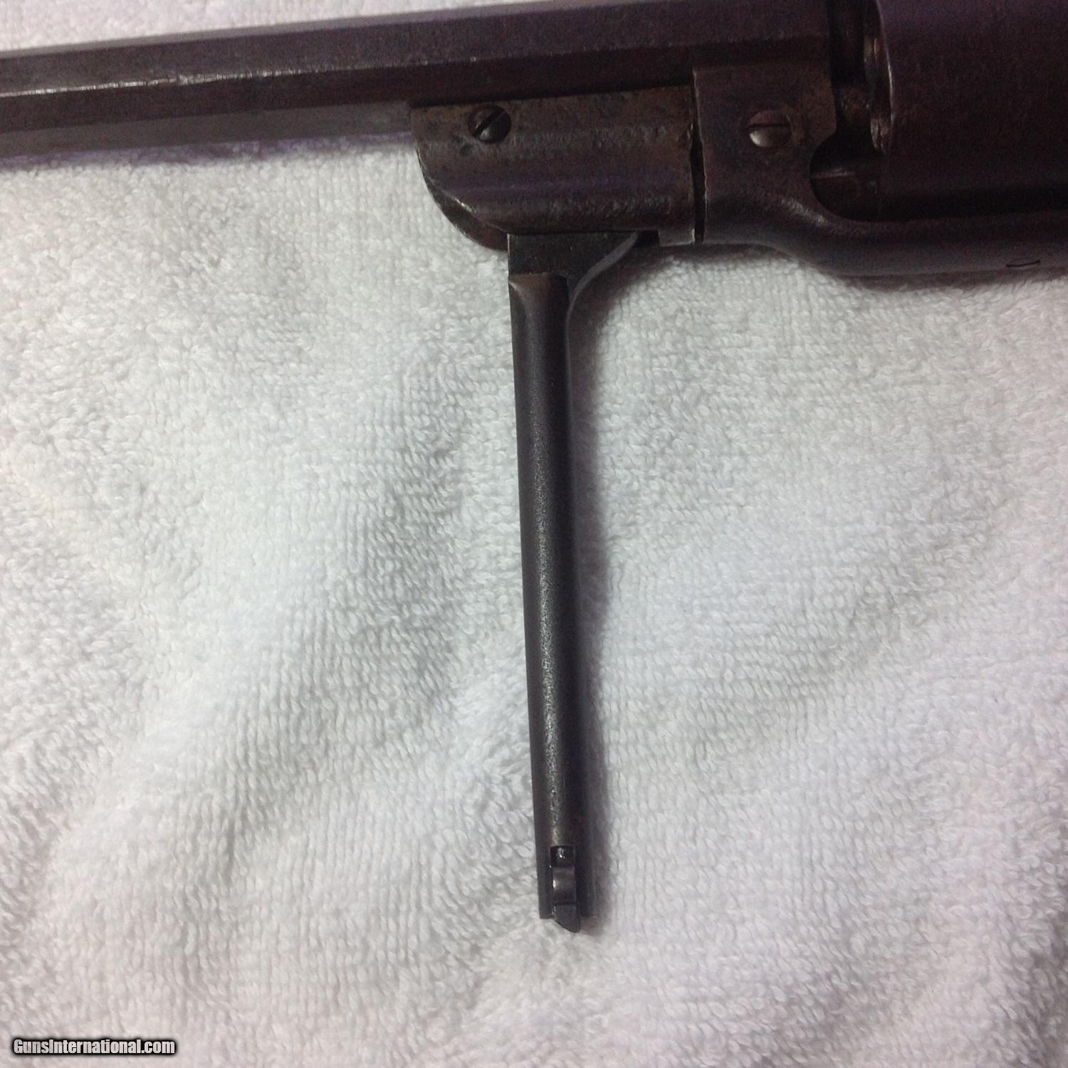 Description: Reduced to Sell!!! Honest in the black all original Navy Savage percussion revolver. These were manufactured early in the Civil War and purchased by the Union and the Confederates. This one has perfect mechanics. Dark chocolate patina throughout the gun. Some moderate pitting but overall displays very good. Everything is original. Maker marks cannot be made out. Original grips in very good condition. Great gun for the price. SOLD Curio/Relic: Yes Antique: Yes |