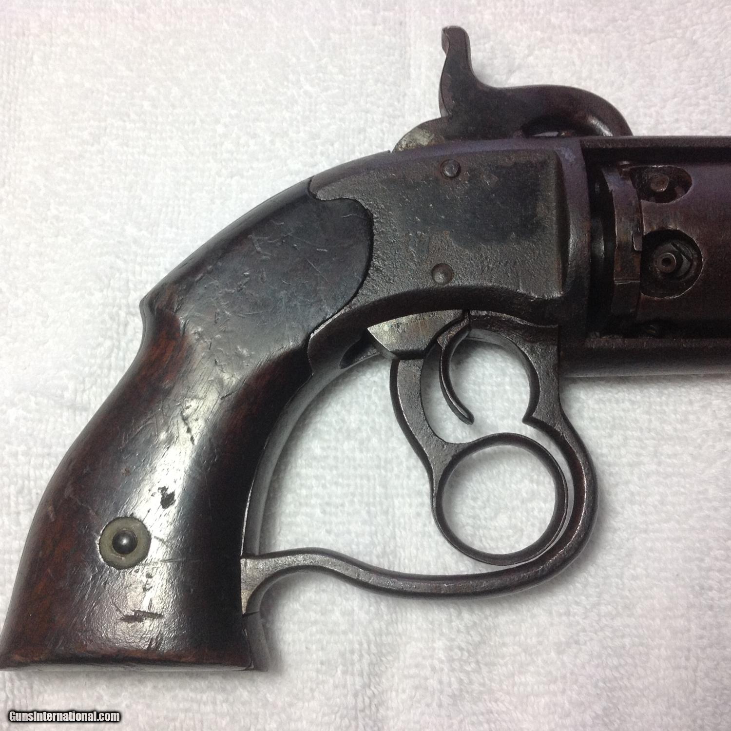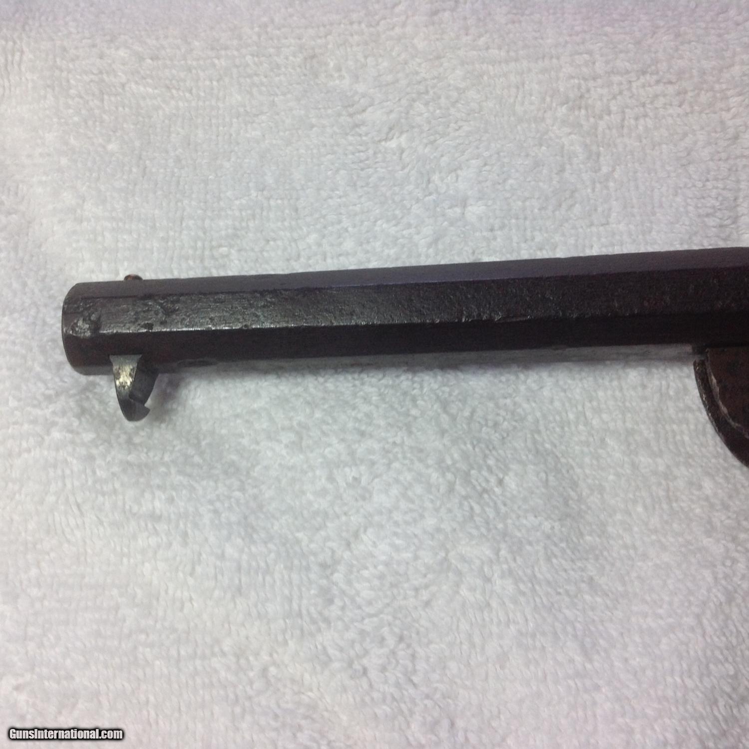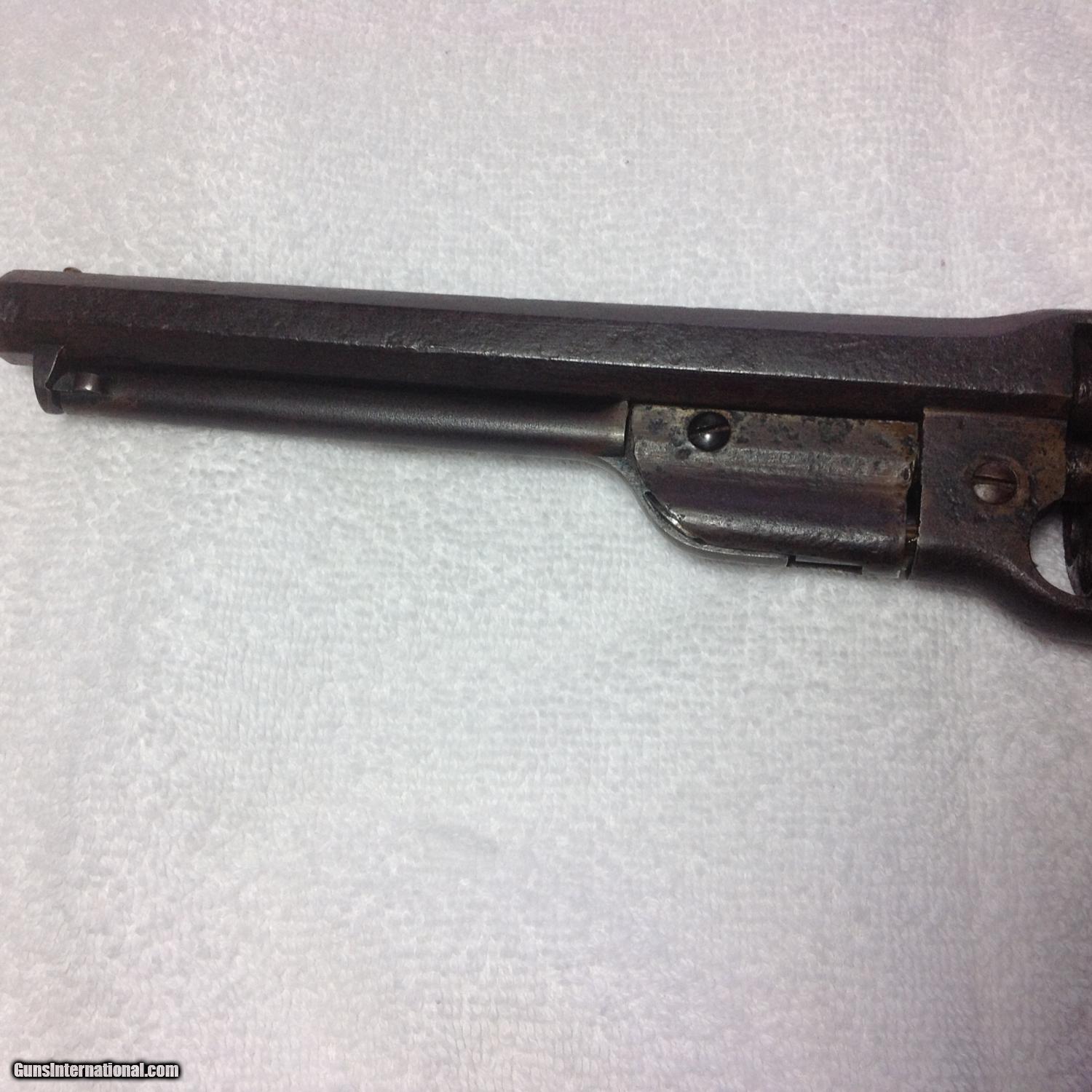 Description: Reduced to Sell!!! Honest in the black all original Navy Savage percussion revolver. These were manufactured early in the Civil War and purchased by the Union and the Confederates. This one has perfect mechanics. Dark chocolate patina throughout the gun. Some moderate pitting but overall displays very good. Everything is original. Maker marks cannot be made out. Original grips in very good condition. Great gun for the price. SOLD Curio/Relic: Yes Antique: Yes |