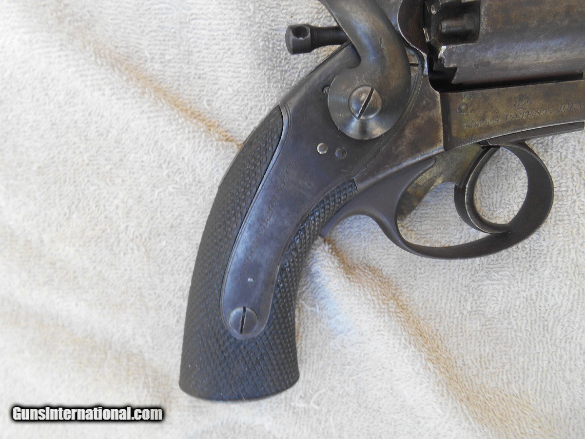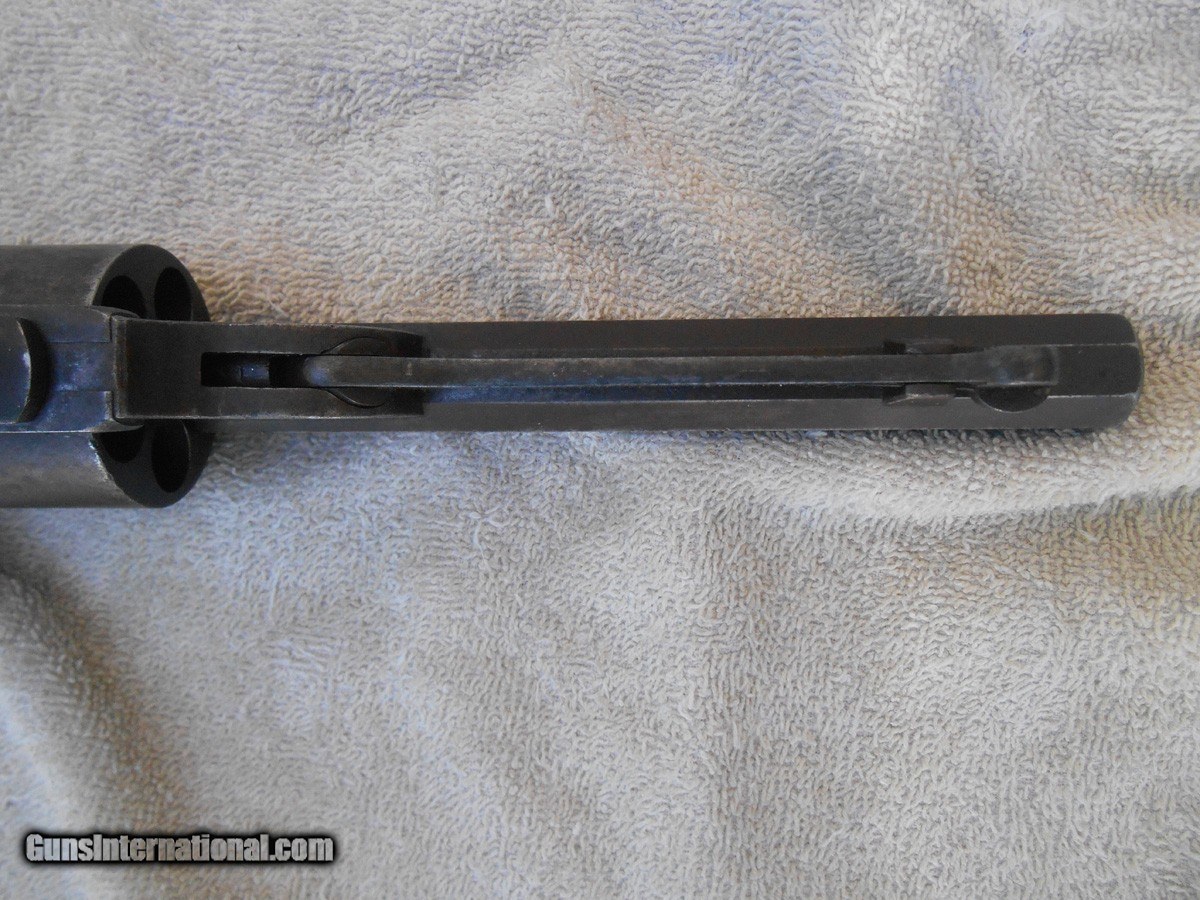 Description: The history of the rise of this, possibly the most ubiquitous and recognizable of all sidearms used by the Confederacy during the American Civil War, is long and involved. The Kerr revolver is an import from the London Armory Company, a British firearm manufactory. They were initially contacted by one Caleb Huse, who was able to secure a contract for almost all of the Kerrs that they could manufacture, beginning in 1861. They would go on to deliver pistols to the Confederacy for almost the entire war. In July of 1864, Julian Pratt, the commander of a Virginia cavalry company inventoried all of the pistols then used by his troopers, which became known as the Pratt Roll. On that roll were several Kerr Revolvers that were within the serial number range of 9740-9974. There is no historical documentation of any Kerrs being received between the time of the taking of the Pratt Roll and October 31, 1864, when a ship from England offloaded 900 Kerr revolvers and accessories in the Port of Wilmington, NC. Apparently, these were not purchased from London Armory by the Confederate Government, since the historical record states, "bought of E.Hope," most likely on speculation that they could be sold to the government upon arrival. Personally, I think E. Hope was the name of that speculator, but others think that E. Hope was the name of the ship that delivered the Kerrs. Not true. There was indeed a ship named SS Hope that delivered goods to Wilmington, NC, But E. Hope is most certainly an individual, perhaps the owner of SS Hope, since there is no way a ship can buy anything. On the same day of offloading at Wilmington Port, 500 "Kerr's pistol w/rings" were sent by the government to "Col. J.C Moore, Selma and 400 "Kerr's pistols with rings" were sent to "Col. L.W. Broun, Richmond," both Ordnance Officers in those locations, proof positive that they served with the Confederates in some capacity. This revolver bears serial number 10126, only 152 serial numbers higher than the highest Kerr serial number on Pratt's Roll, taken just three months previous to its arrival in Wilmington. It is a virtual certainty that this revolver served in the Civil in the waning months of the war. The right side of the revolver is marked on the lock plate with London Armory Co. and on the frame with Kerr's Patent., followed by the serial number 10126. The 5-shot cylinder is marked with serial 10126 and 5 proof marks with crown over GP and crown over V, alternating between the cylinders. There is also an assembly number of 551 on the front face of the cylinder and on the inside bottom of the trigger guard. On the left side of the frame is a strongly-struck London Armory in the shape of a football. On the left side of the barrel are the markings, reading from left to right, are L.A.C., crown over GP and crown over V. There is no JS over Anchor marking on the grip, to be expected with a late speculative purchase, since the revolvers weren't sold to the government, but rather to a civilian who hoped to get a late war sale after their safe delivery to Wilmington. Other than that, the wooden grips are excellent. The butt plate swivel ring is gone, perhaps broken off in service. The revolver functions flawlessly when indexing to the next cylinder chamber with a hammer-down trigger pull, as is common with late model Kerrs. To fire the weapon, it is necessary to manually cock the hammer. If cocked too far back, the trigger pull sticks sometimes, but always causes the hammer to fall eventually. Most likely a lubrication issue on the inner workings of the frame. The condition of the finish is flashes of blue to blue/gray. with spottage of mild corrosion. The bore exhibits good rifling with evenly distributed barrel darkening. Shipping and insurance included in the price. Cashiers Check or USPS money orders only, please. I am not set up to accept credit cards, nor do I have any of the personal payment apps that are discouraged by GB, so please don't ask. Layaway available, but no return privilege is offered if the revolver is sold on layaway. Revolver will not ship to buyer until the agreed upon price is paid in full. Down payment is not refundable, and all payments to the layaway will be forfeited, should Seller choose to cancel the layaway. Thanks for looking. SOURCES AND BIBLIOGRAPHY Treatise by Valmore Forgett, (renowned expert on Kerr Revolvers,) [://americansocietyofarmscollectors/wp-content/uploads/2019/06/2008-B97-Why-Kerrs.pdf] Reprinted from the American Society of Arms Collectors Bulletin 97:5-19; (accessed 7-15-2022.) The Payne Papers, The Eleanor S. Brockenbrough Library of the Museum of the Confederacy, Richmond, Virginia, The Papers of Captain John M. Payne of Lynchburg, Virginia, late of the Confederate States Ordnance Corps, dated 18 August 1883 and "deposited with the Confederate Nemorial Library Society." Abstracted in "Firearms from Europe, Second Edition; James Biser Whisker,Daniel D. Hartzler, and Larry W. Yantz, pp 145-151, Copyright 2002. SOLD Antique: Yes Handgun Caliber: .44 Manufacturer: London Armory Co. Model: Kerr Serial Number: 10216 Barrel Length: 4.75 Bore: Rifled Condition: VG Metal Condition: GOOD TO VG Wood Condition: VG Bore Condition: Dark but G to VG Manufacture Date: 1863-1864 |