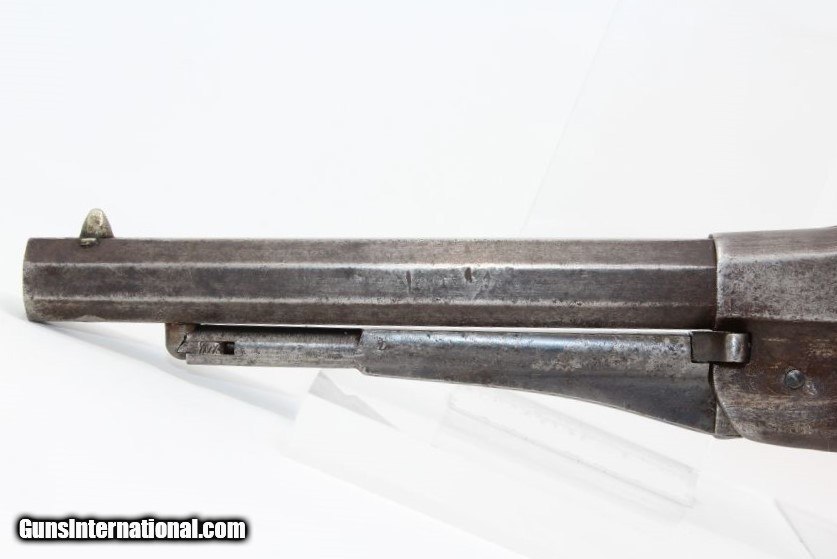 Description: RARE, FLUTED Remington-Rider DA New Model Revolver Navy Caliber with LOW Serial Number! Here we present an antique Remington-Rider Double Action New Model Belt Revolver, made from 1863-1865. Only 3-5,000 are thought to have been made. This was an early double action revolver made during the American Civil War. This one being quite early with a serial number in the low 100s. The distinctive fluted cylinder also pegs this for one of the earliest and this feature makes an already scarce gun quite rare. This is in the “Navy caliber” of .36. The New Model Belt began production as a percussion pistol but was quickly adapted to metallic cartridges. The factory conversion of a percussion pistol to cartridge involved machining out part of the frame, as well as machining the cylinder and fitting it with a special cap. Not many have survived today in the original percussion configuration. These would have been handy sidearms during the war as well as on the frontier. These were right on the cutting edge with that double action. The overall condition is good. Traces of the original blue are visible with mostly a dark gray patina. The markings are legible. The walnut grips are in good shape with some honest wear and even a notch on the left panel. The bore is in good condition. The action on this revolver is strong. Own the original! This is a legitimate antique and not a reproduction. Barrel is 6-1/2 inches. Caliber: .36 Overall condition as seen in photos. Very Fast. Very Safe. FREE SHIPPING WORLDWIDE. Delivered directly to your door by express mail! Guaranteed AUTHENTIC & Includes CERTIFICATE OF AUTHENTICITY. ancestryguns $3600 #8207 SOLD Antique: Yes |