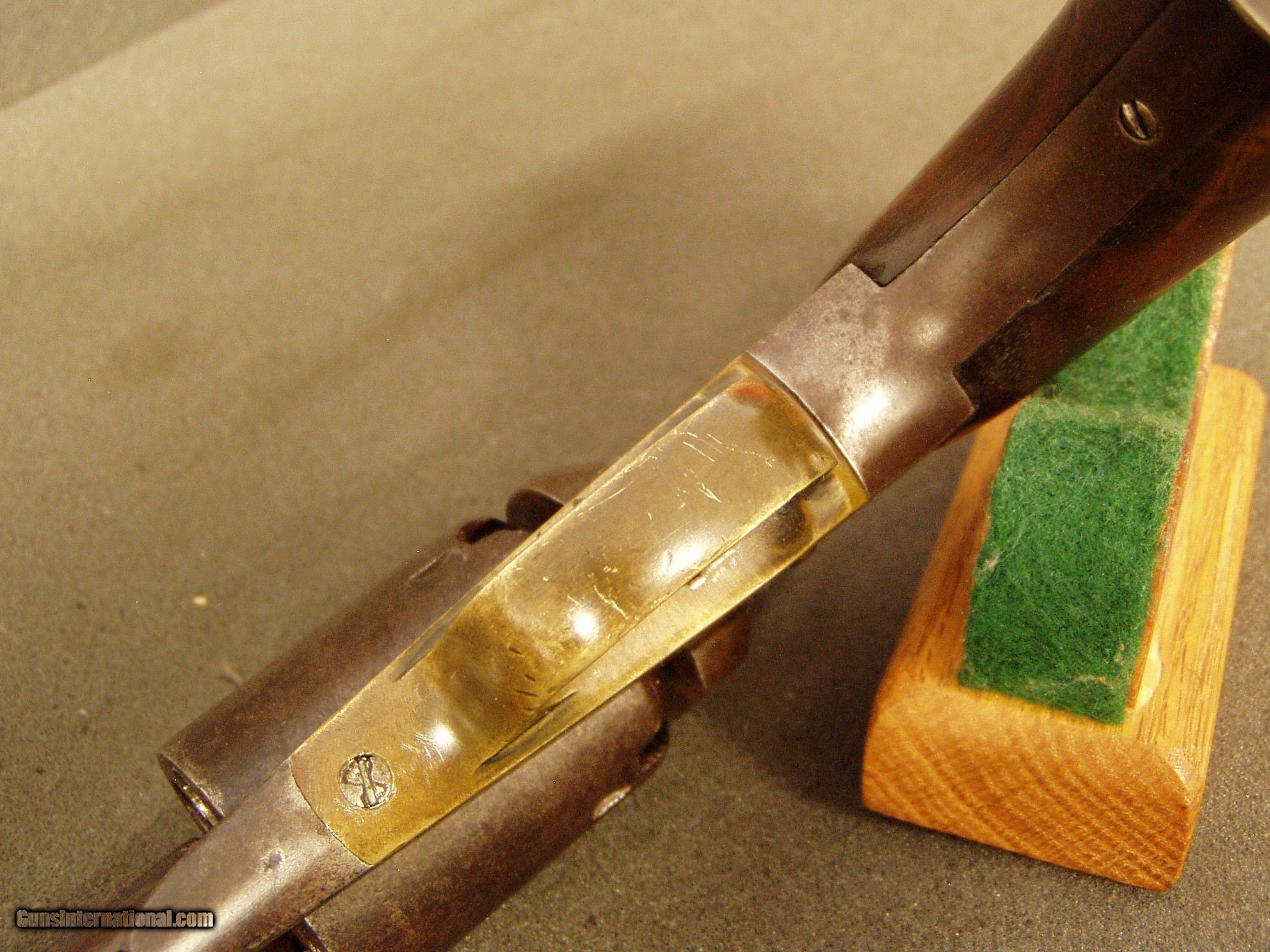 Description: Remington-Beals , .36 Caliber, 6 shot, Percussion Revolver. Manufactured 1861-1862. Has a 7.375" octagon barrel with a very good bore. Walnut grips that are in excellent condition. Serial #11387 and is all matching on frame under grip,trigger guard and partial on bottom of barrel. Finish is all patina. Screw heads are very good. Action indexes properly and locks up, like it should. Buyer Pays $20.00 shipping to the lower 48 states. I accept USPS Money Orders or Bank Cashier's Check. Will accept Personal check, with shipping hold. Layaway Available! Three day non-firing, non-disassembly inspection period. If returned, for any reason, full refund less shipping. ANTIQUE SOLD Antique: Yes Manufacturer: REMINGTON Model: BEALS NAVY MODEL Serial Number: SERIAL #11387 Caliber Info: .36 Bore: 7.375 Chambers: SIX Ejectors: PERCUSSION Condition: VERY GOOD Metal Condition: VERY GOOD Wood Condition: Excellent Bore Condition: VERY GOOD Barrels: ONE Barrel Type: OCTAGON Action: SINGLE ACTION Triggers: ONE Finish: PATINA Sights: BARREL Manufacture Date: 1861-1862 |