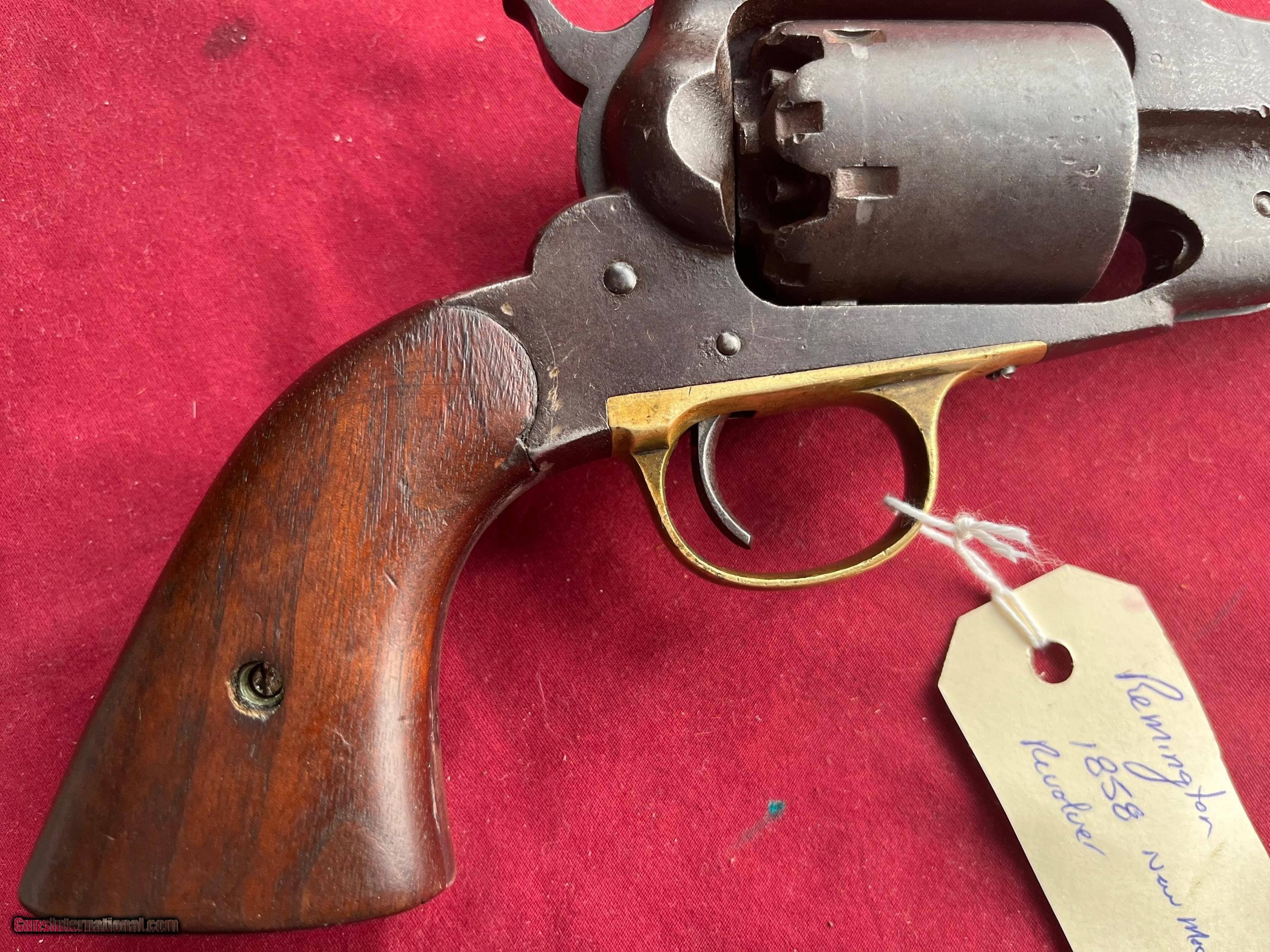 Description: ANTIQUE - REMINGTON MODEL 1858 " NEW MODEL" , CALIBER 44 PERCUSSION. SER# 111960, 8 INCH BARREL WITH A FAIR BORE SHOWING GOOD RIFLING WITH MODERATE PITTING. METAL SHOWS A BROWN PATINA. WOOD GRIPS ARE SOLID WITH NO CRACKS. ACTION FUNCTIONS AND WORKS FINE. EASTERN BRANCH FIREARMS ADD 35.00 SHIPPING – HANDGUN ADD 50.00 SHIPPING – LONG GUNS OPTIONAL INSURANCE IS AVAILABLE AT 1.25 PER 100.00 Questions e-mail or call Glen at Eastern Branch Firearms 207-215-5021 TERMS – PLEASE READ BEFORE I DO NOT HAVE A LAYAWAY OPTION ( WE ACCEPT CREDIT CARDS ) -- I GET ALOT OF REQUEST FOR TRADES, I WOULD PERFER NOT TO DO TRADES ON MY INTERNET LISTINGS PAYMENT OPTIONS- We accept money orders, cashier’s checks , bank checks. sorry no personal checks. We accept all major credit cards please add 3% to the ’s cash discount price.(Shipping within the state of Florida - Florida Residents must pay sales tax) .Handguns and long guns do need to be shipped separate. PLEASE do not send payment via FED EX . USPS & UPS are fine. Thank you. We include a signed copy of our FFL with each firearm shipped. SAFTY NOTICE- Buyer is solely responsible for determining that a used gun is safe to shoot. The firearms offered have not been test fired but have been given a visual inspection only for purposes. It is a requirement that every used firearm is inspected by a qualified gunsmith before firing. By , the buyer agrees to hold seller harmless against damages, injury, or death caused by defective merchandise. RETURN POLICY- All firearms come with a 3-day non firing , non messing with ( turning srews ,taking apart,removing parts, scoping. firing, cleaning or messing with in anyway) inspection/return privilege.Inspection is based on a visual review of the gun to confirm the gun is in the condition stated. In the case of a return, buyer pays all shipping charges & if paid for with a credit card buyer absorbs the 3% credit card charges . So please ask questions BEFORE you bid. Thanks for Looking and Good Luck!! U.S. sales only, no exports…this includes antiques. I will ship to third party for exporting SOLD Curio/Relic: Yes Antique: Yes |