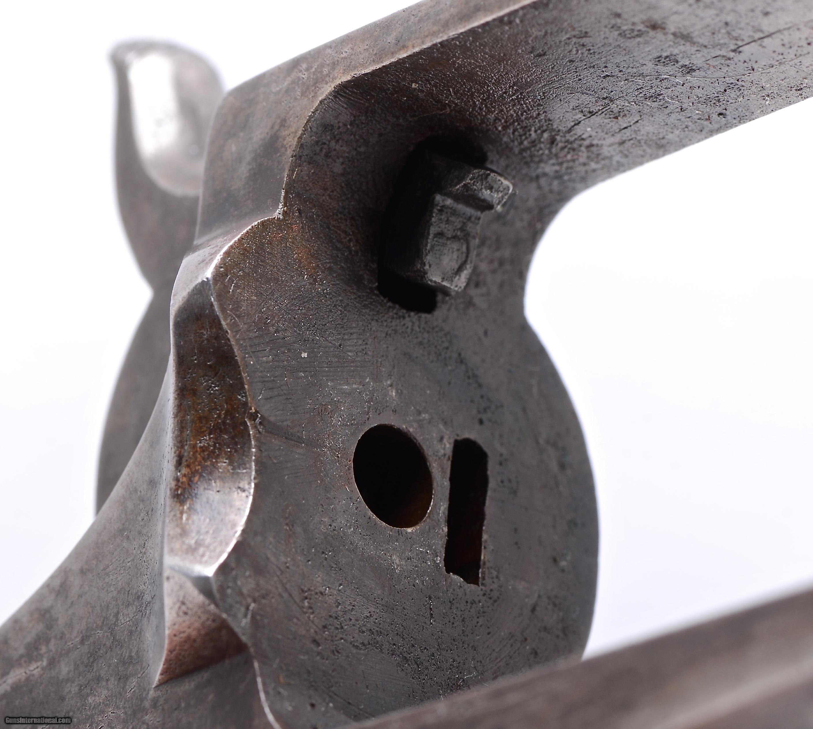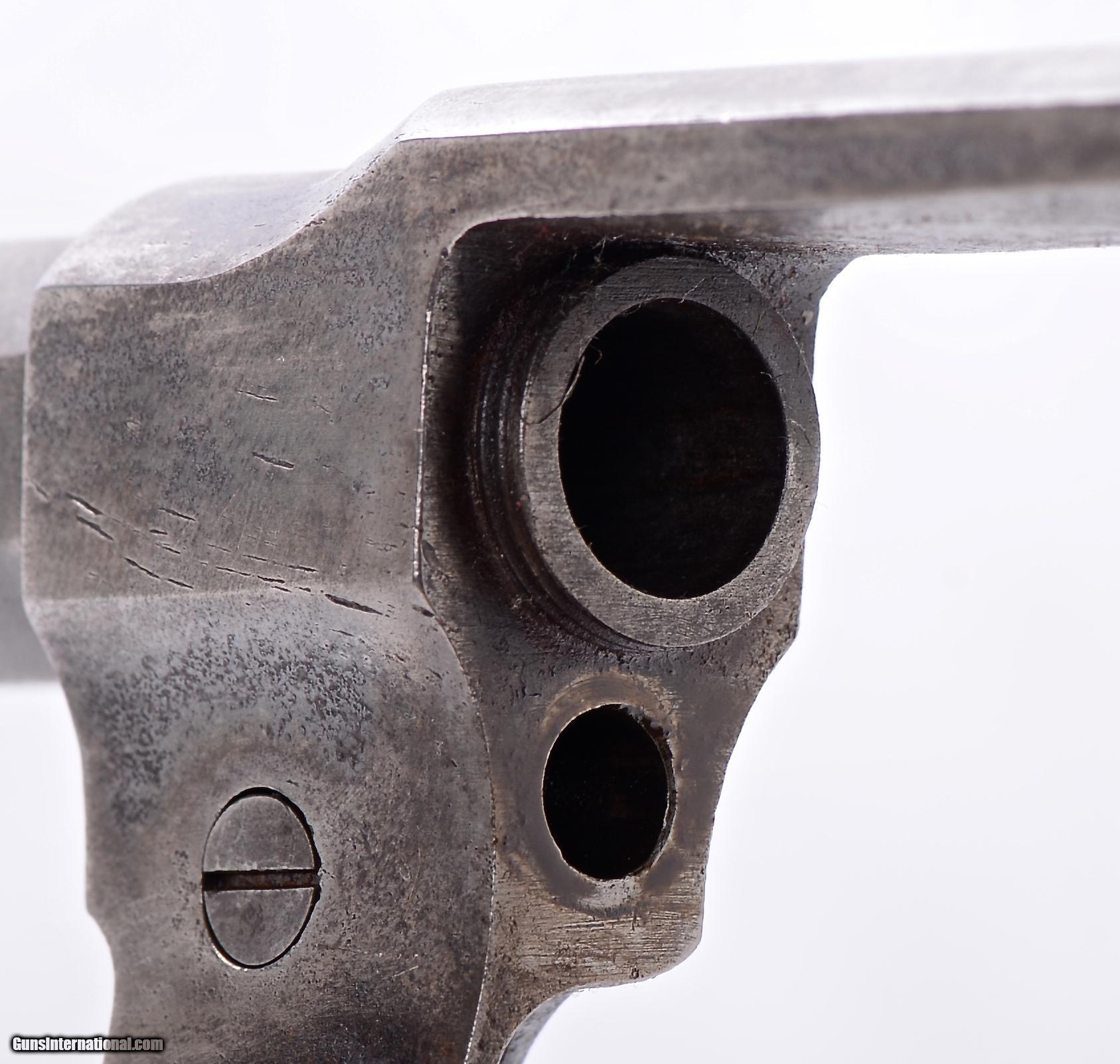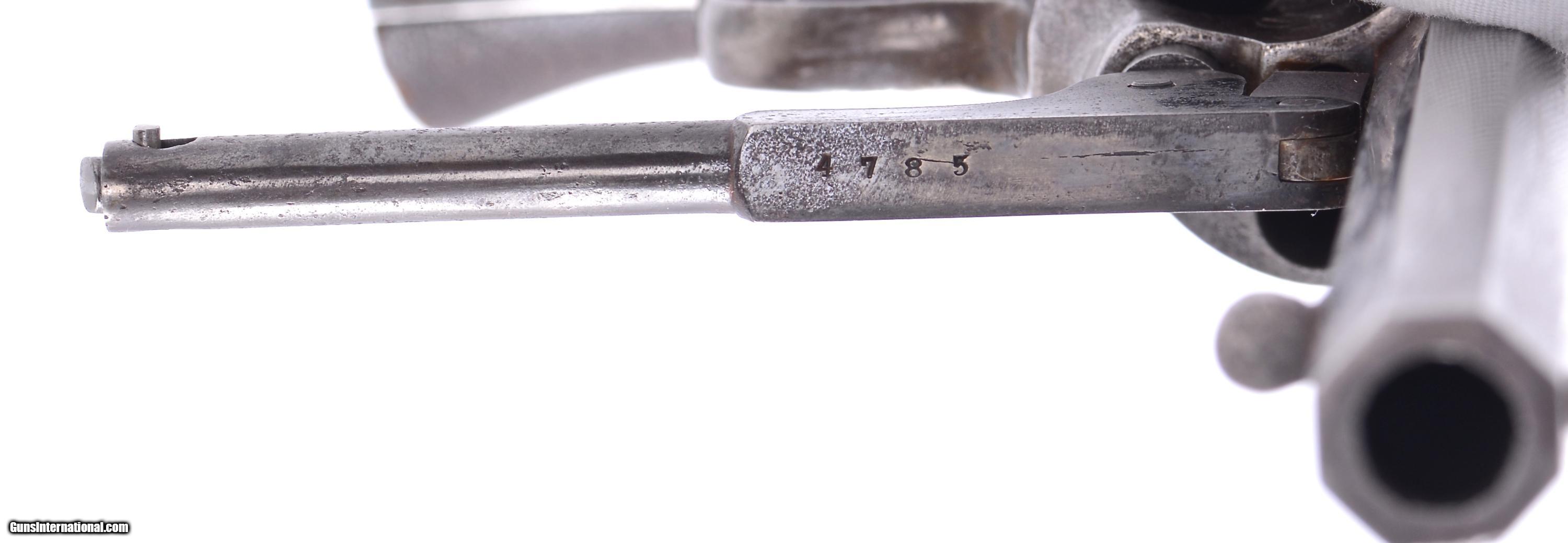 Description: This is a really fine example of a Rogers & Spencer military marked, made in 1865, late Civil War era percussison revolver. Mechanically excellent, nearly perfect screws, great/bright bore, unaltered, some original finishes remaining, great inspector markes and grip cartouche, all on this revolver. 5000 of these were ordered under a US Ordnance contract but none were ever known to be actually issued. 7 1/2" barrel, .44 bp. at serial number 4785 this was on of the last to be made in the contract. Interesting piece in fine condition. SN: 4785 SOLD Antique: Yes |
