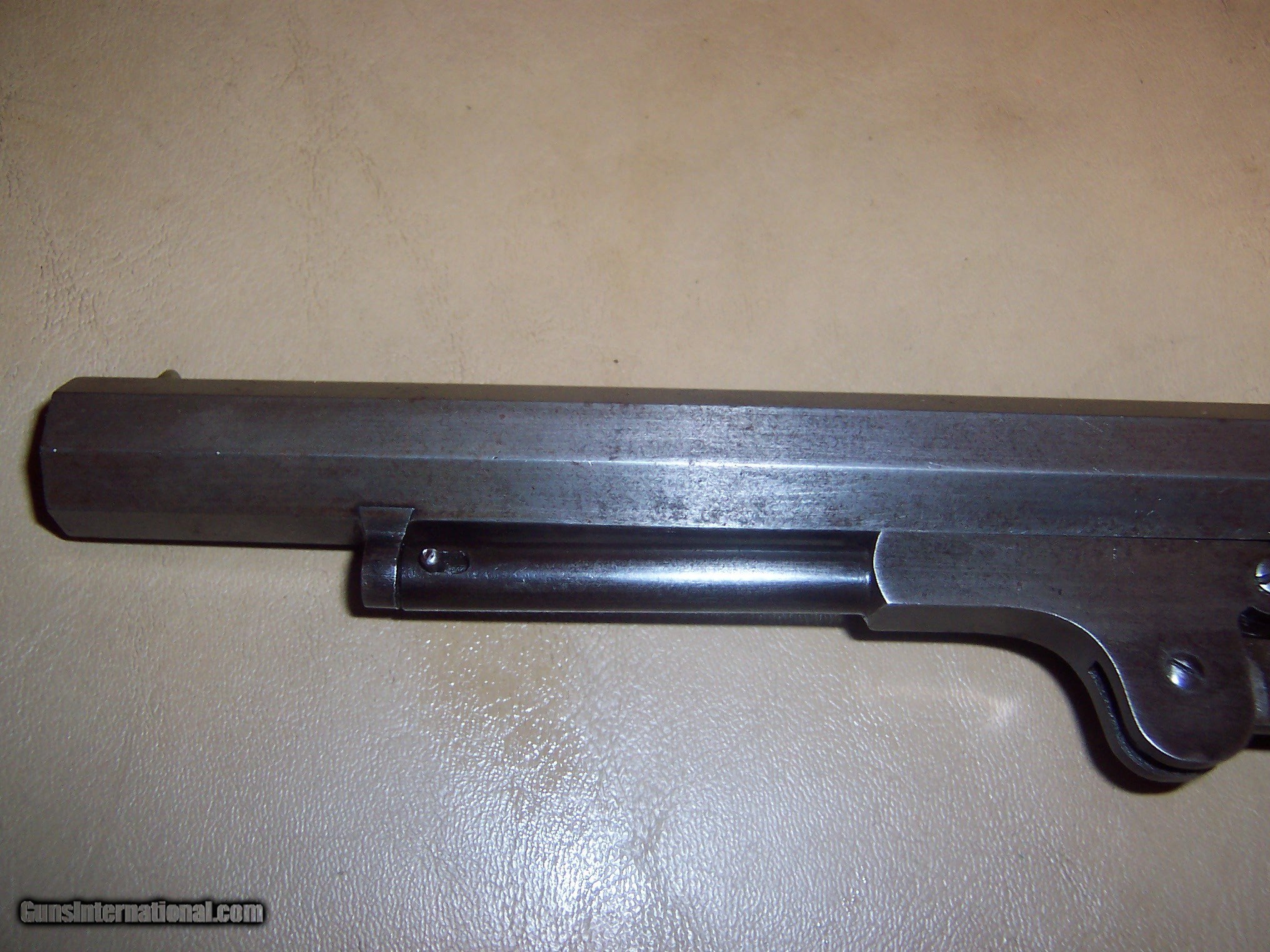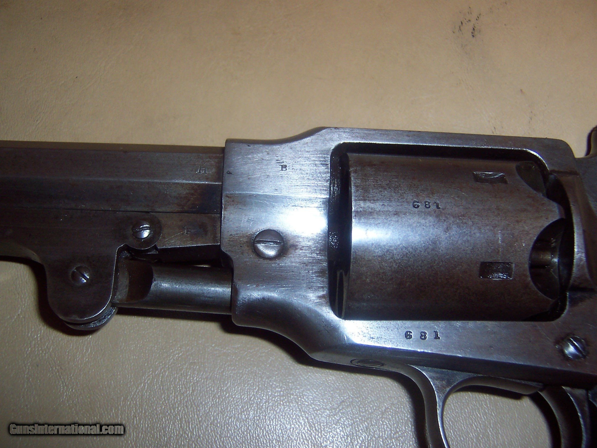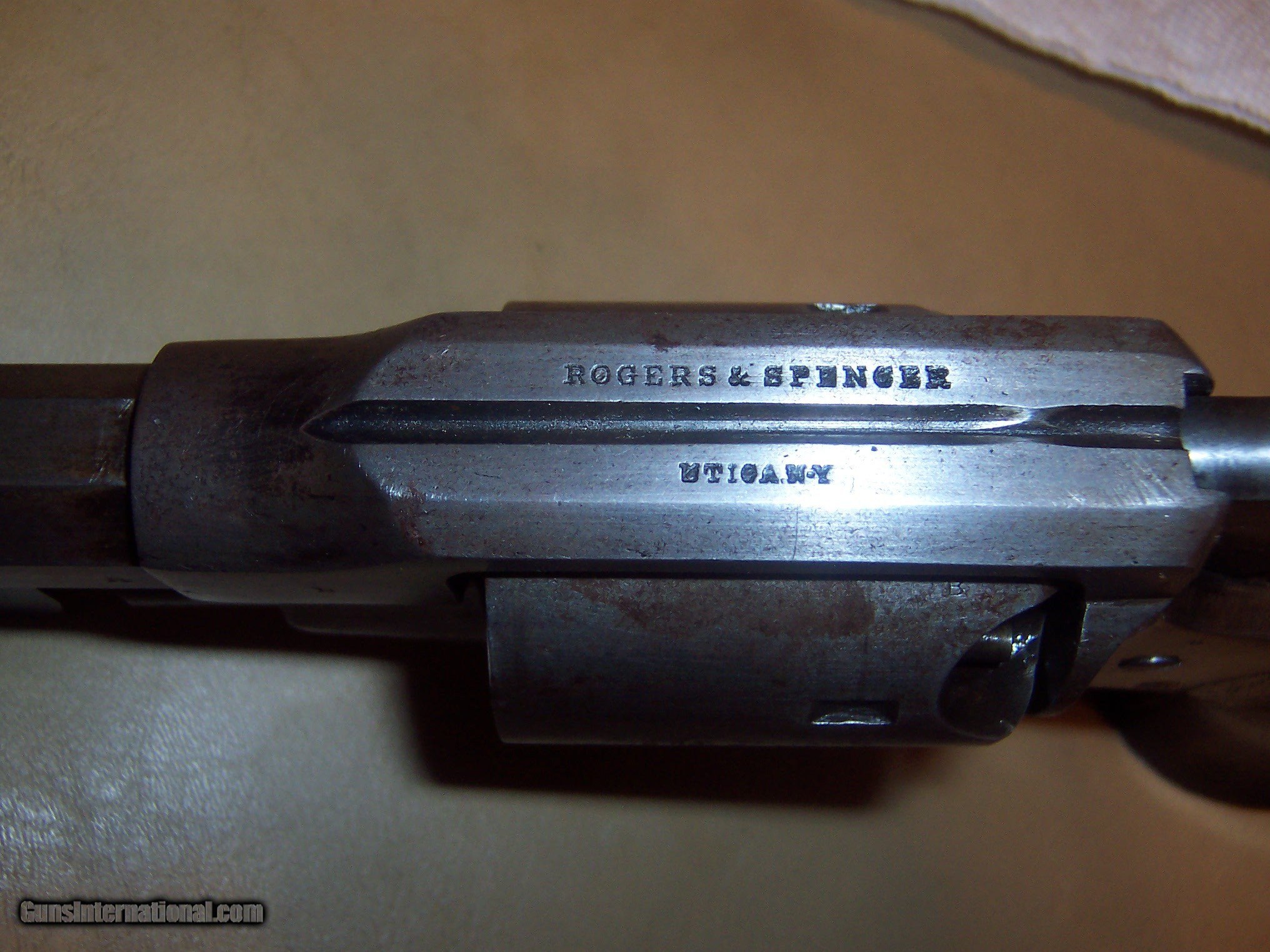 Description: bore looks almost unfired , traces of blue on loading lever grips and gun has military inspectors marks ;;;revolver has no pitting but metal has a gray color ,, needs hand spring buy all parts are there and cocks and clicks a very good crisp revolver showing very littel use,, chip in right grip ,,all screws turn freely so easy to fix 44 caliber marked rogers & spencer utica ny,, 7 1/2 inch barrel SOLD Antique: Yes Manufacturer: rogers & spencer Model: revolver |