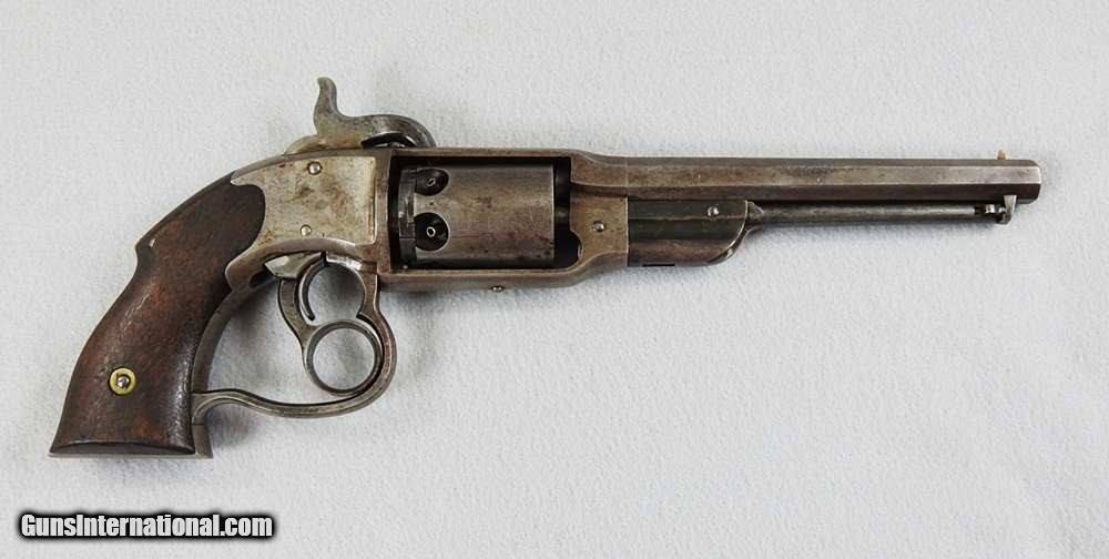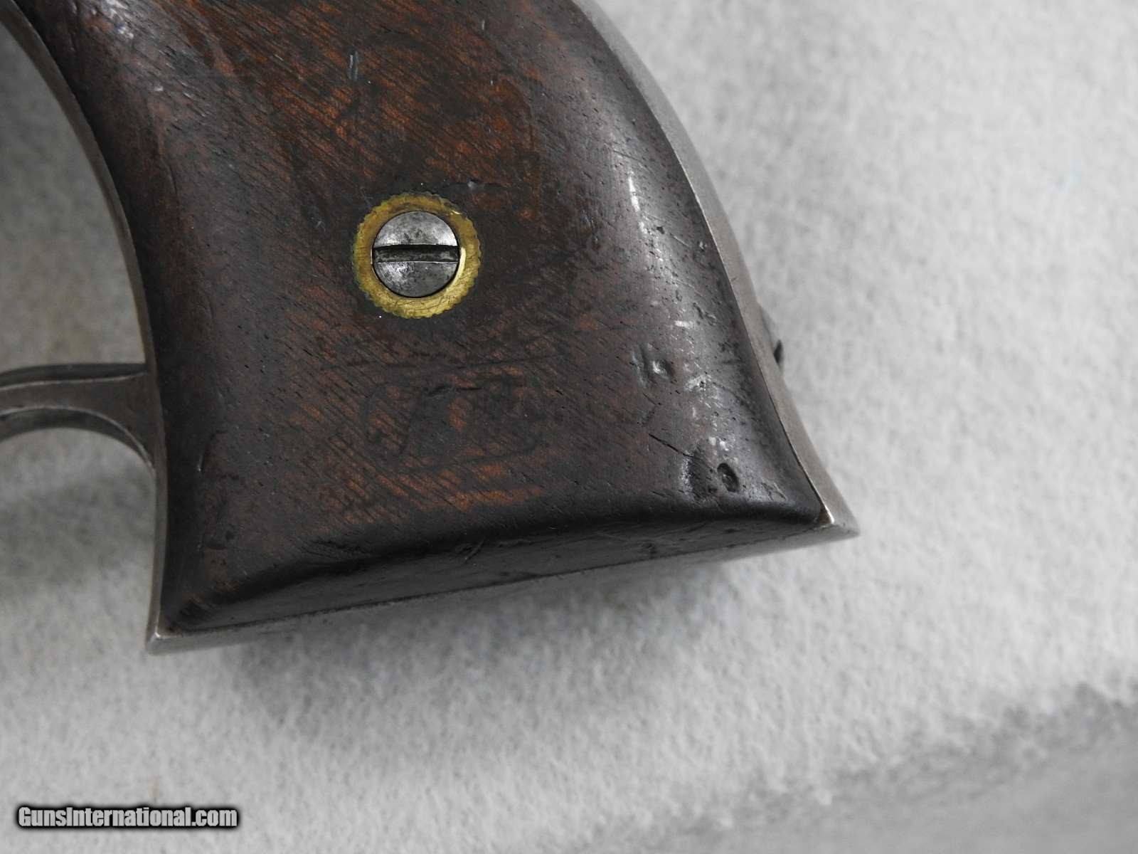 Description: This Civil War revolver was made from 1861 to the mid 1860s and is serial number 14139. The total quantity was about 20,000. Both the Army and Navy purchased them. It has a Cartouche on the left grip and the three-line address on the top strap. This is 36 caliber and has an excellent bright and shiny bore and very good crisp and tight mechanical function. I would consider trades for pre 1899 ANTIQUE PISTOLS and rifles on any of my items.. WHAT DO YOU HAVE TO TRADE? Ask about our 30-90 day lay-away program. We accept Bank Check, Money order, Personal checks or wire transfer. SOLD Antique: Yes Manufacturer: Savage Model: Navy Model Serial Number: 14139 |