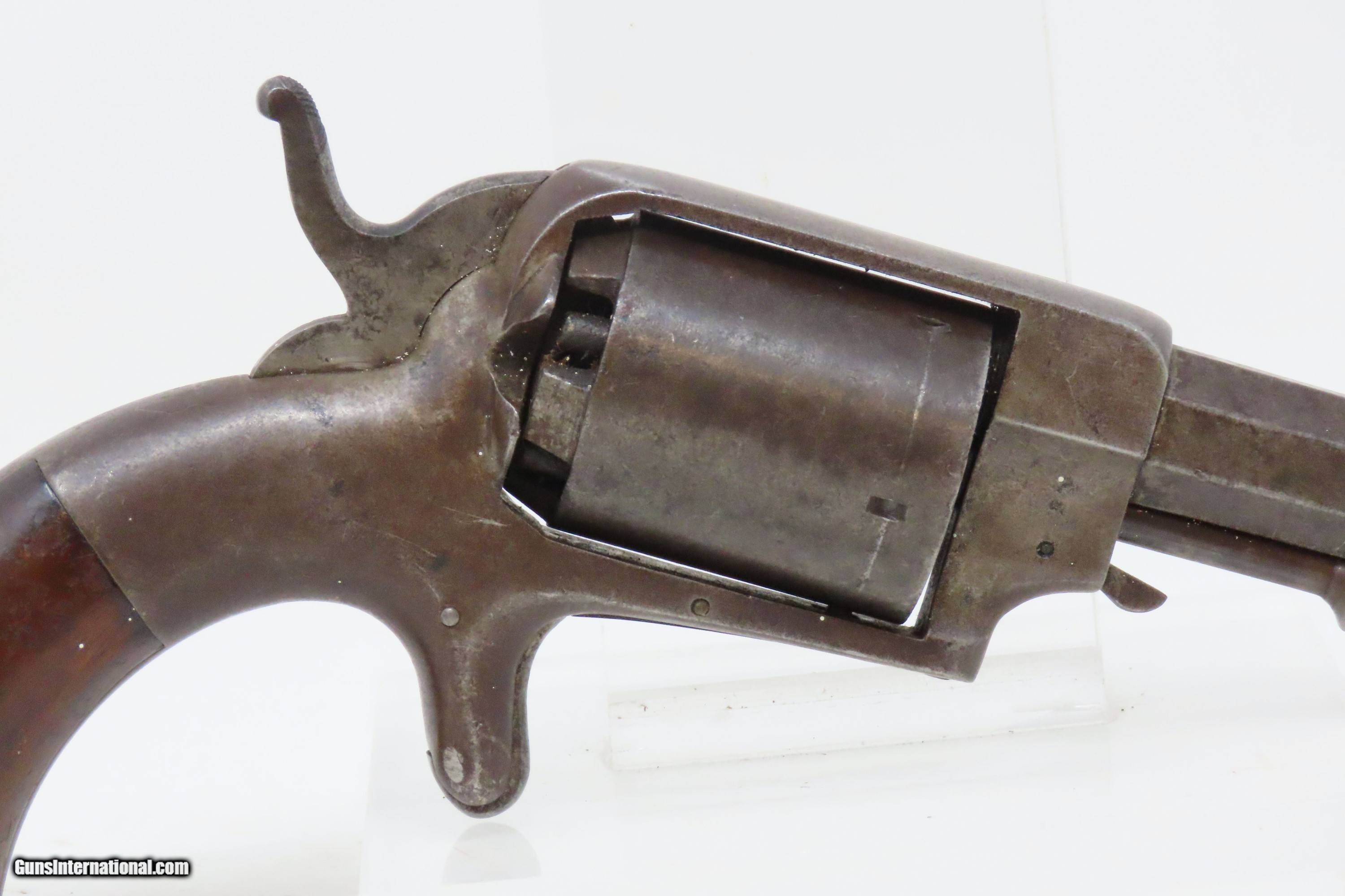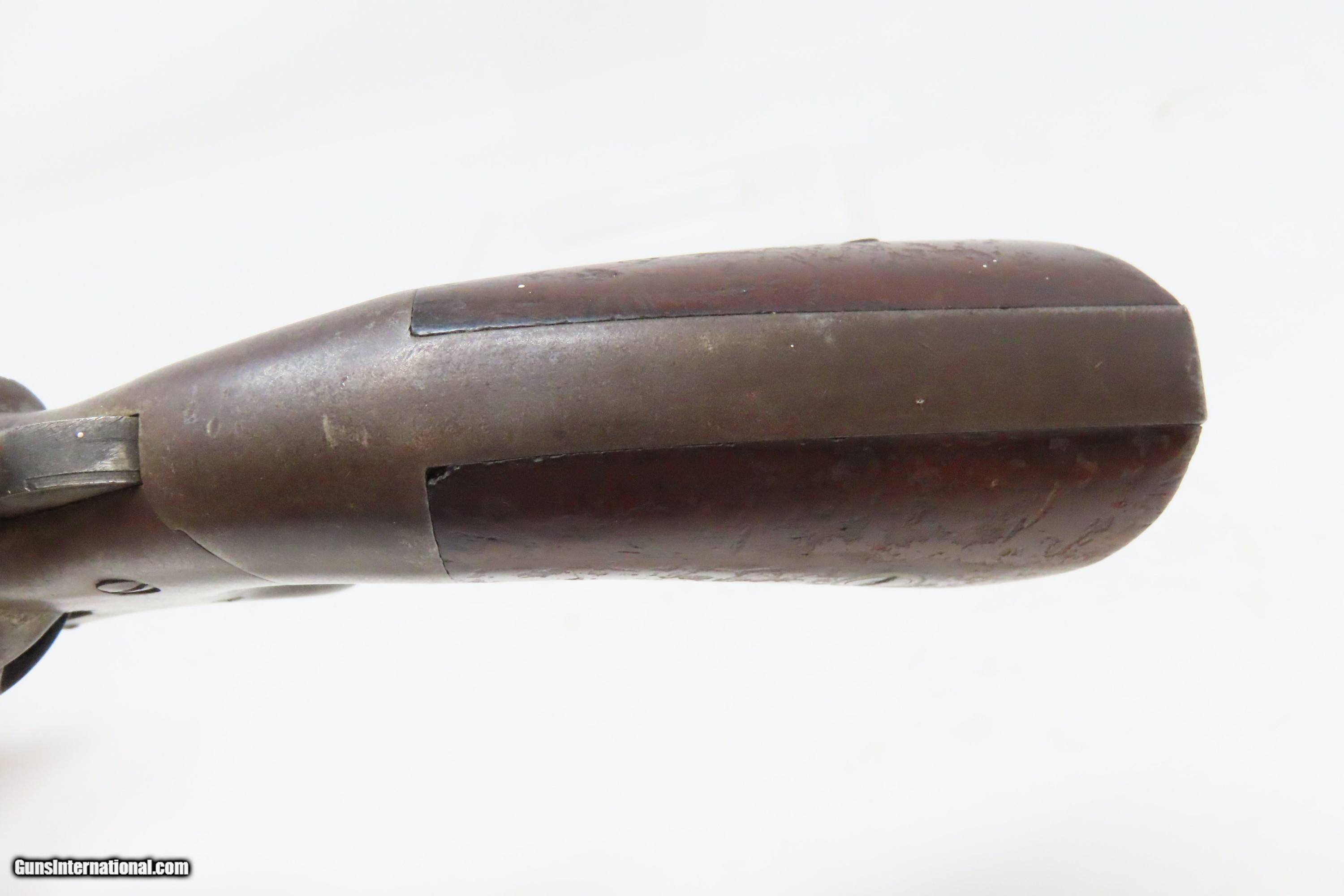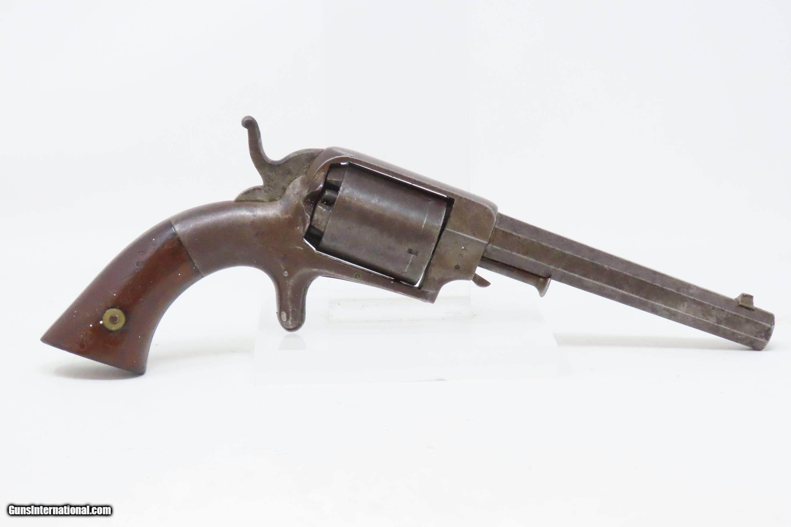 Description: SCARCE Antique PROVIDENCE POLICE Allen & Wheelock .36 Revolver RHODE ISLAND LONG BARREL w/ only 700 Manufactured CIVIL WAR ERA Here we present an antique Allen & Wheelock Providence Police Percussion Revolver, made around the late 1850s to the early 1860s. The total production of this pistol was only about 700 pieces, making this a very rare and desirable pistol for your collection. This .36 caliber, 5 shot revolver was made for the Providence, Rhode Island Police Department just prior to the beginning of the American Civil War. None of these pistols bear any patent or maker’s markings, but they have been long recognized in the firearms collecting world as having been made by Allen & Wheelock. This example is an even more scarce example of an already rare gun, with its longer 4-7/8 inch barrel. The overall condition is good. Strong action. Bright, sharply rifled. Both grips are in good shape. Add this very nice and rare Providence Police Revolver from Allen & Wheelock to your distinguished collection! Own the original! This is a legitimate antique and not a reproduction. Barrel is 4-7/8 inches. Caliber: .36 Percussion Overall condition as seen in photos. Very Fast. Very Safe. FREE SHIPPING WORLDWIDE. Delivered directly to your door by express mail! Guaranteed AUTHENTIC & Includes CERTIFICATE OF AUTHENTICITY. ancestryguns $1500 #233068 SOLD Antique: Yes |