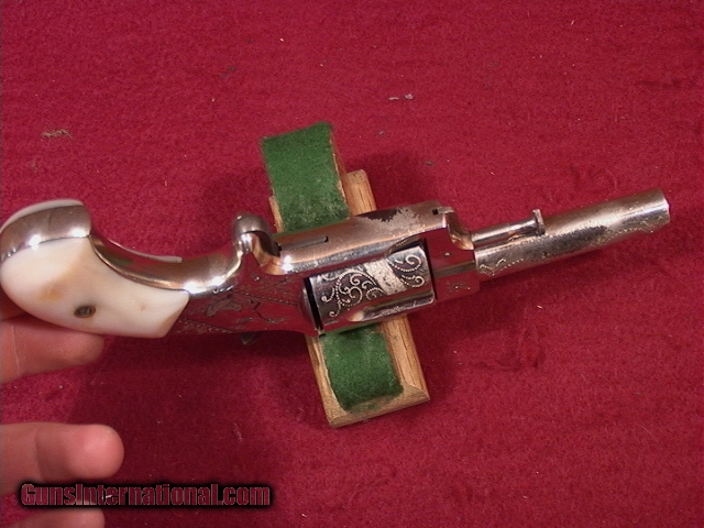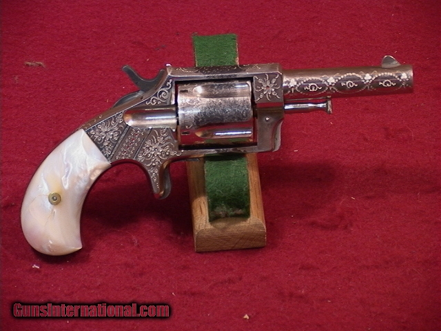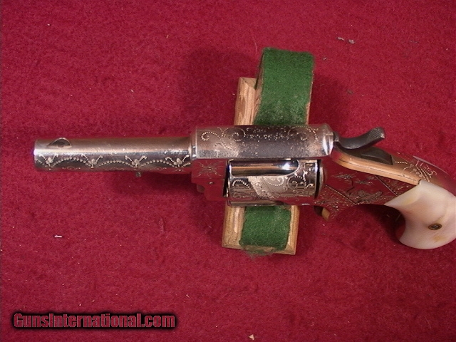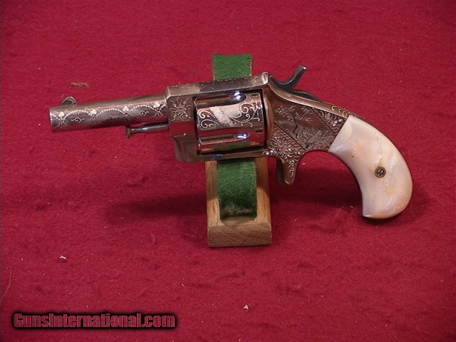 Description: SPUR HAMMER 38RF 3" ENGRAVED. 95% NICKEL WITH A BAD SPOT ON THE TOP OF THE FRAME, ONE SIDE OF THE CYLINDER AND A LITTLE ON THE BOTTOM OF THE FRAME FROM POOR STORAGE. OTHERWISE POSSIBLY UNFIRED, ANTIQUE SOLD Antique: Yes |
